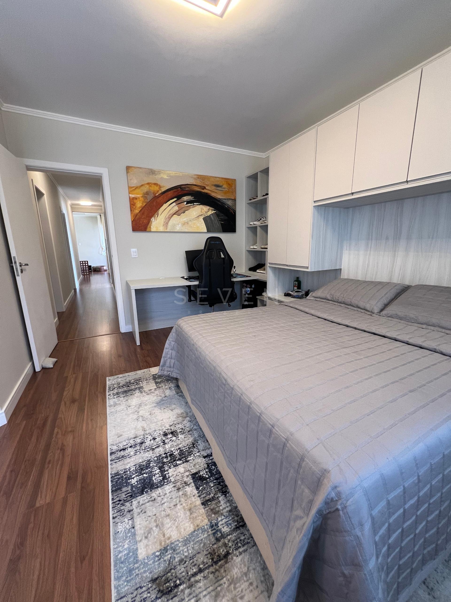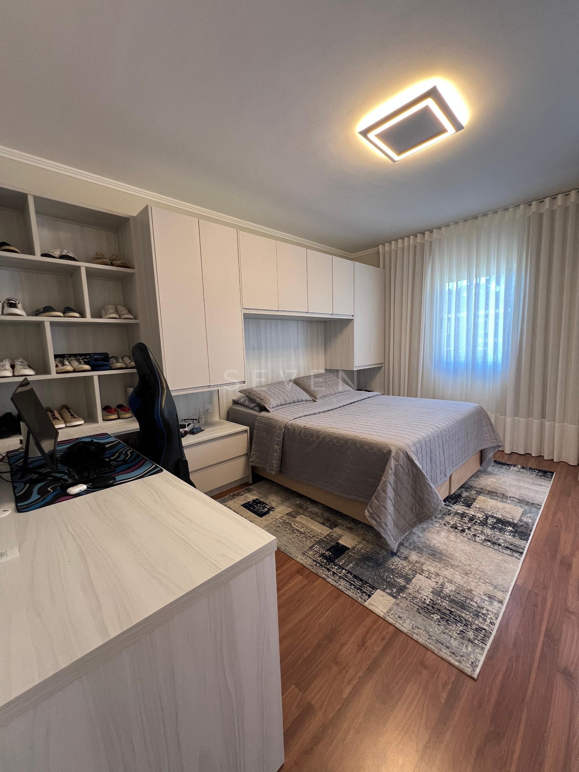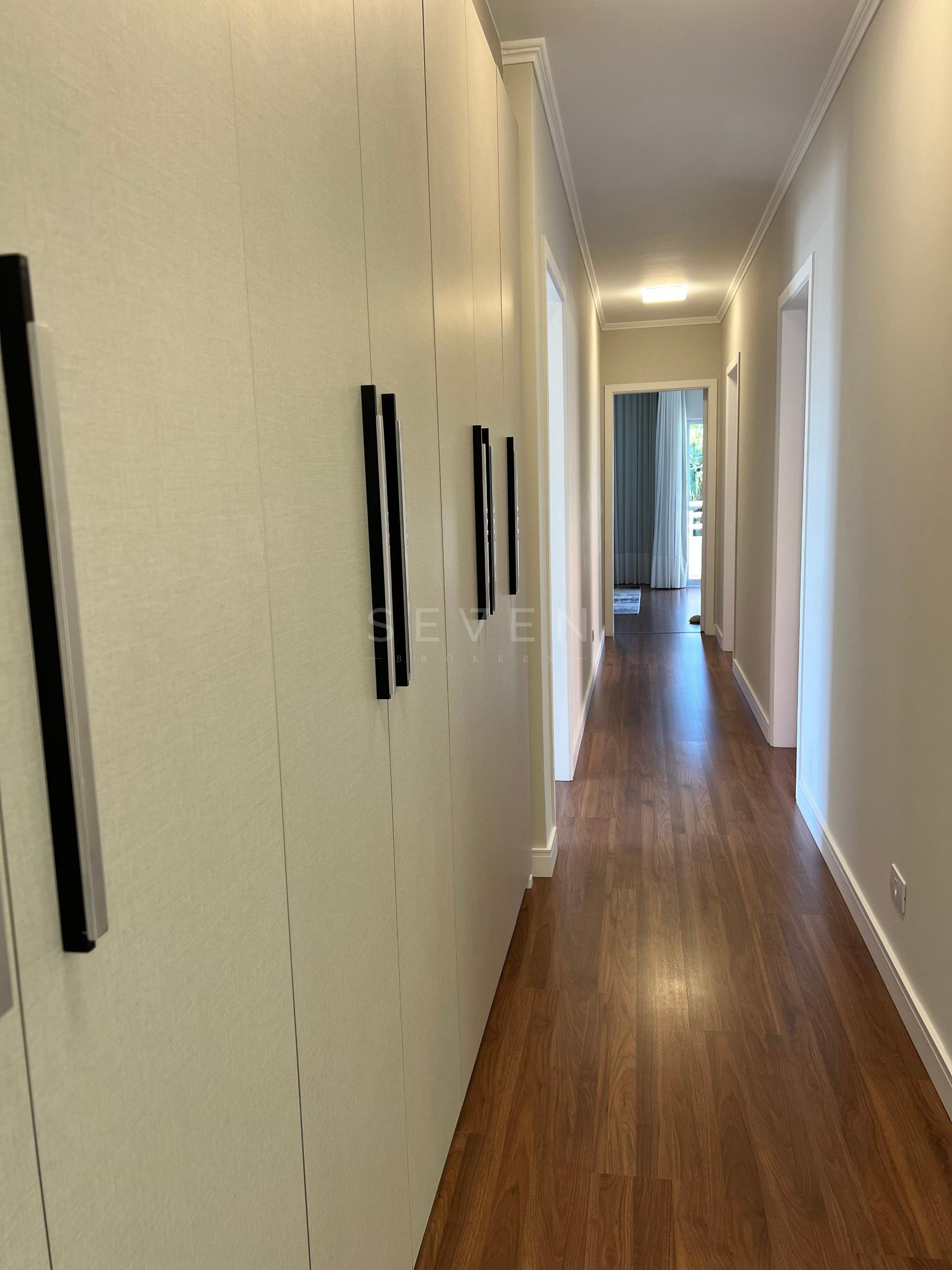 Na área íntima, a casa conta com uma suíte máster com móveis planejados, closet e um banheiro espaçoso e confortável. Há ainda uma suíte júnior com excelente marcenaria e dois dormitórios tipo demi-suíte, que dividem um banheiro. Um roupeiro no corredor oferece apoio e organização para roupas de cama e banho.