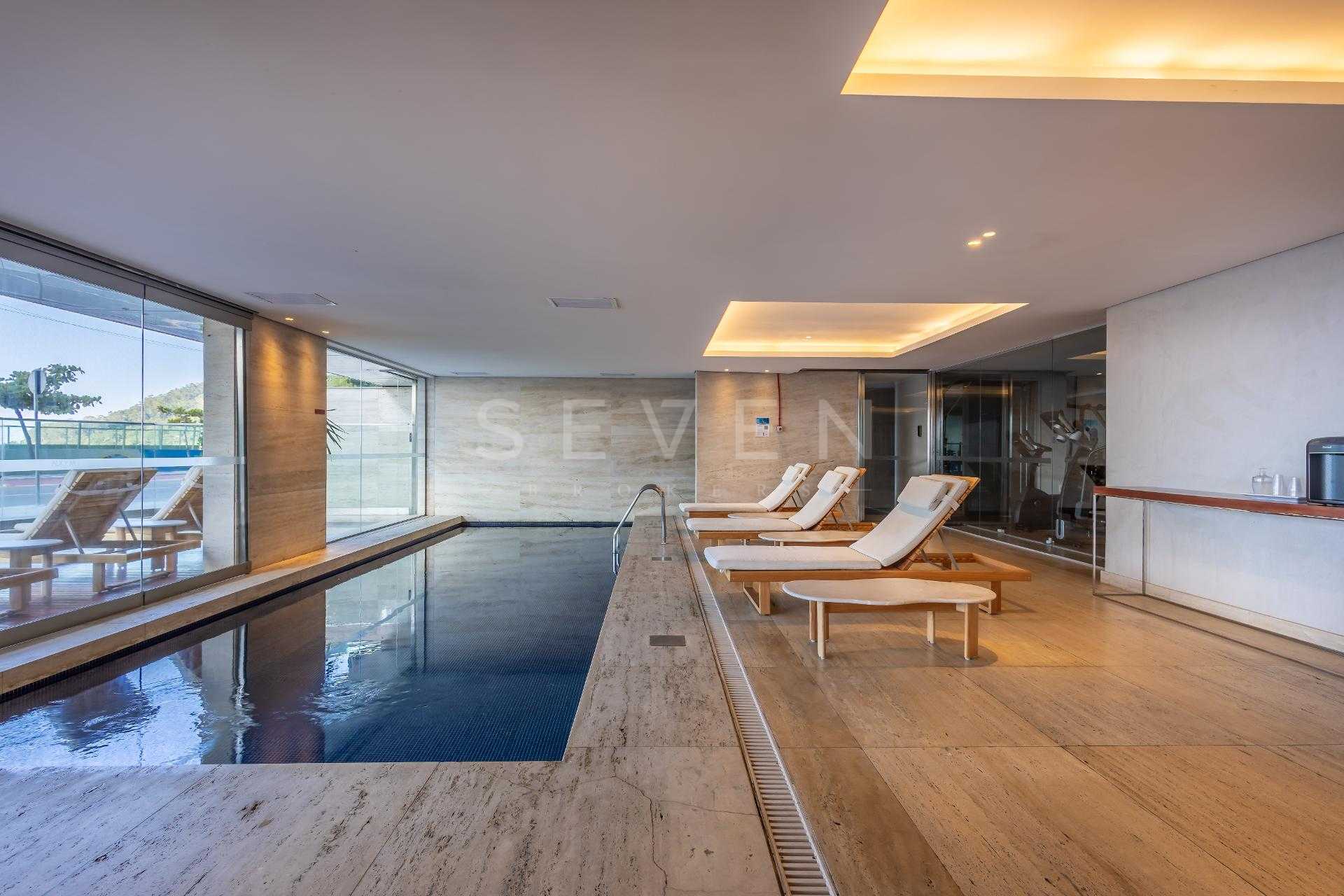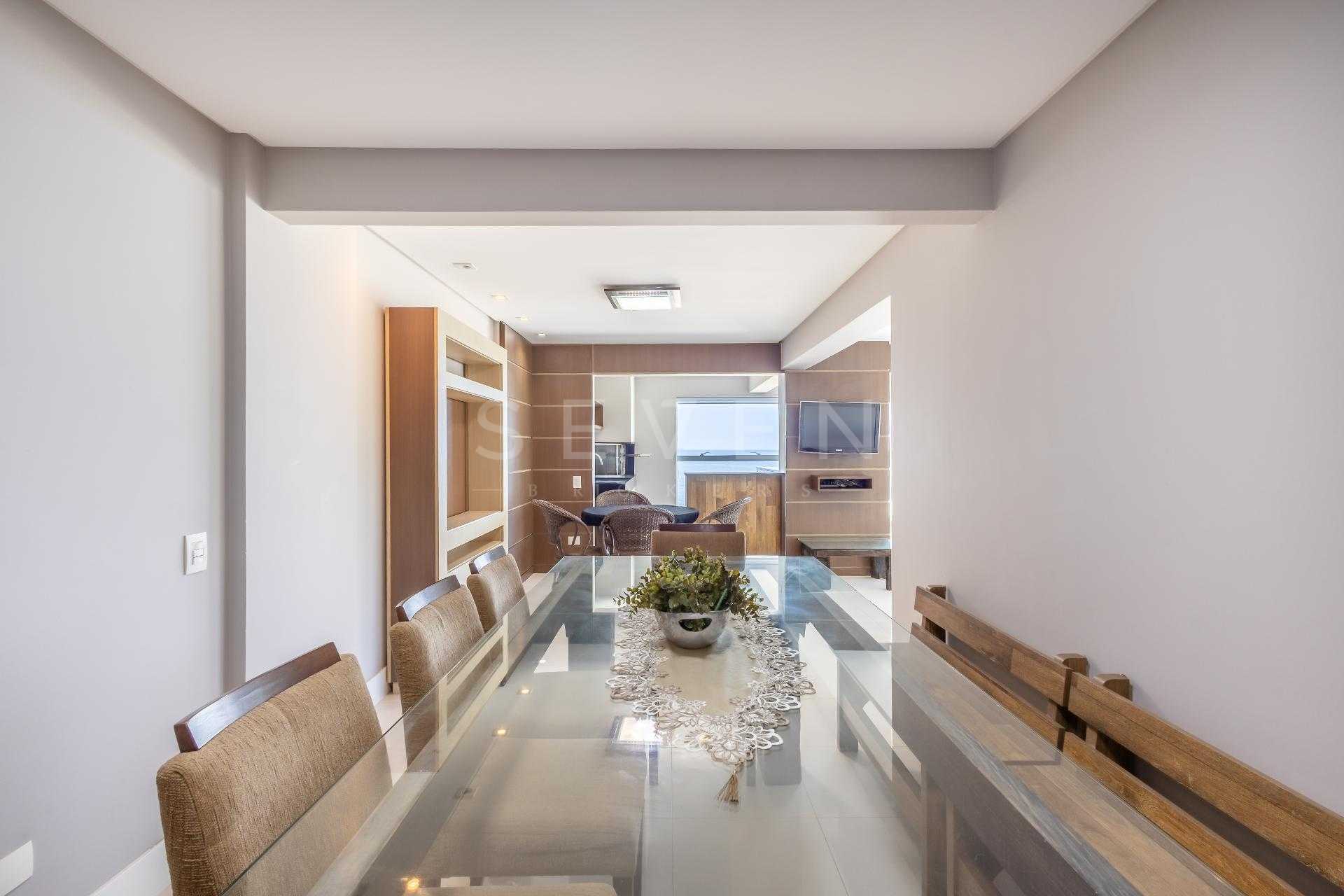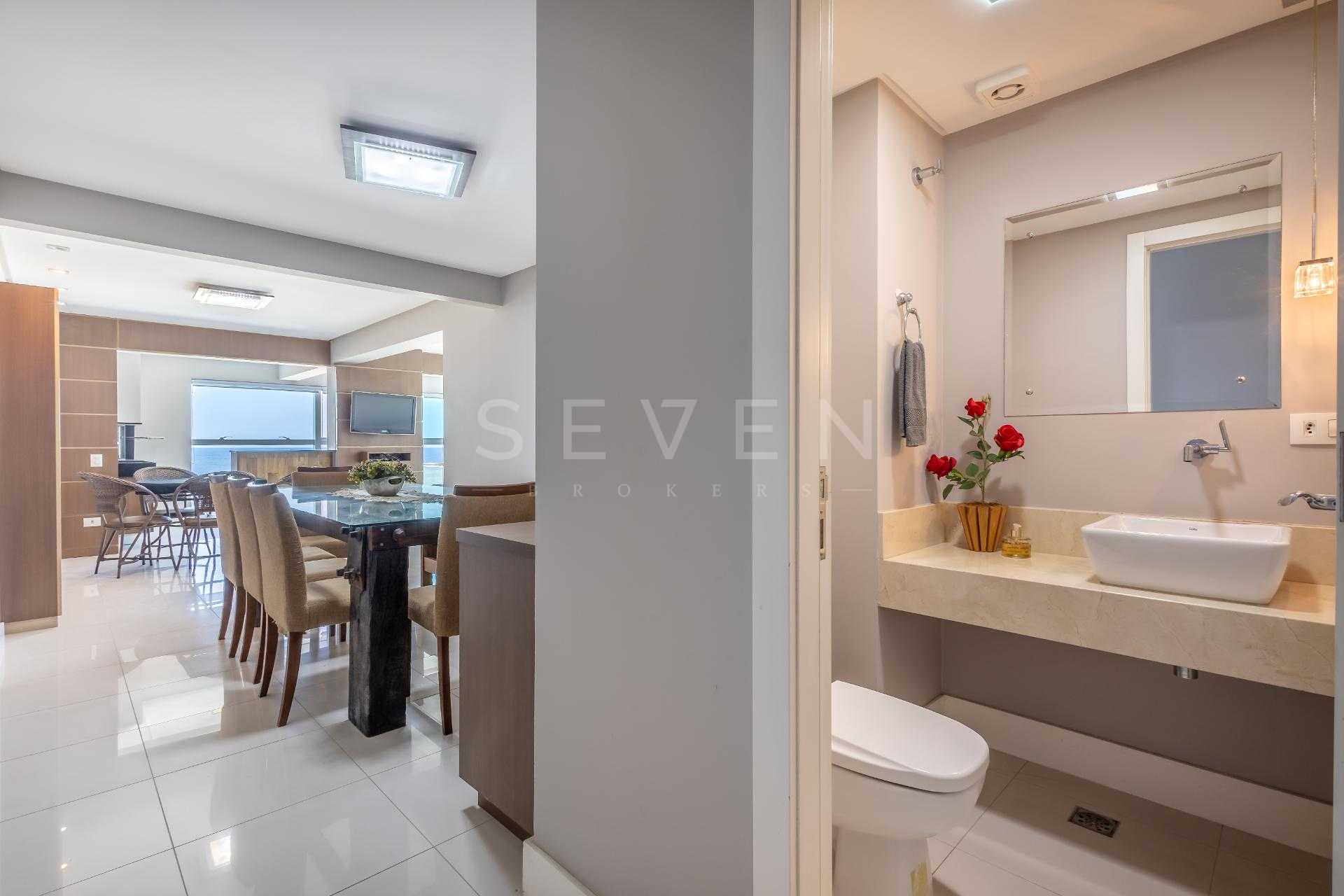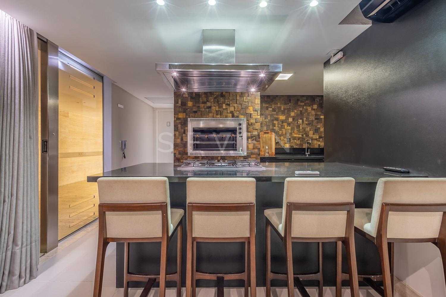 Varanda gourmet com churrasqueira a carvão e integrada a área social, proporcionando uma vista definitiva do mar. A cozinha e ampla e conta com espaço para mesa de café e refeições rápidas. Há ainda área de serviço independente e dependência de empregada.