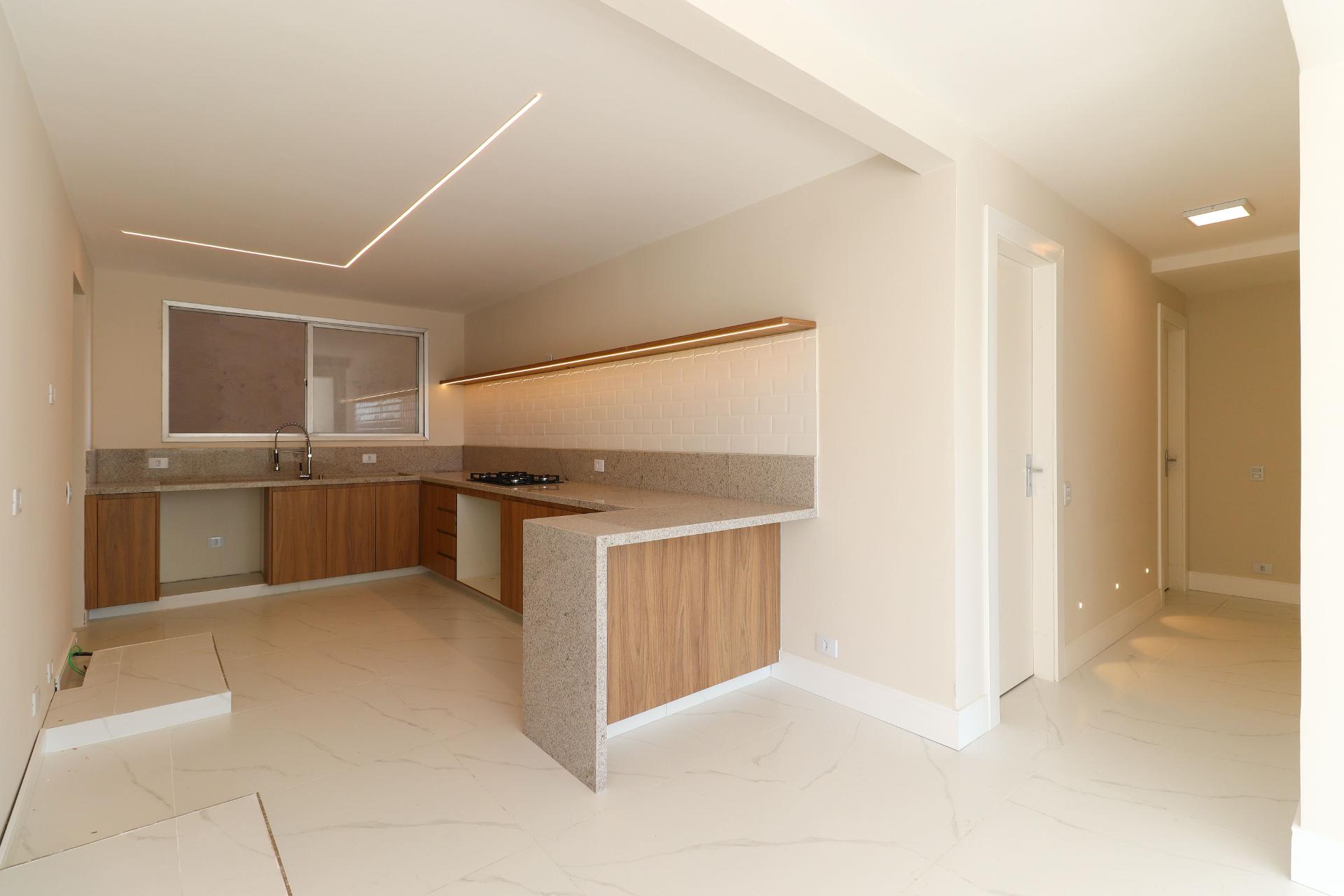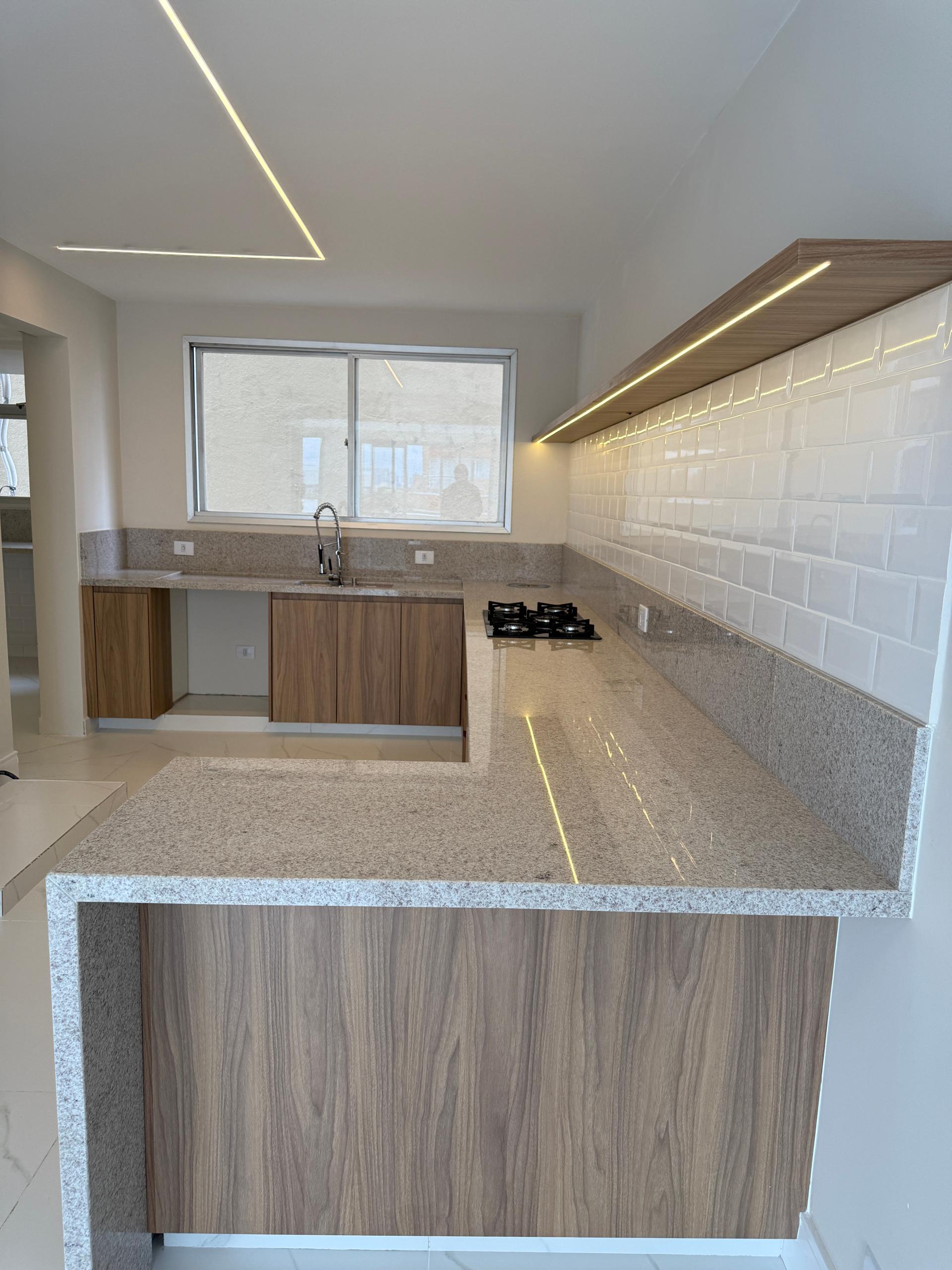 Cozinha ampla com marcenaria linda, cooktop e mármore branco Itaúnas Prime !