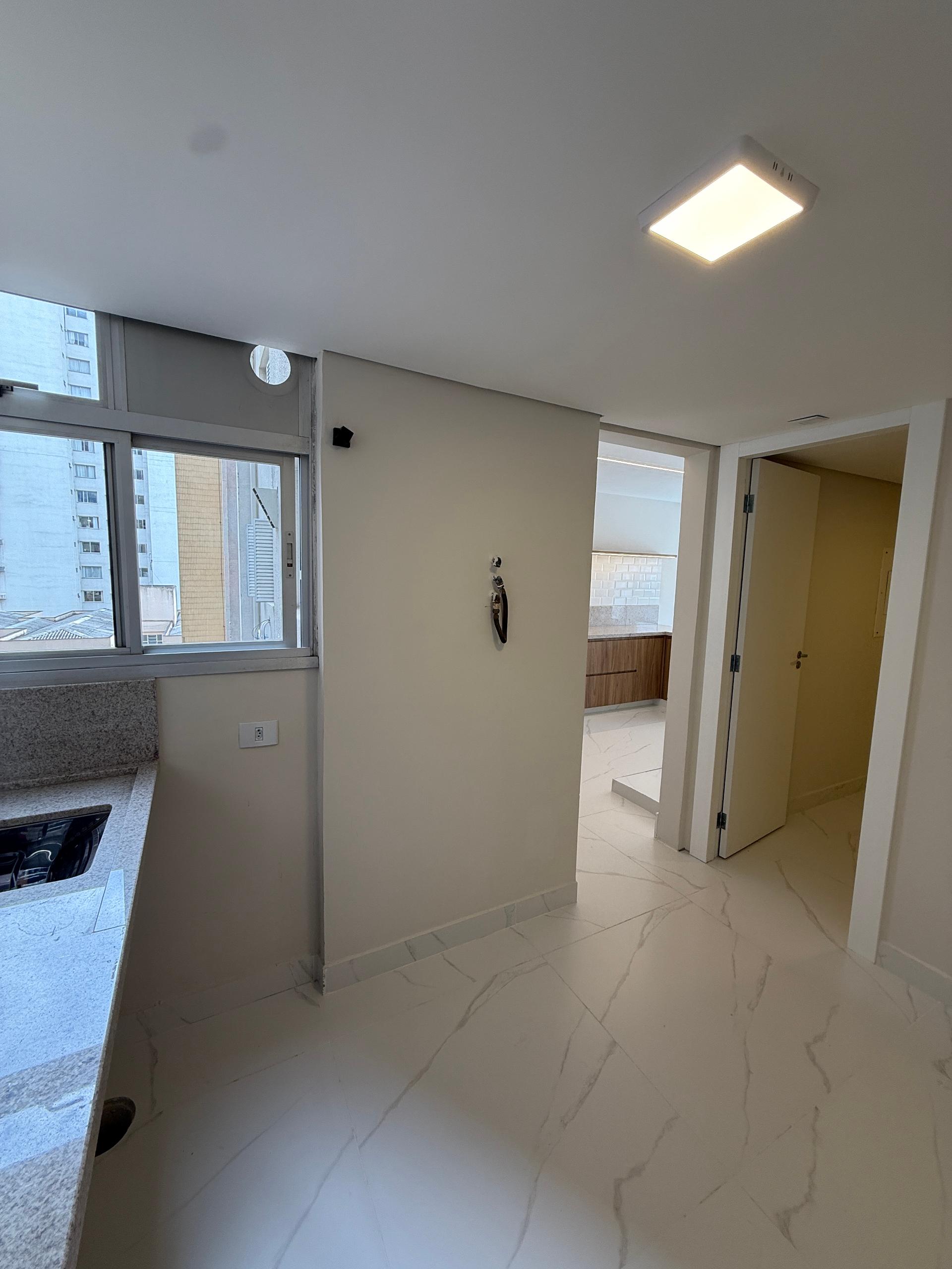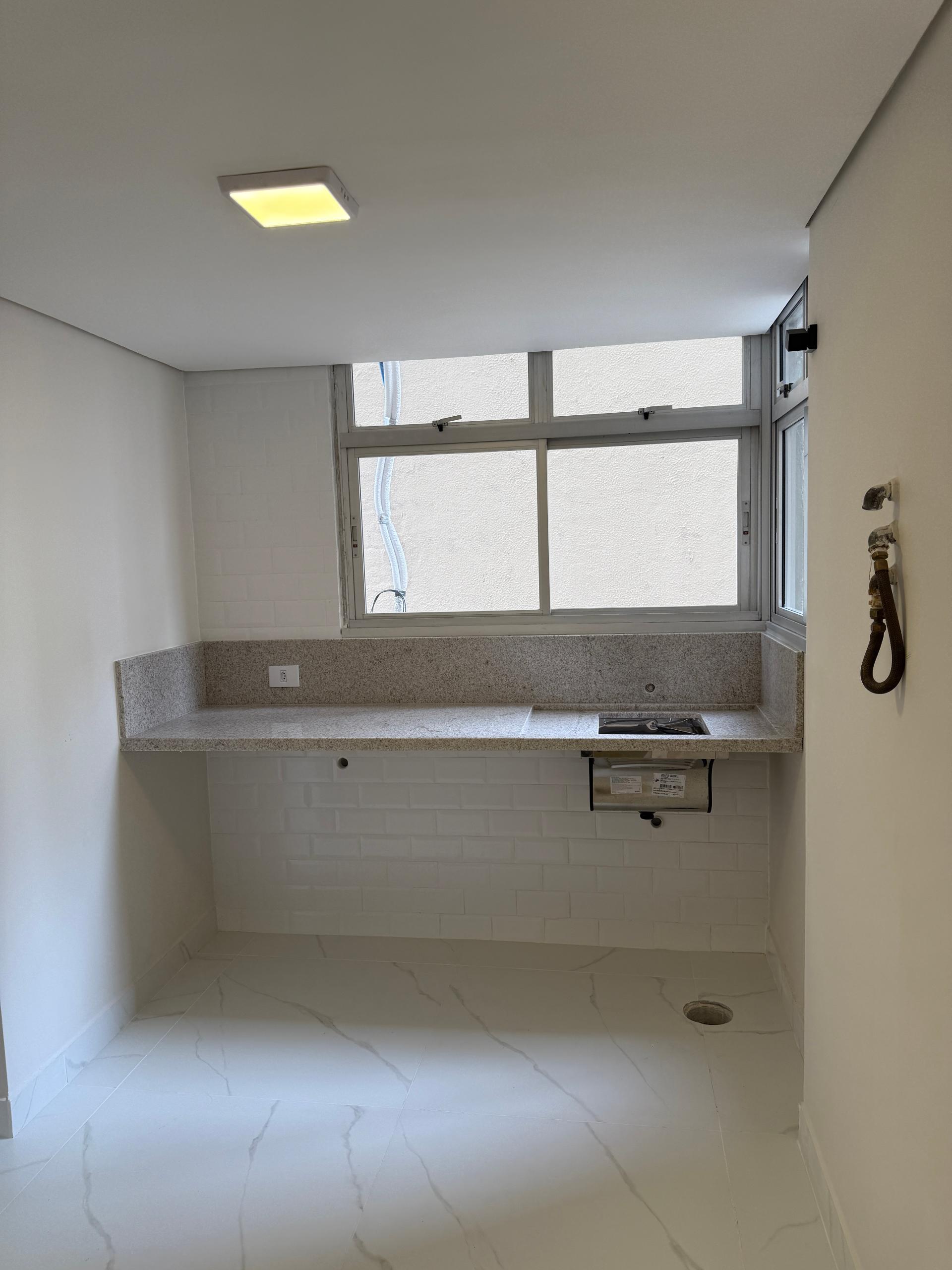 Lavabo, banheiro social, despensa e área de serviço.