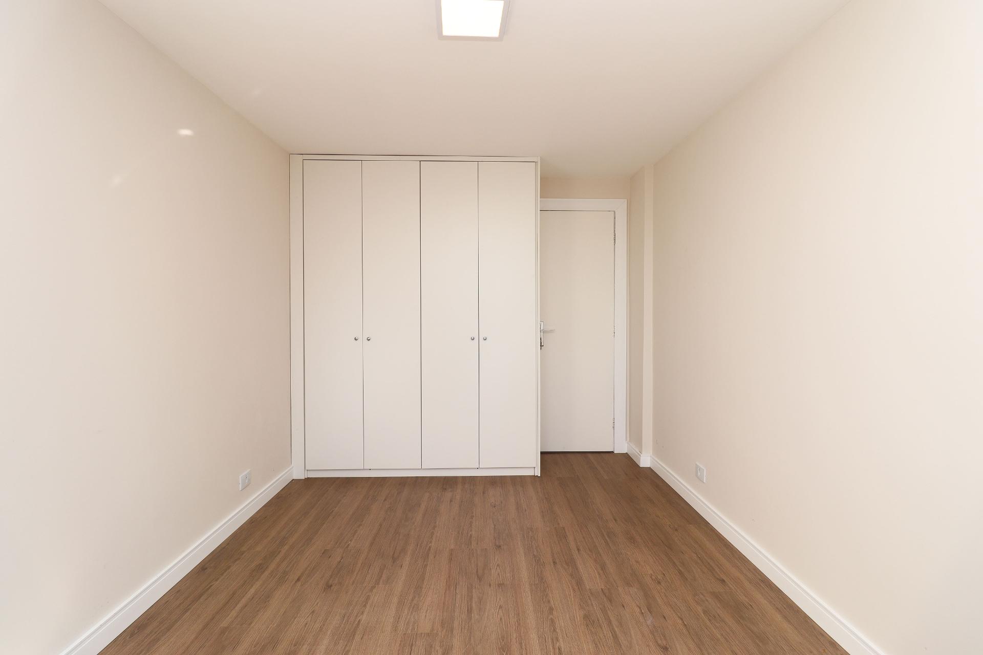 Armários no quartos e banheiros.