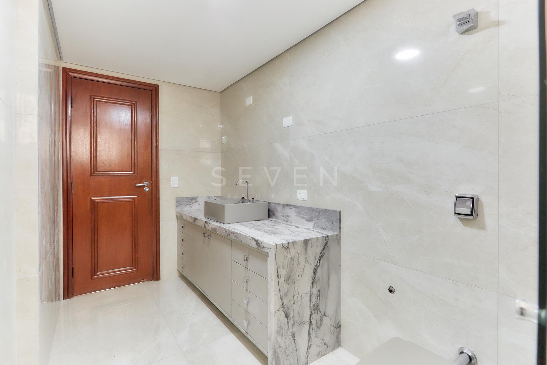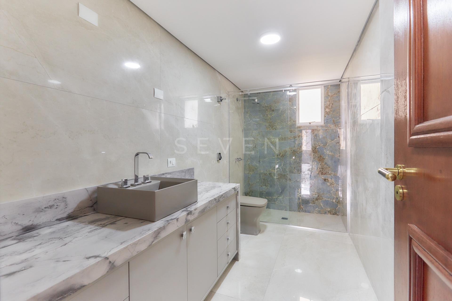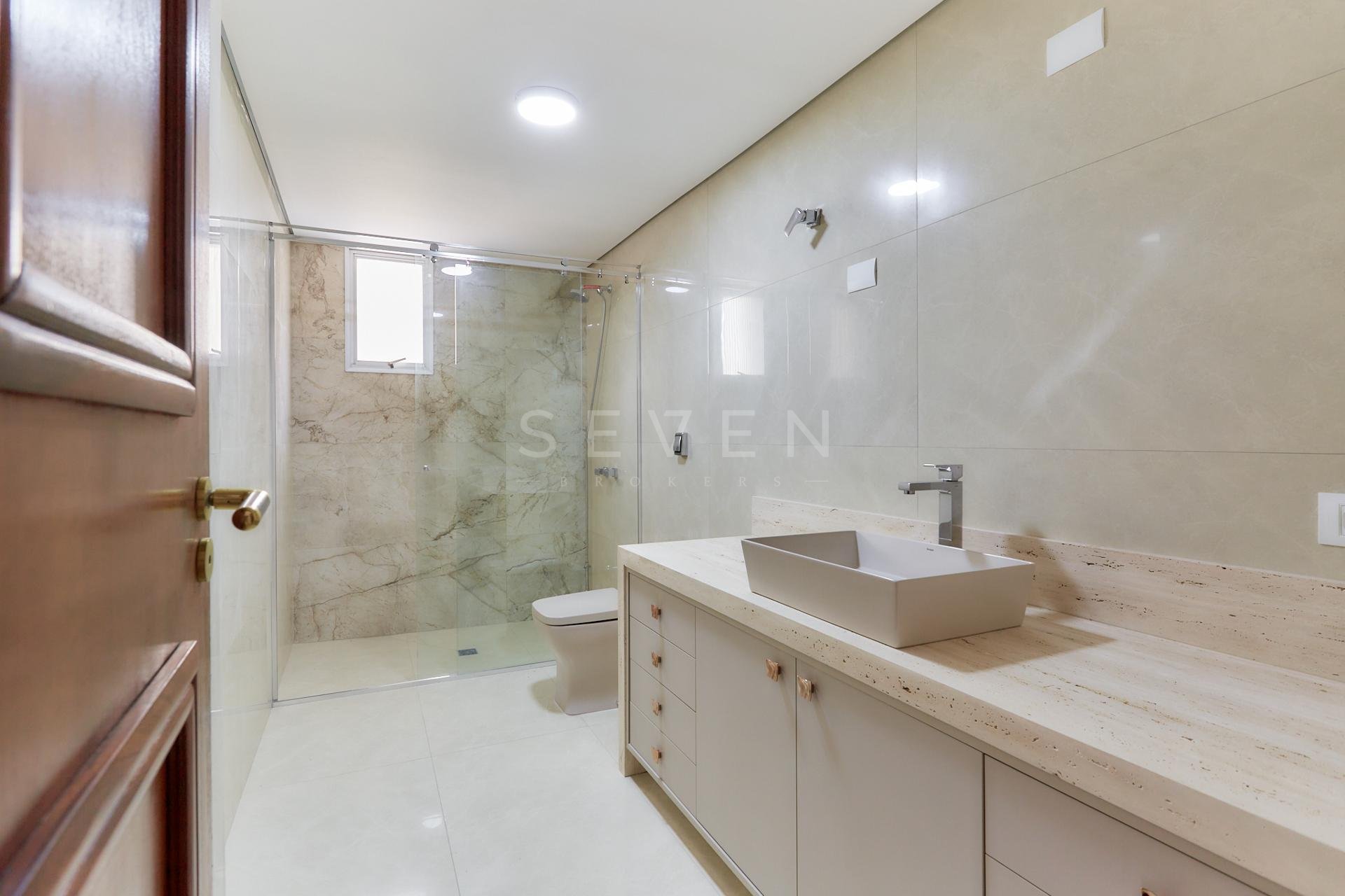 Banheiros com porcelanato de alto padrão;