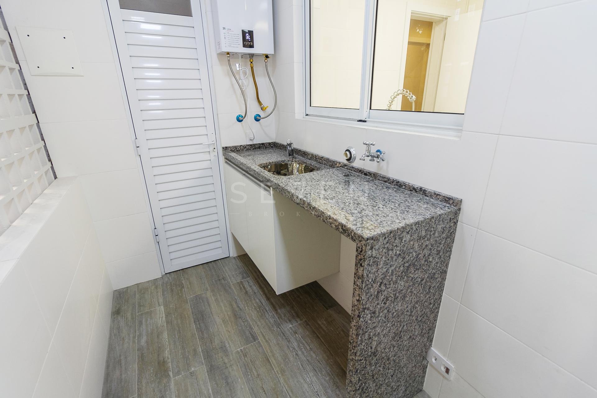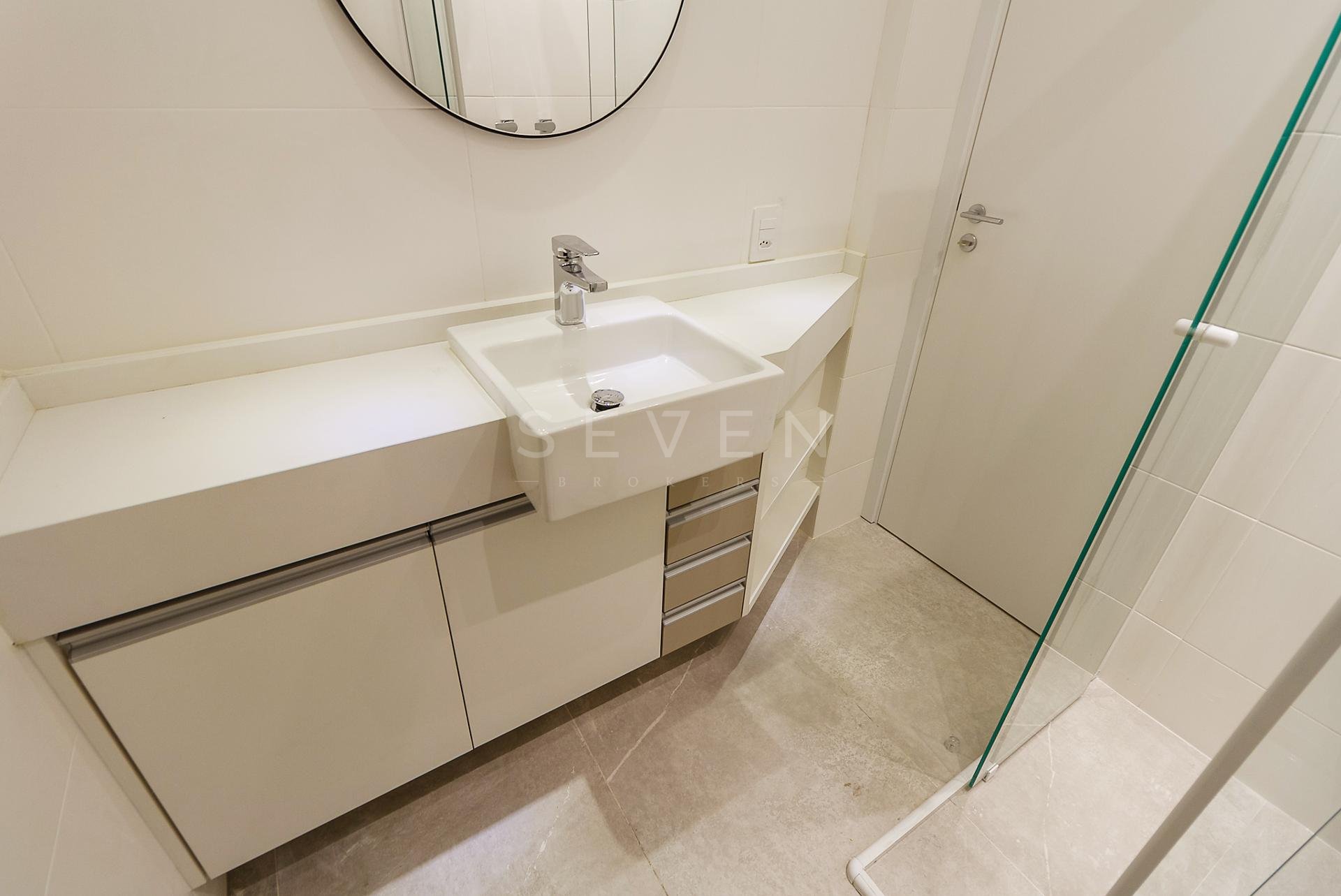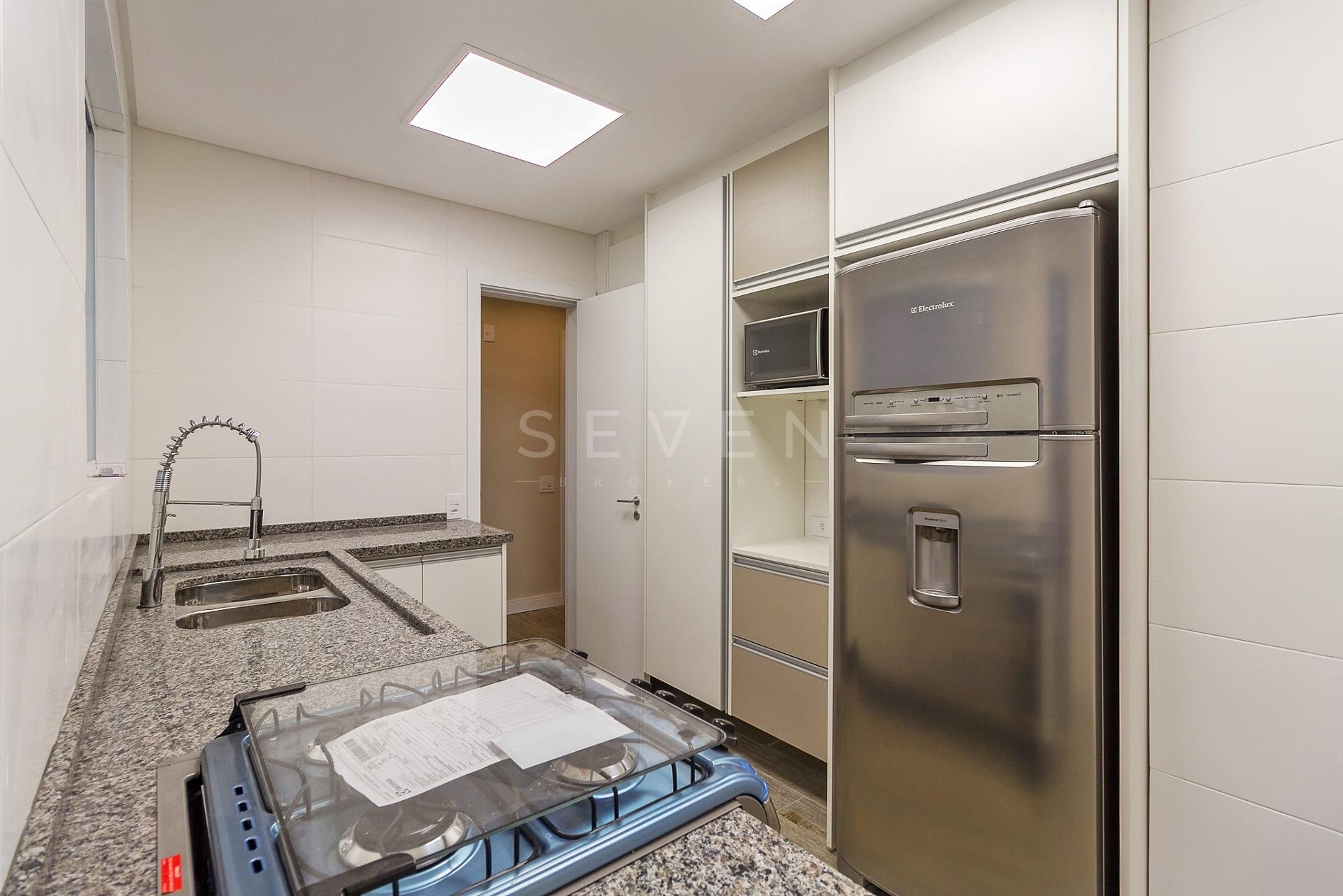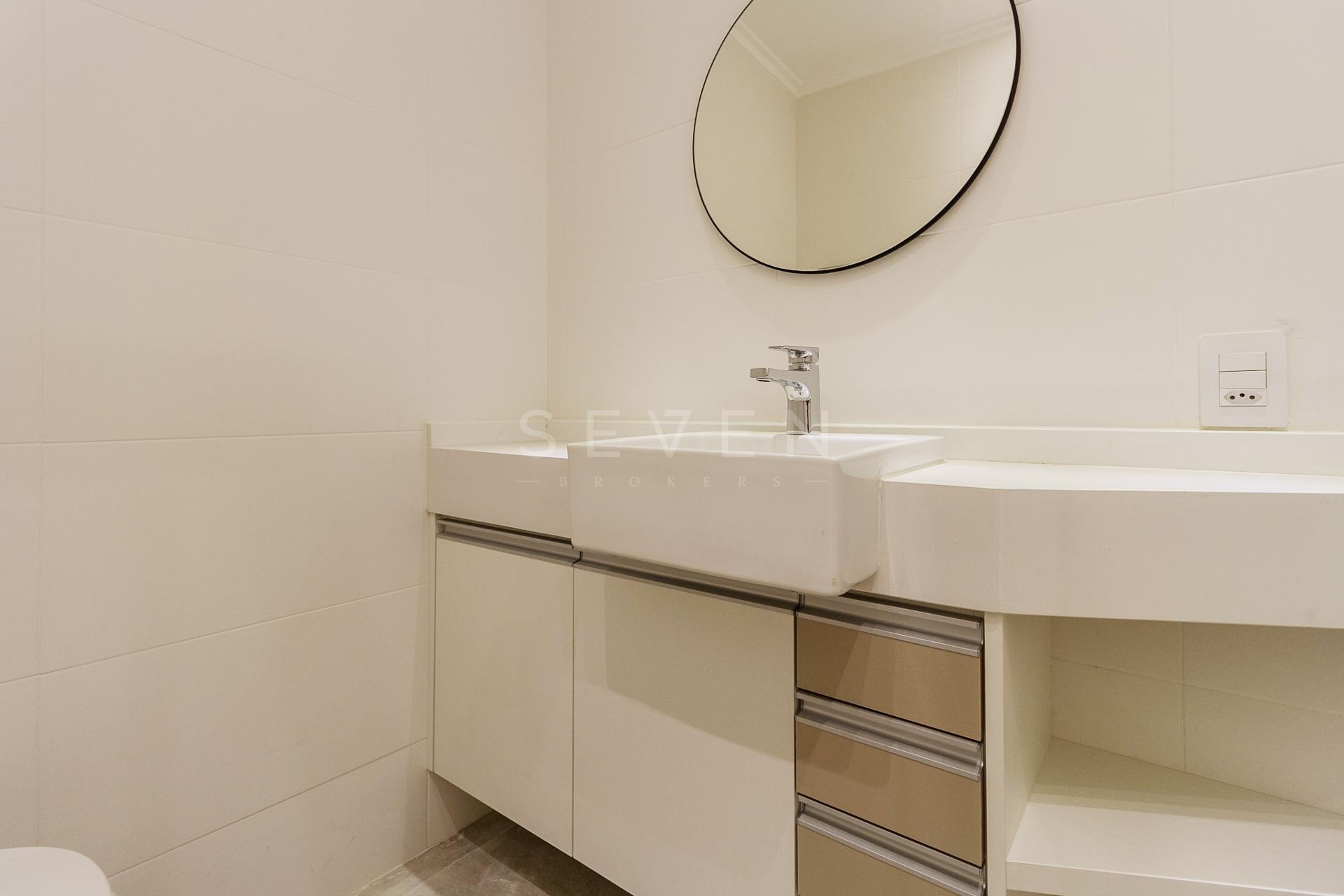 Com 101,42 m² de área privativa, o imóvel é bem ventilado e iluminado. Possui três quartos, sendo uma suíte com armários planejados, além de sala integrada, lavabo e cozinha equipada com armários.
