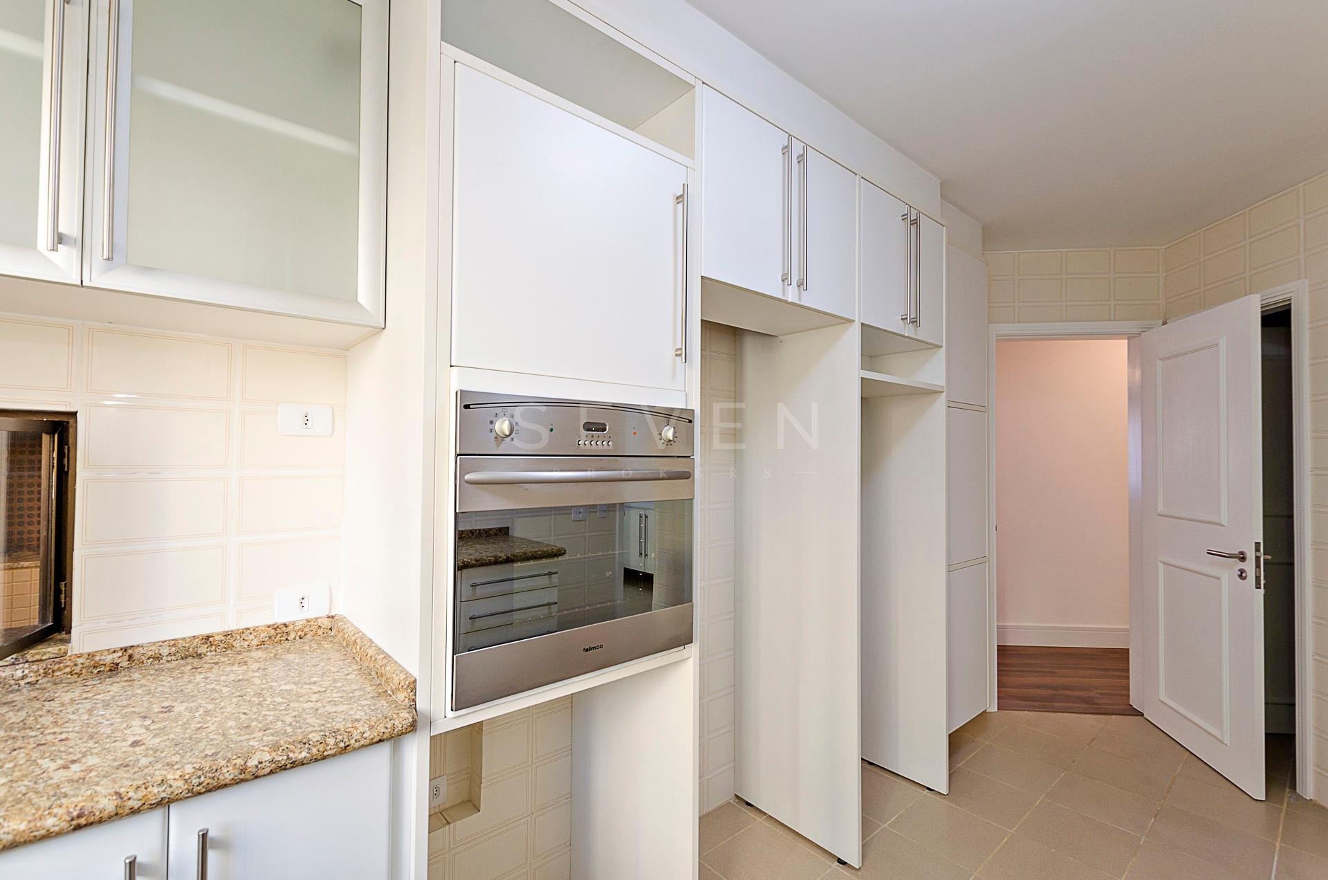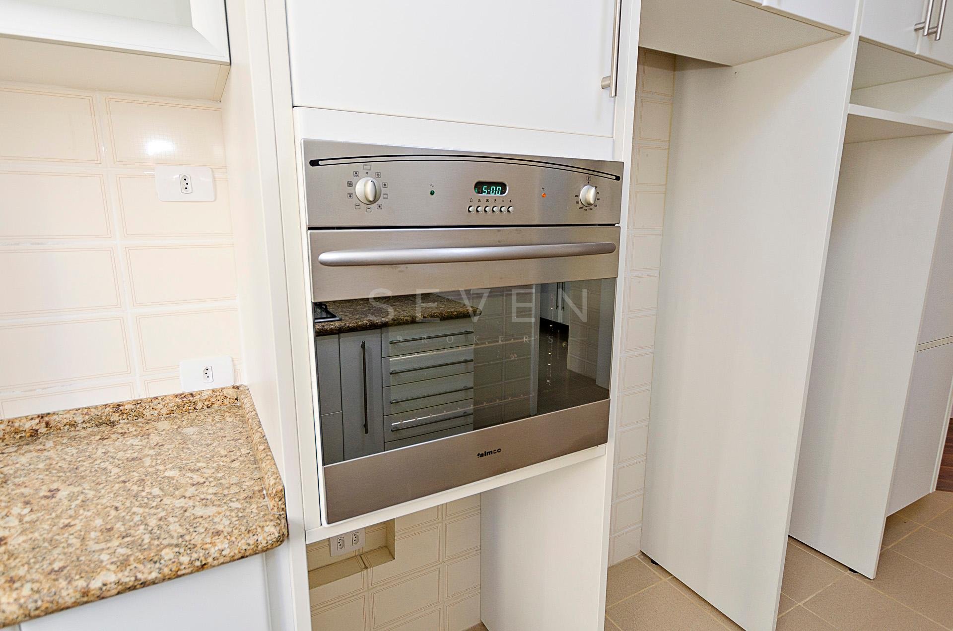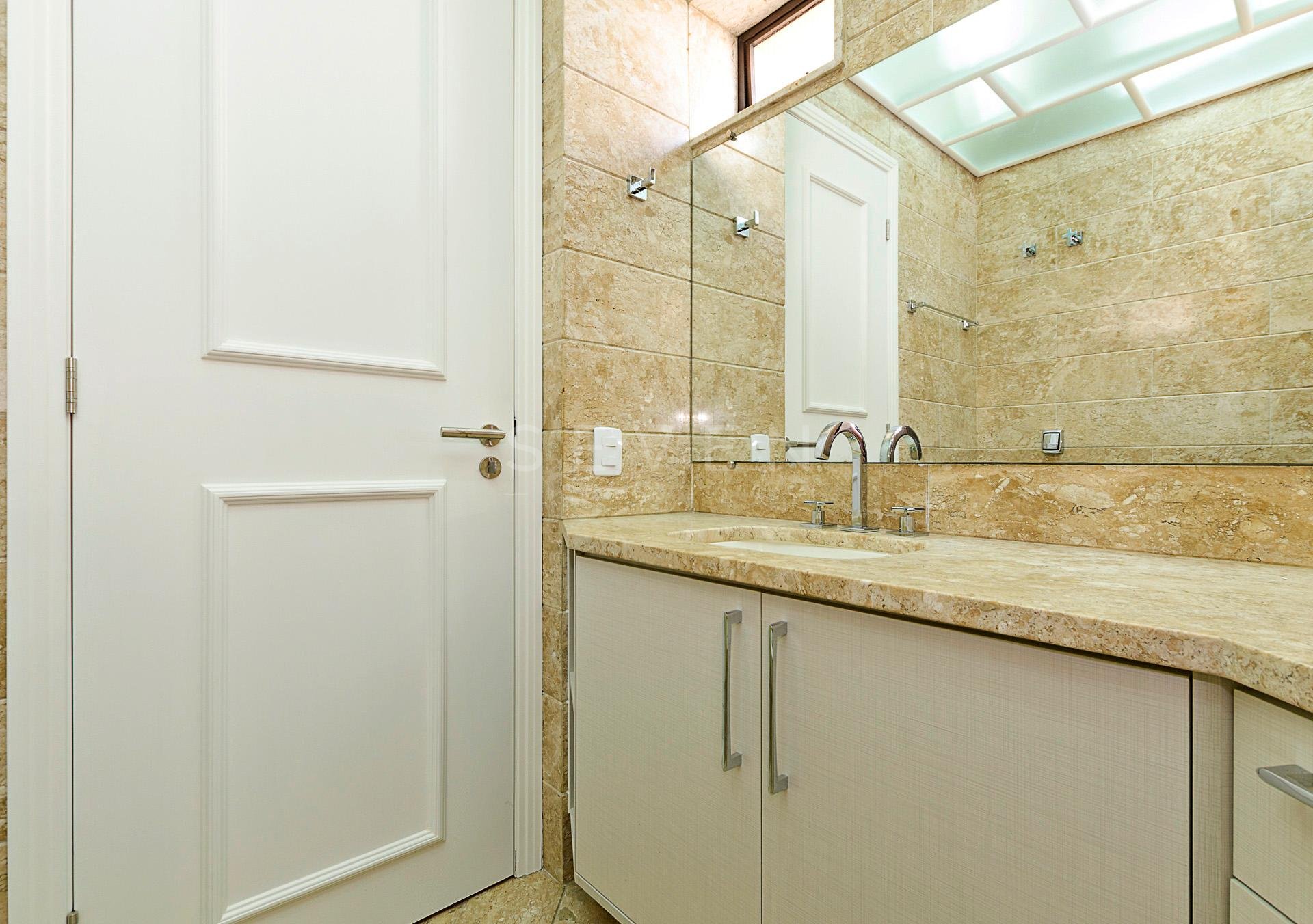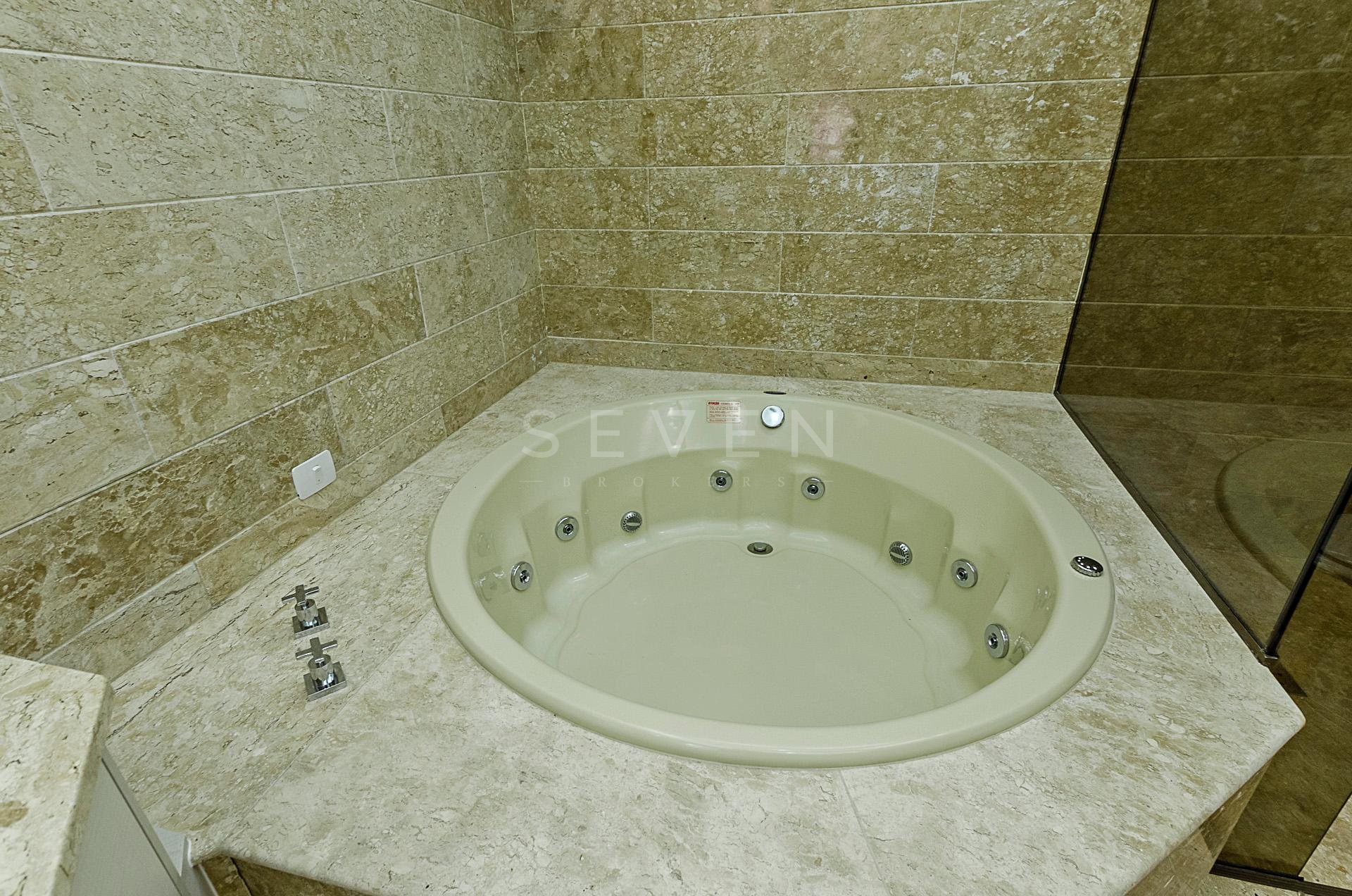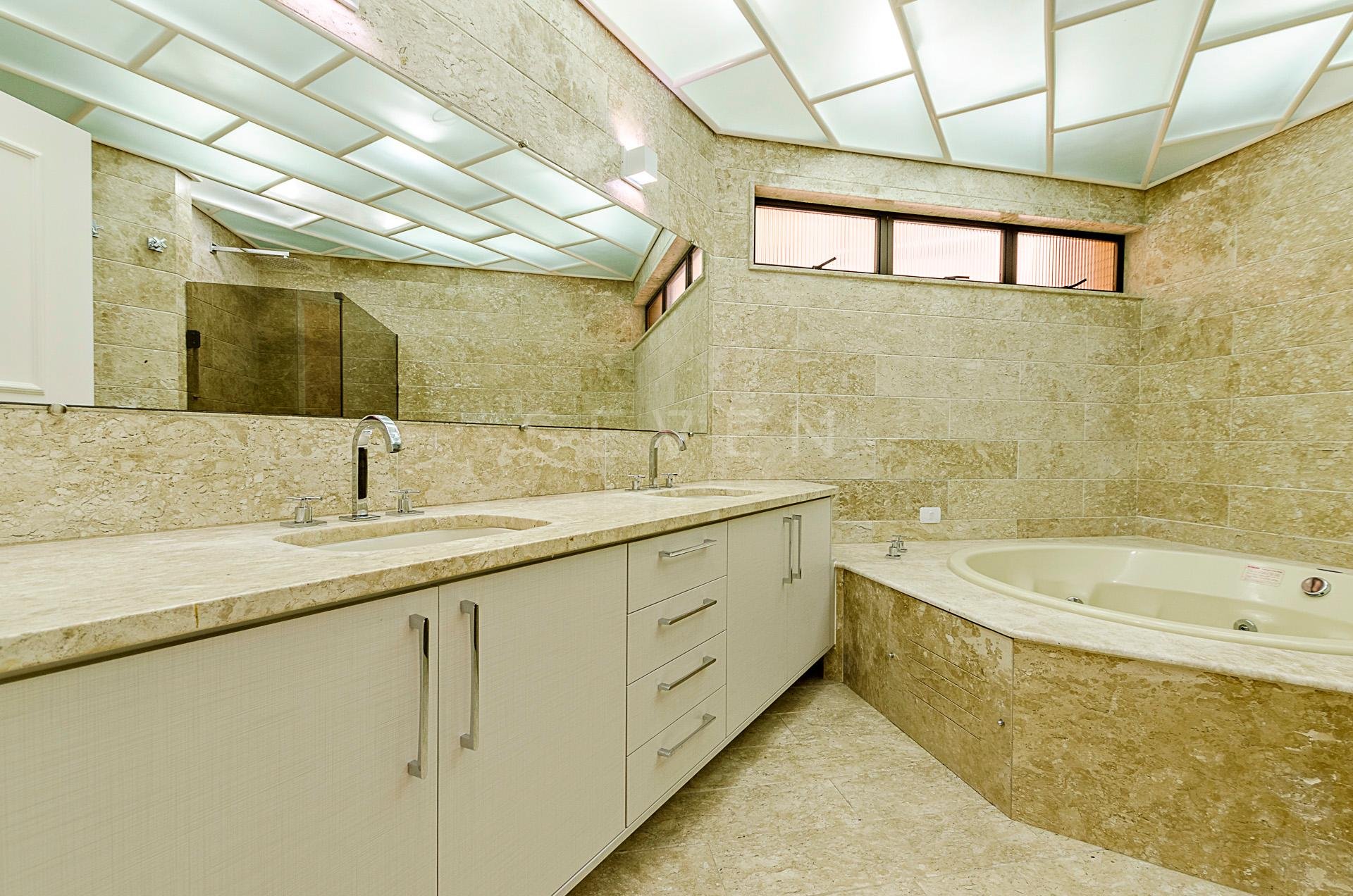 Quatro dormitórios com armários planejados, sendo duas suítes, júnior e máster com hidromassagem e closet, banheiros revestidos em mármore travertino.