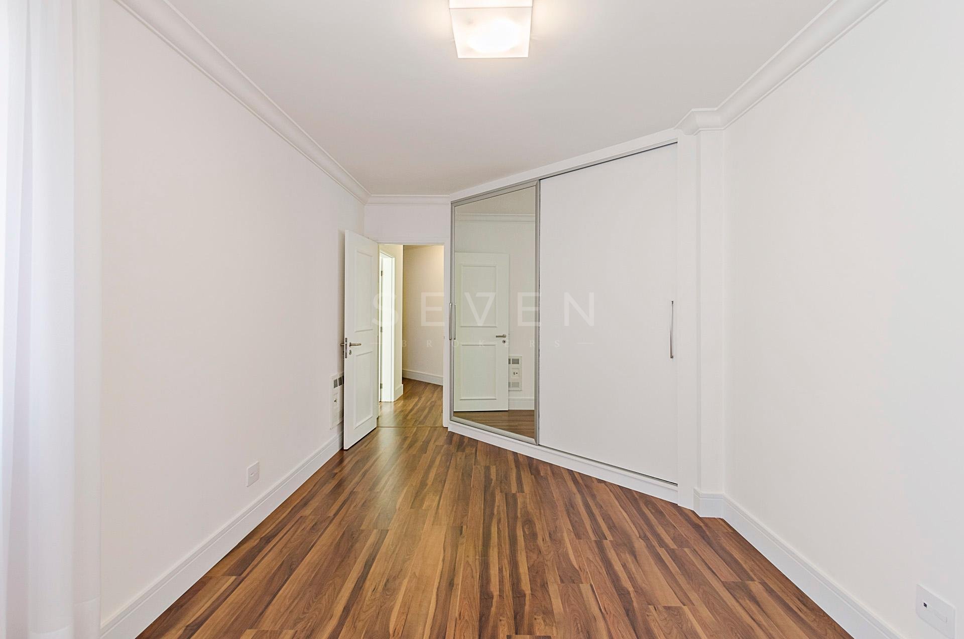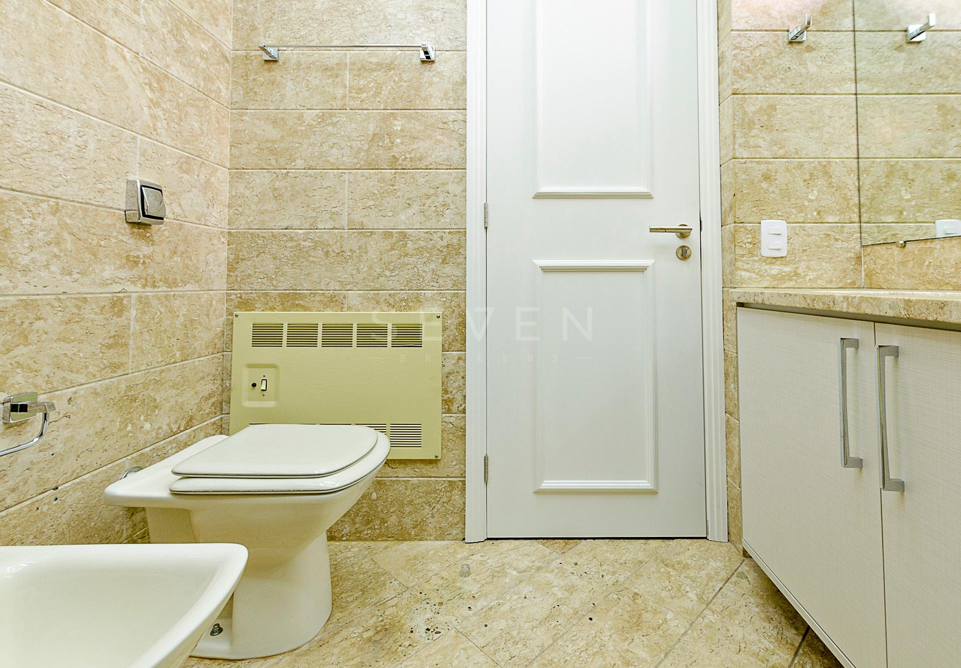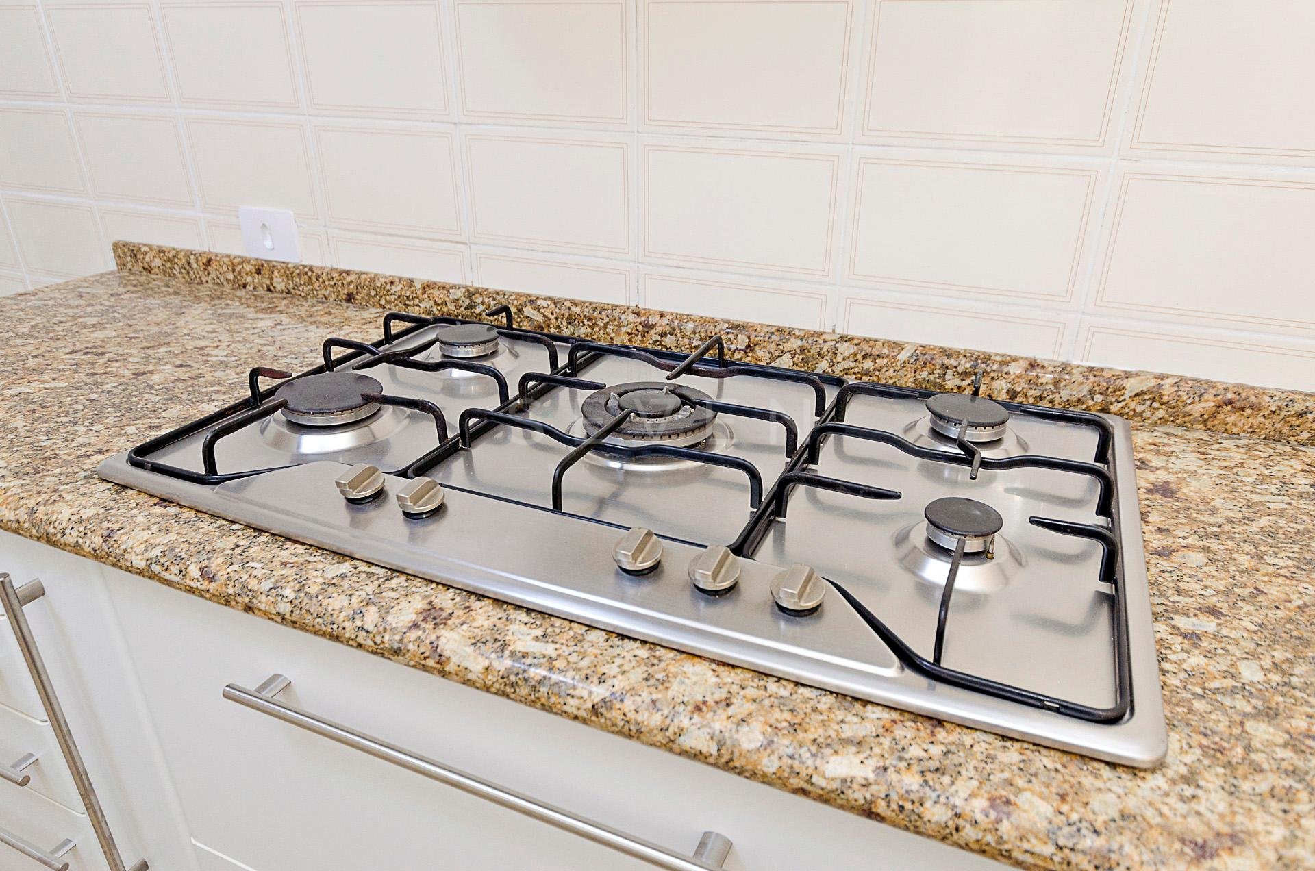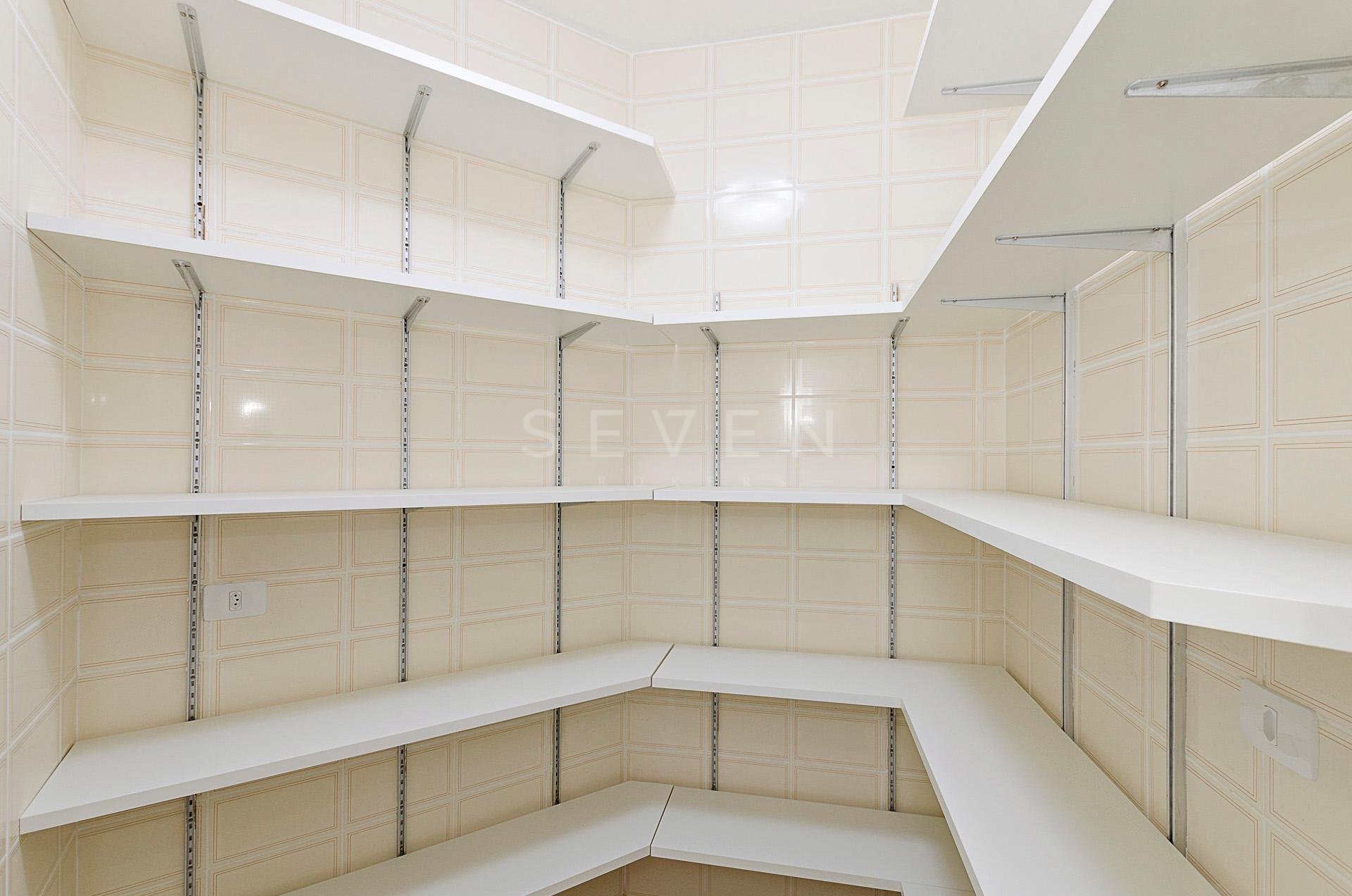 Quatro dormitórios com armários planejados, sendo duas suítes, júnior e máster com hidromassagem e closet, banheiros revestidos em mármore travertino.