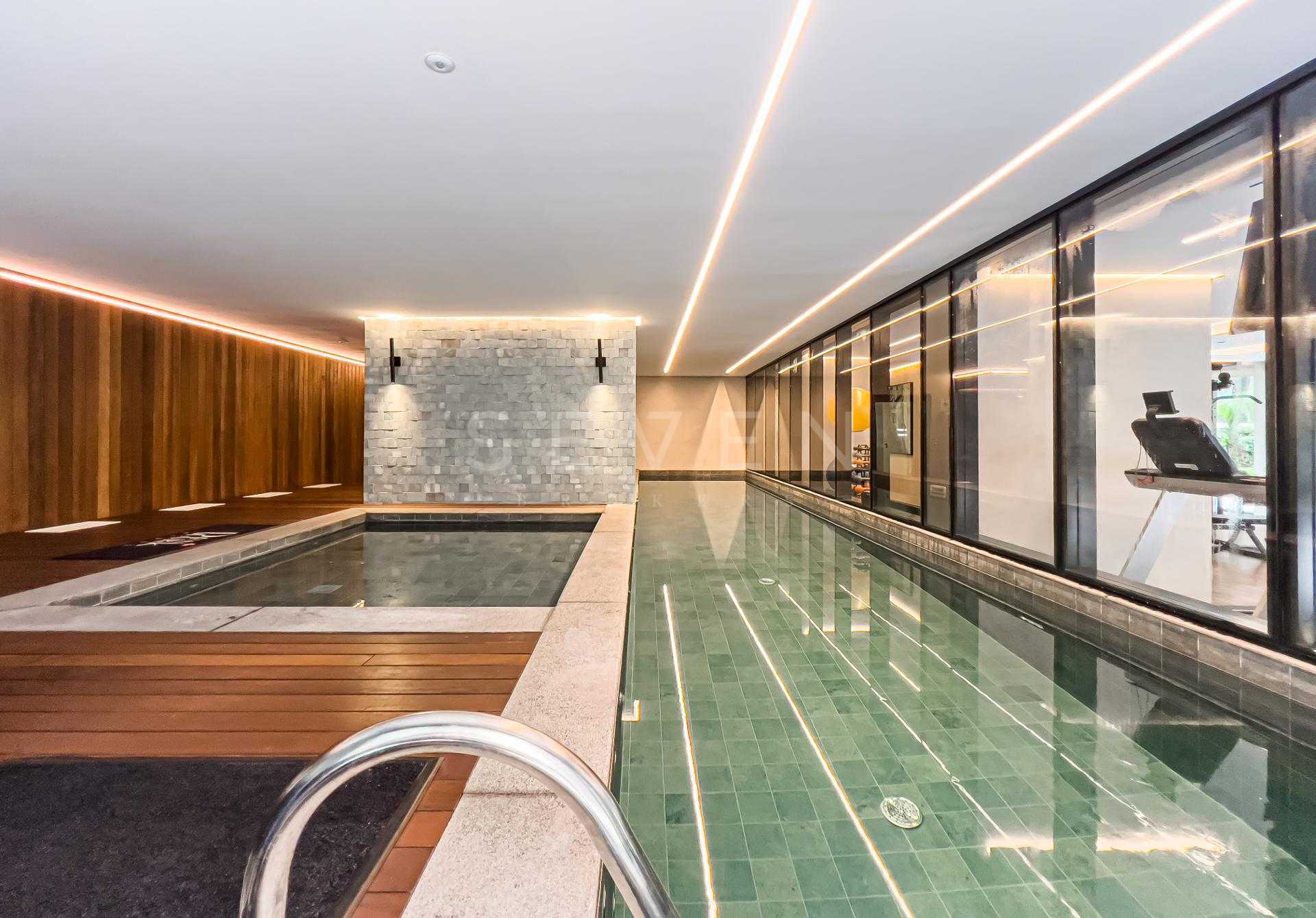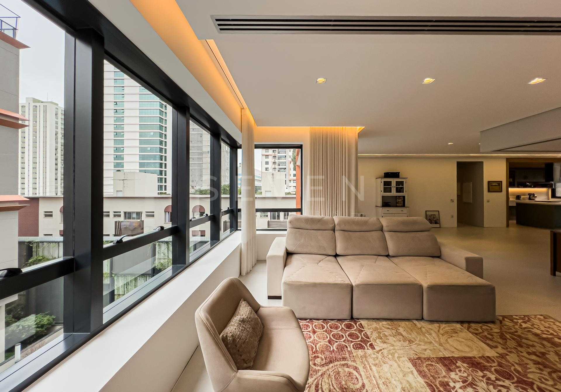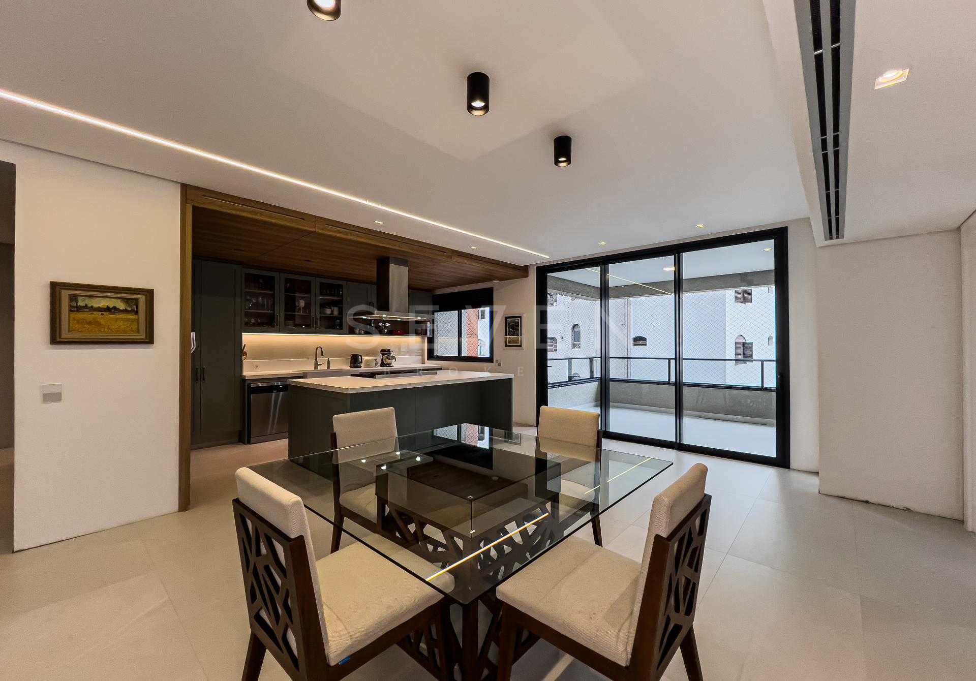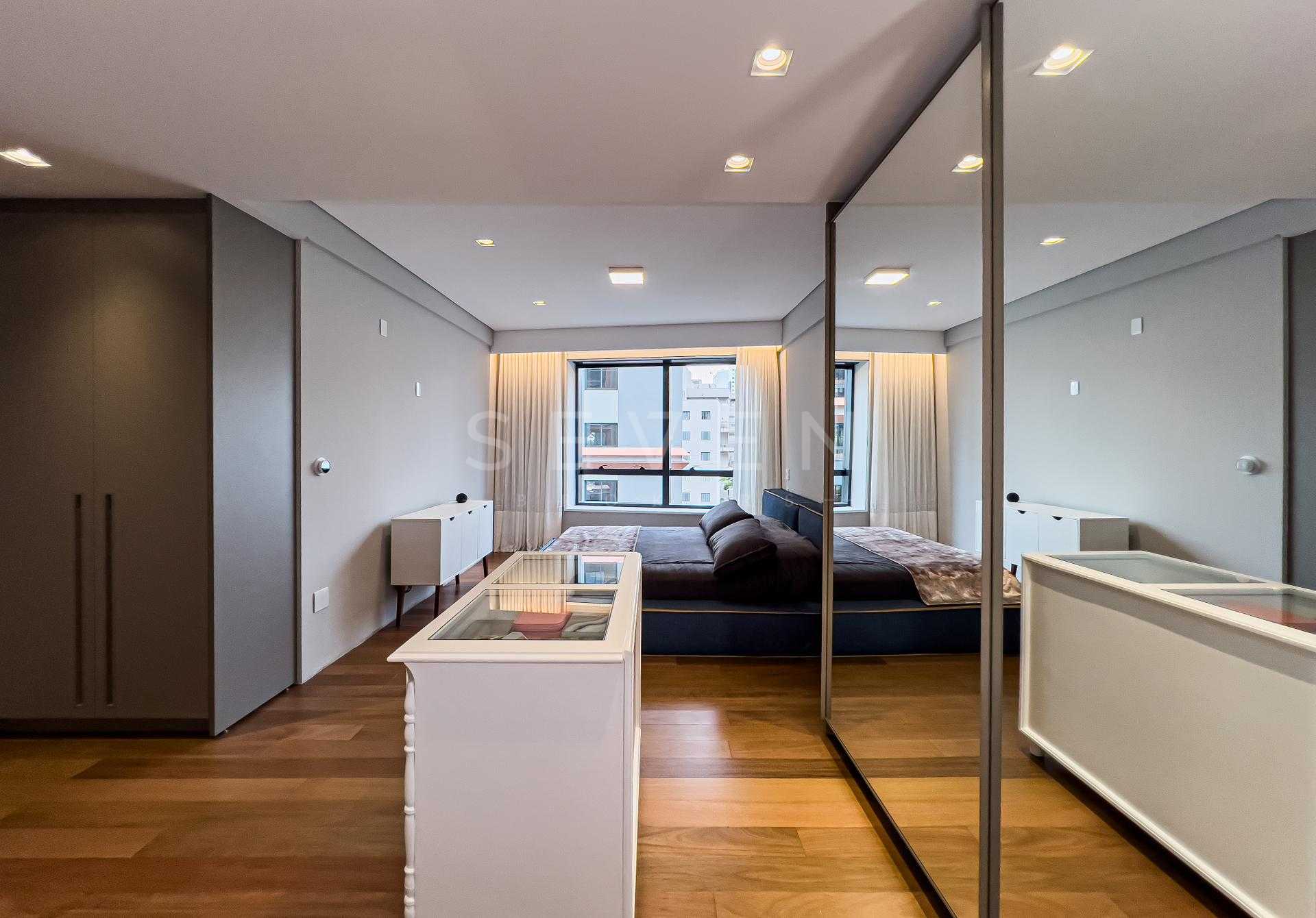 Com 227,98 m² privativos, o layout privilegia integração e funcionalidade, criando ambientes acolhedores e ao mesmo tempo sofisticados. Totalmente mobiliado com peças assinadas pela Mobitec, o apartamento conta com automação completa, permitindo o controle de iluminação, som e persianas blackout de forma simples e intuitiva.