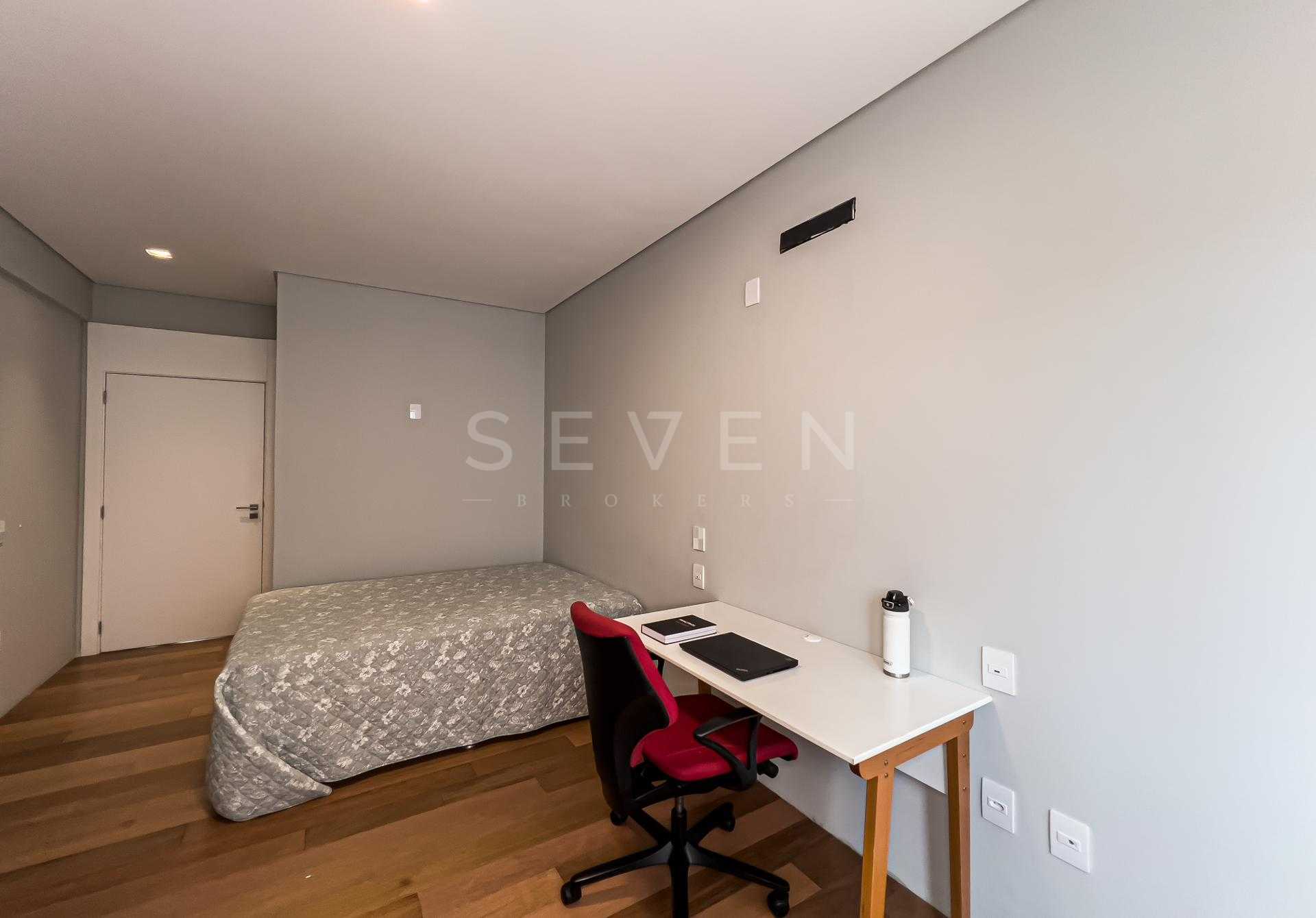 A suíte master se destaca pelo excelente aproveitamento de luz natural, hidromassagem e ponto para TV, criando um verdadeiro refúgio particular. O imóvel ainda oferece 3 vagas de garagem, vaga para moto e depósito privativo.