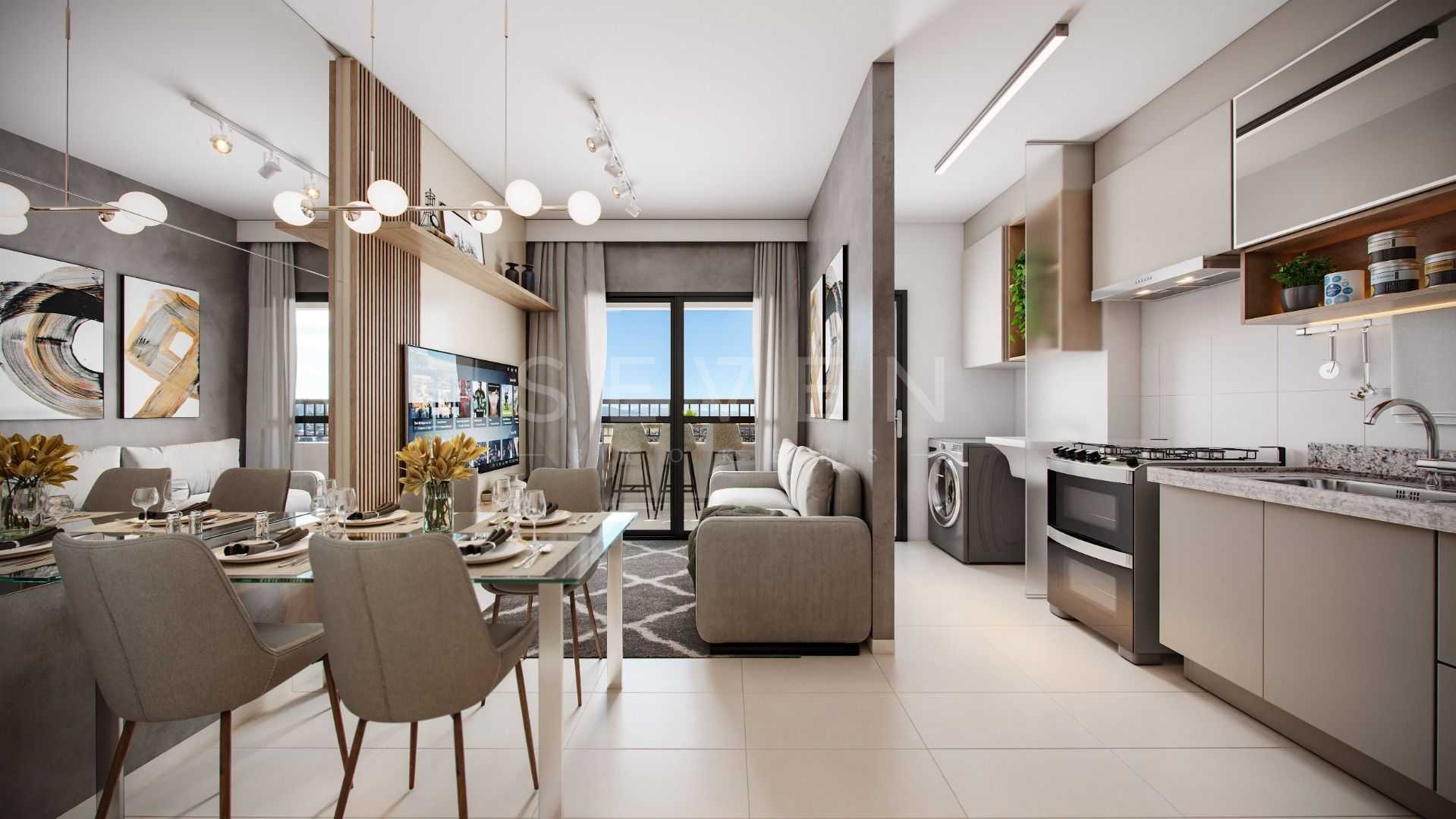 Living integrado (sala de estar e jantar), criando amplitude e conforto no dia a dia