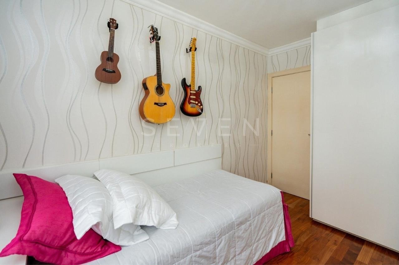O imóvel conta com uma sala ampla e iluminada, ideal para dois ambientes, com acesso a duas varandas que proporcionam ainda mais ventilação e luminosidade. São três quartos com armários planejados, sendo uma suíte com hidromassagem, perfeita para momentos de relaxamento. A cozinha é equipada com armários sob medida e balcão em granito, e a área de serviço oferece funcionalidade com armários, banheiro e uma despensa a qual pode ser utilizada como escritório. Além disso, o apartamento possui um banheiro social e um lavabo, agregando praticidade ao dia a dia.