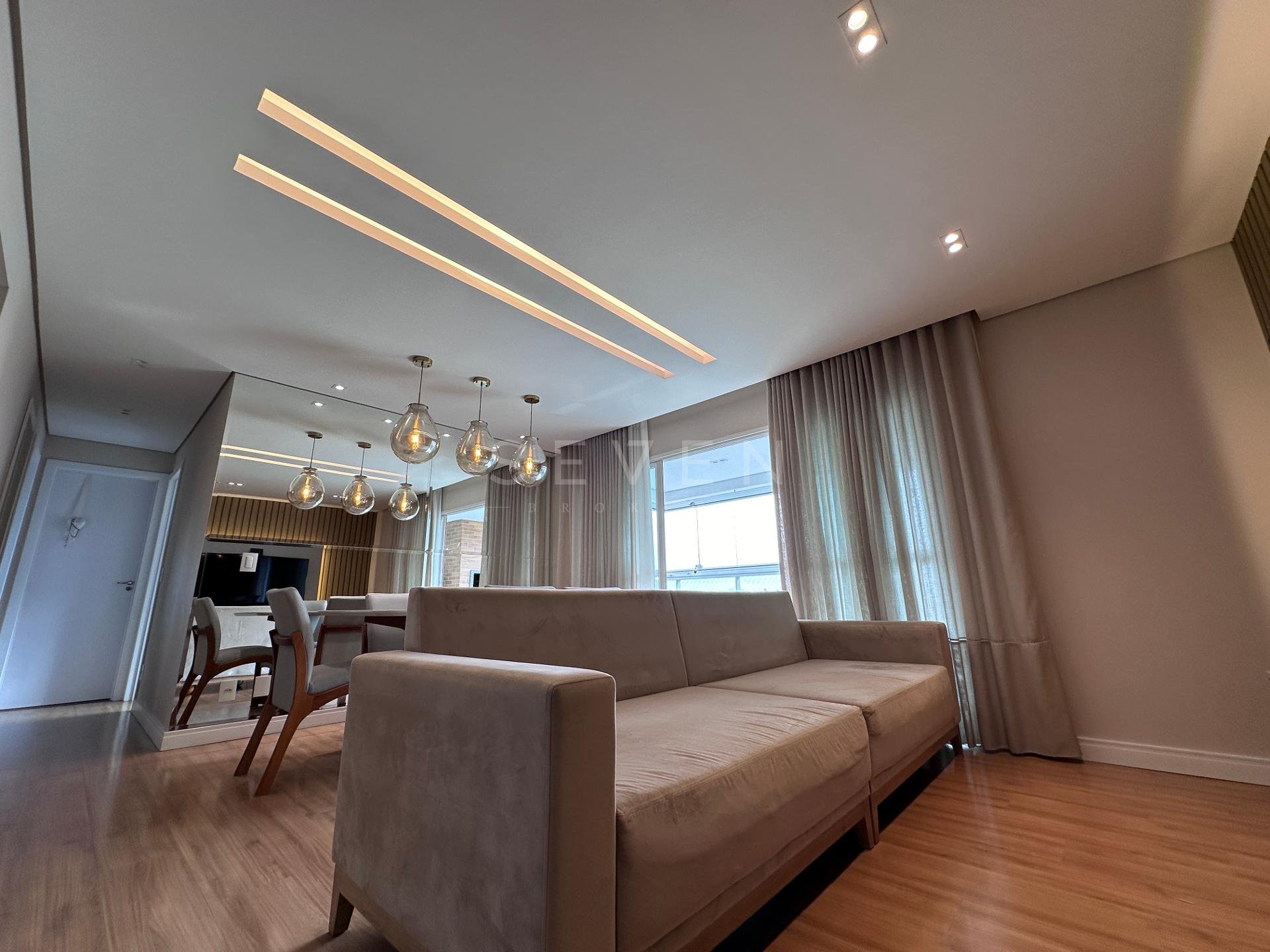 Acabamentos modernos: painéis ripados, rebaixo em gesso, iluminação em LED direta, indireta e oculta;