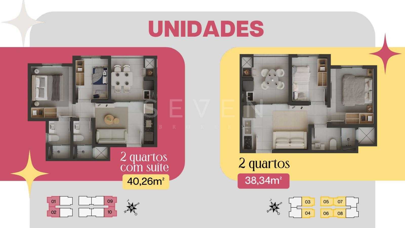 Plantas inteligentes com 38 m² a 40 m² de área privativa: