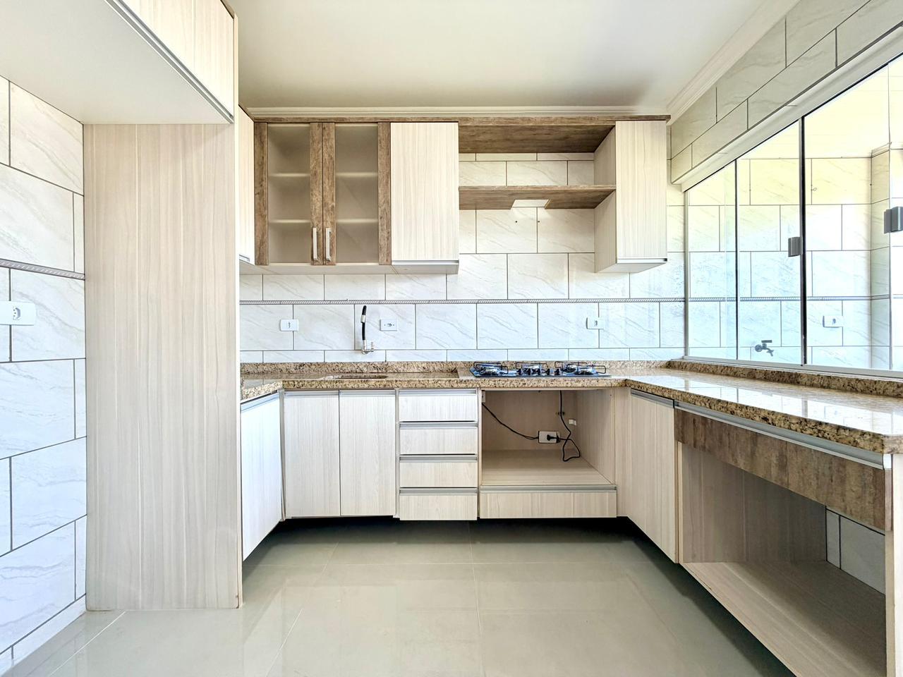 Cozinha com móveis planejados, proporcionando organização e praticidade, além de cooktop já instalado
