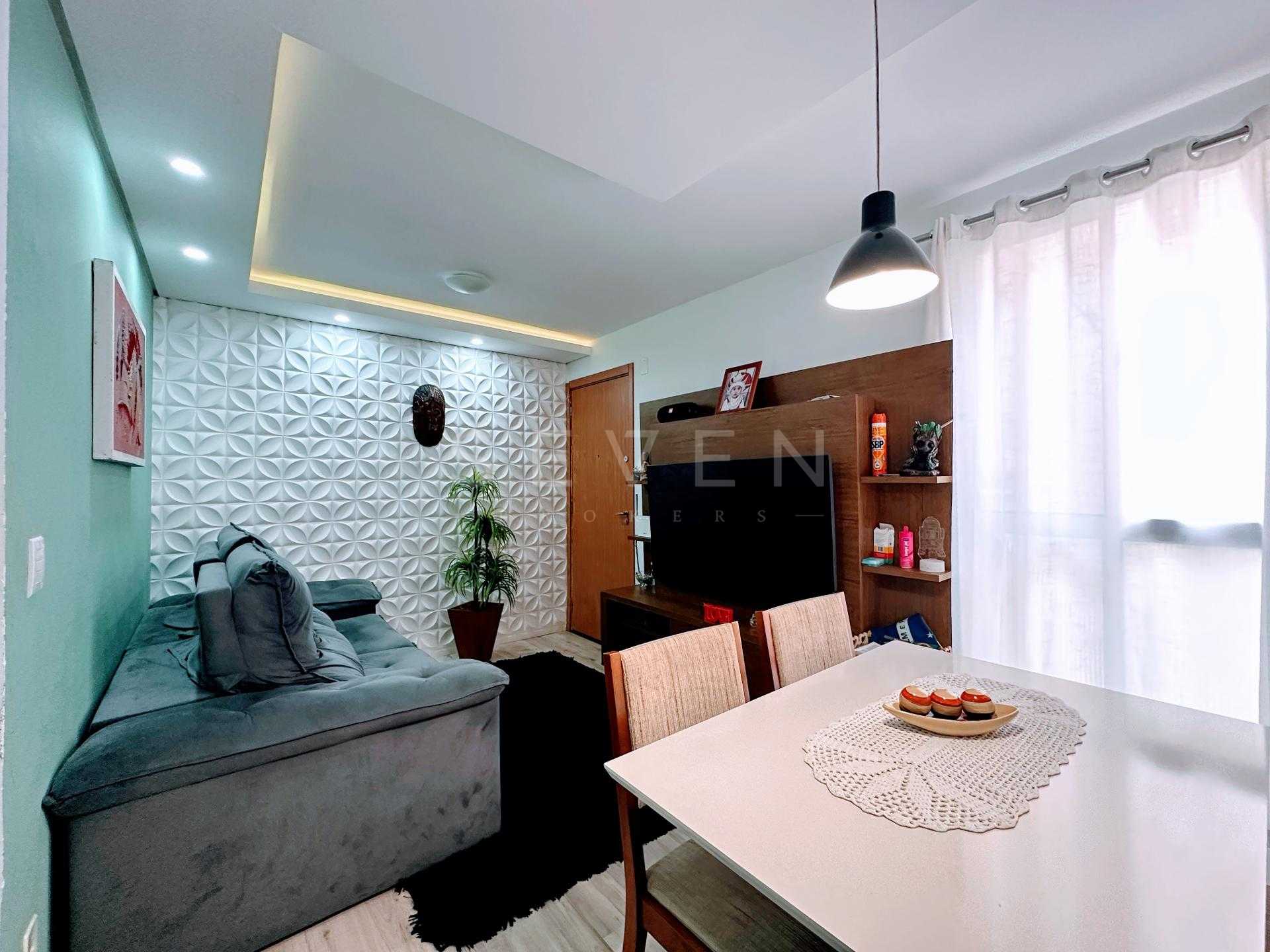 O Apartamento conta com aquecimento a gás na cozinha e banheiro, peitoril das janelas em mármore, piso de porcelanato preto na cozinha e banheiro, piso laminado na área social e quartos, cozinha com armários planejados, pia e bancada em granito, banheiro com armário e box de vidro, teto com rebaixamento em gesso com projeto luminitécnico na sala e cozinha, a sala de estar possui uma da paredes com placas em gesso. O apartamento conta ainda com as janelas dos quartos voltadas para uma das áreas verdes do condomínio, trazendo privacidade e tranquilidade para o seu novo Lar.