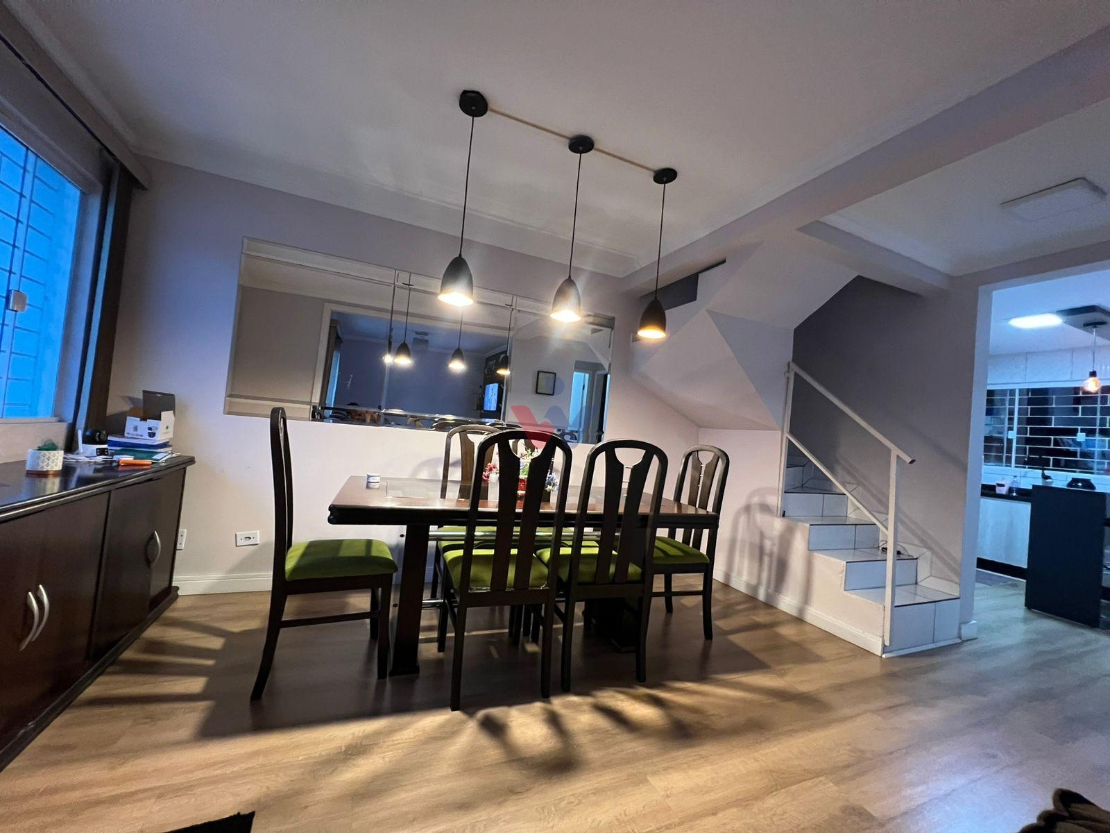 A sala é ampla e bem iluminada, ideal para dois ambientes, com teto rebaixado em gesso, sancas decorativas e luminárias modernas, criando um espaço acolhedor e sofisticado. O piso laminado na sala e nos quartos proporciona conforto térmico e um acabamento elegante.