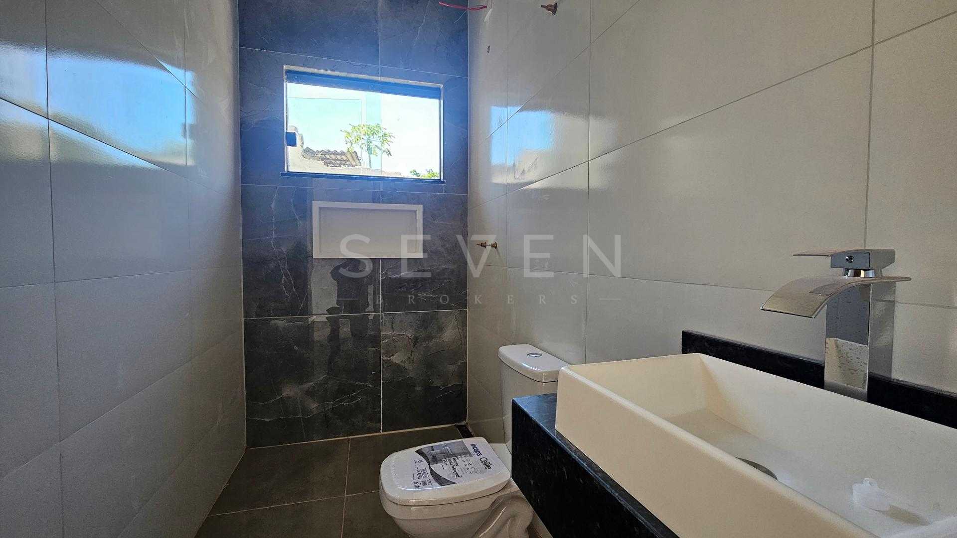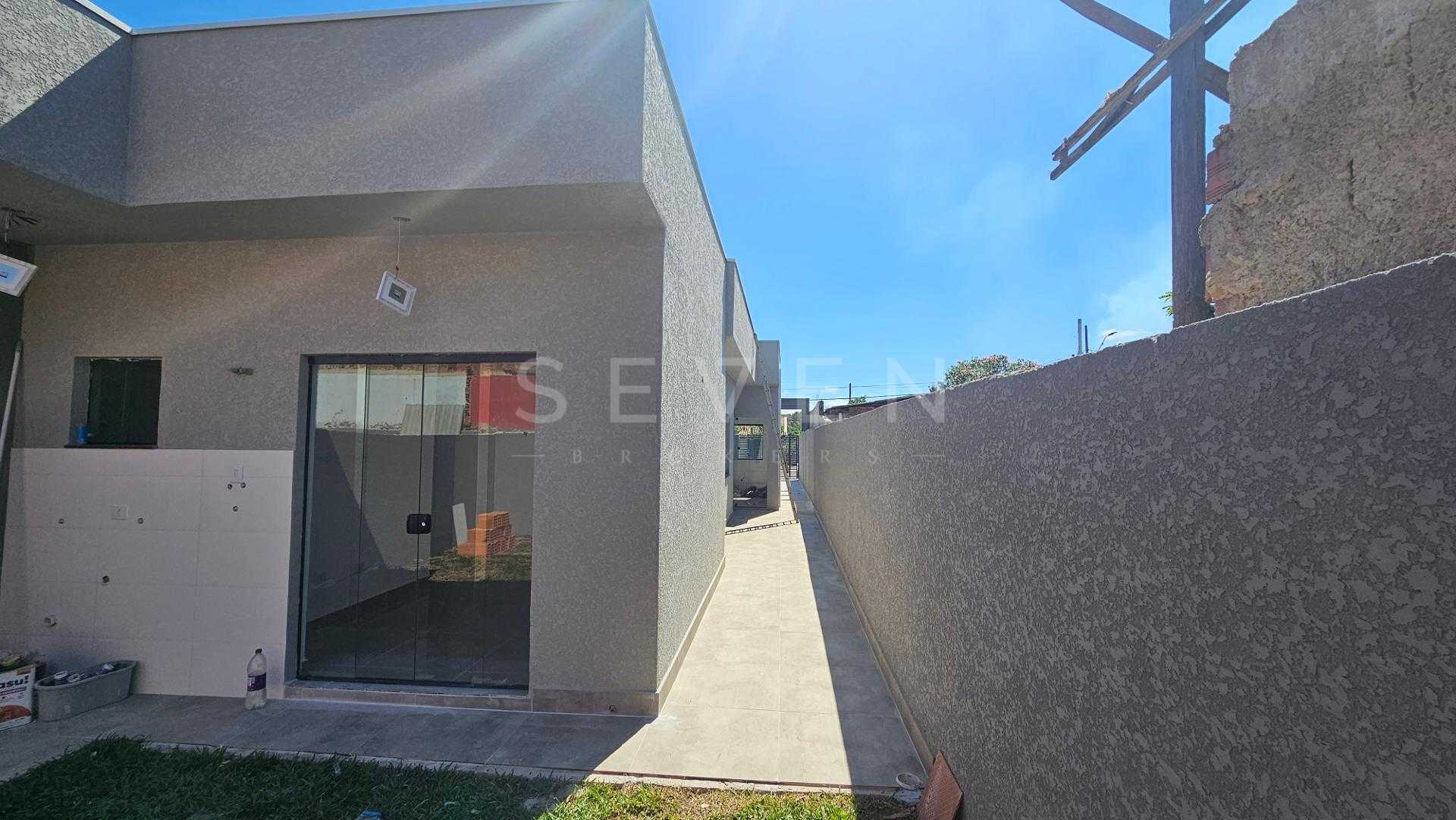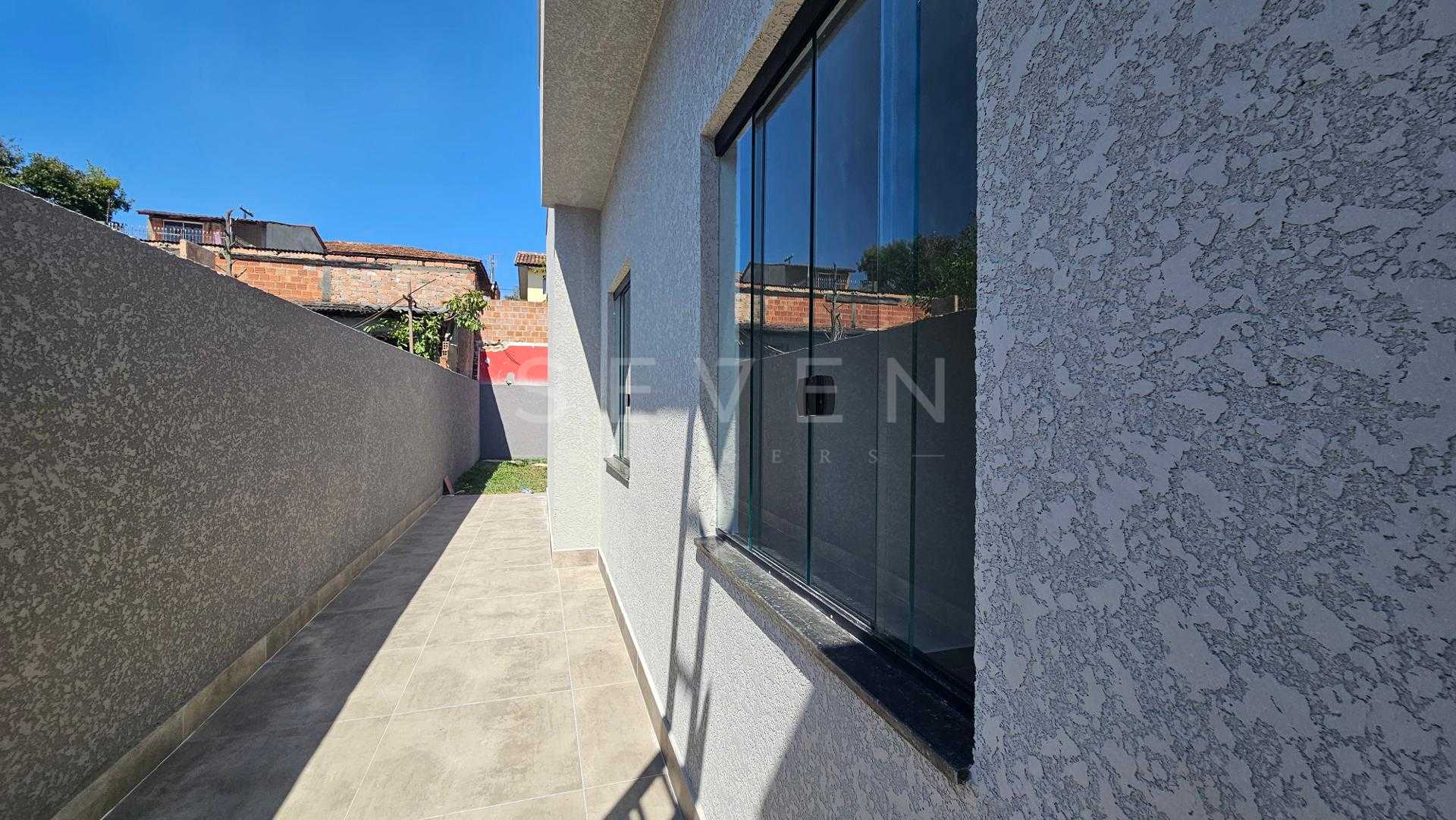 Casa nova com 70m², 3 quartos, sendo 1 suíte, ampla sala para dois ambientes com pé direito alto, cozinha, banheiro social e vaga para 2 carros, além de amplo espaço livre no terreno.