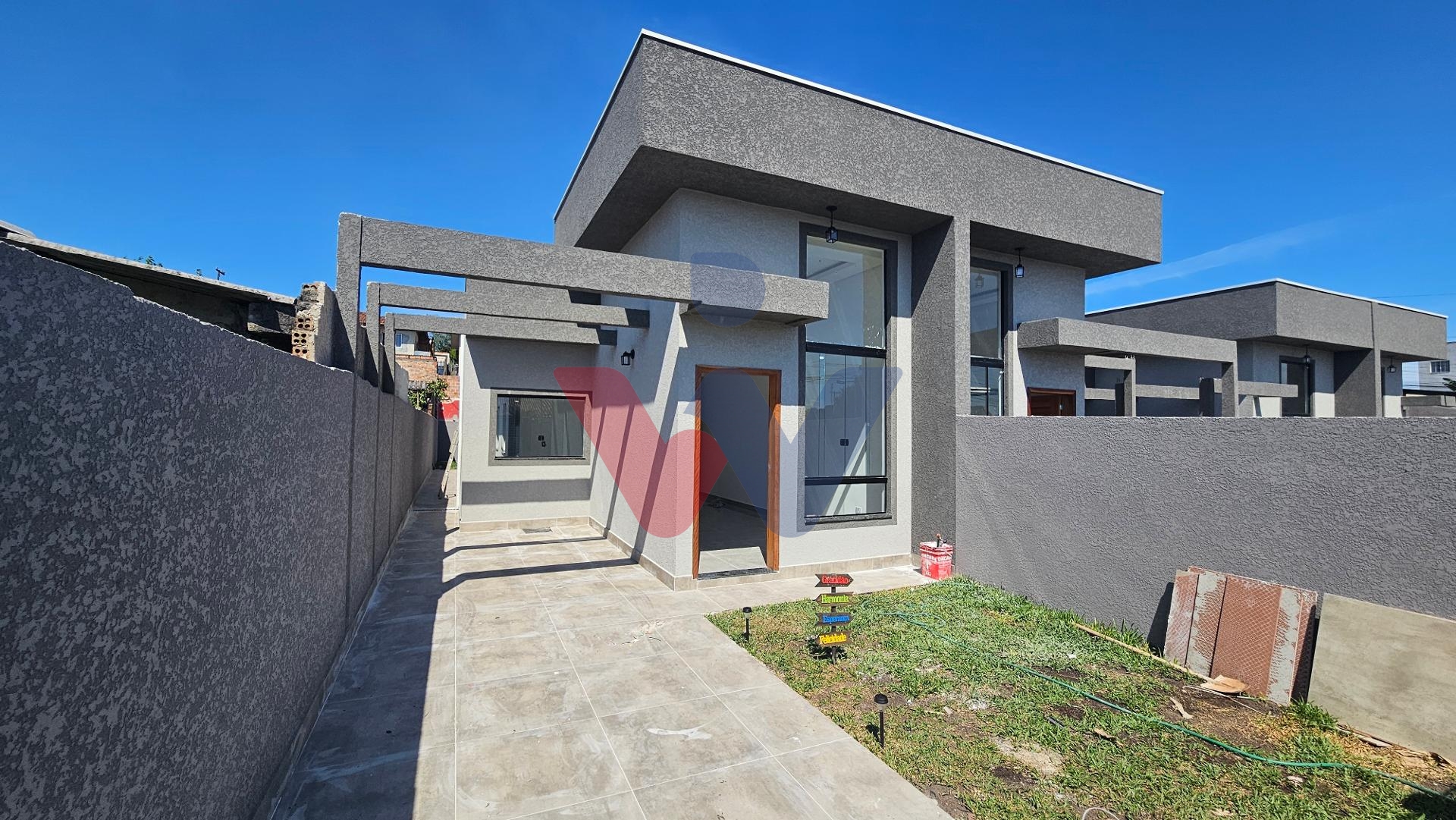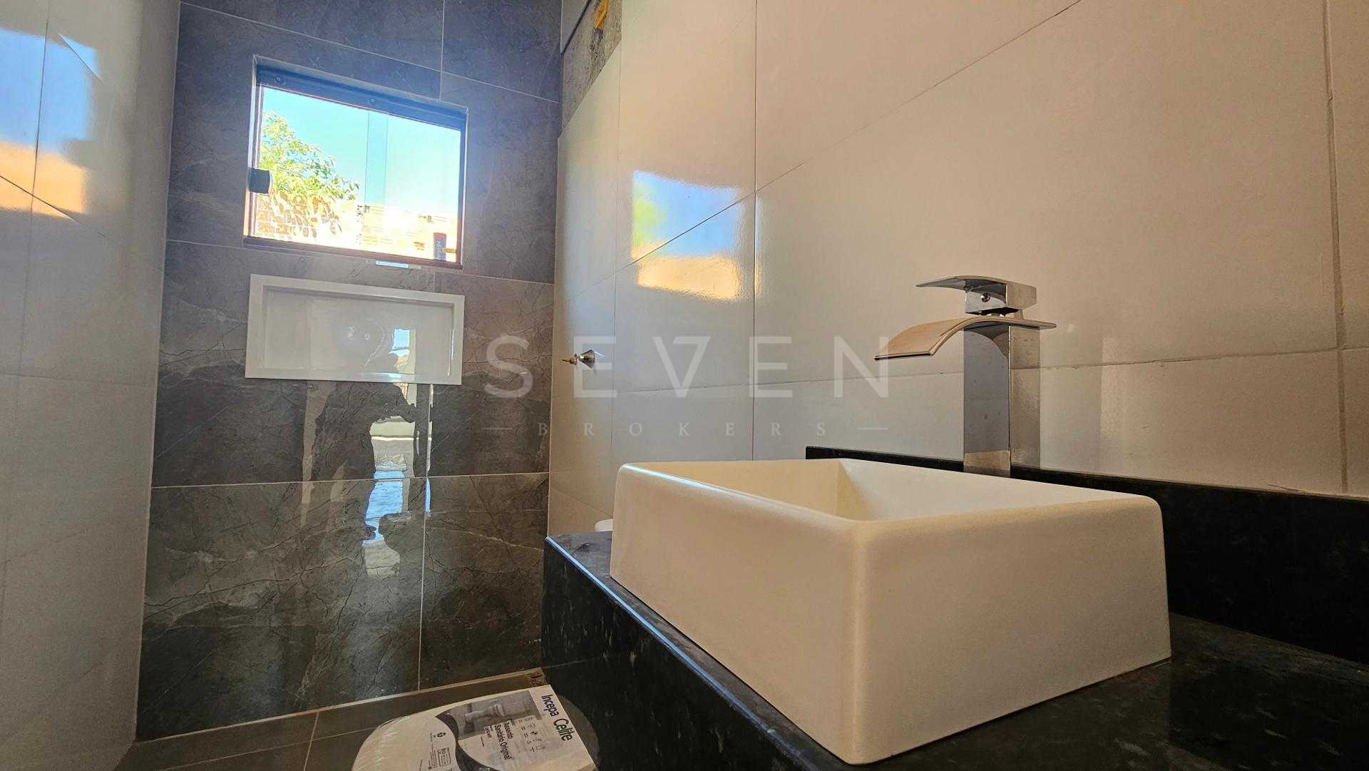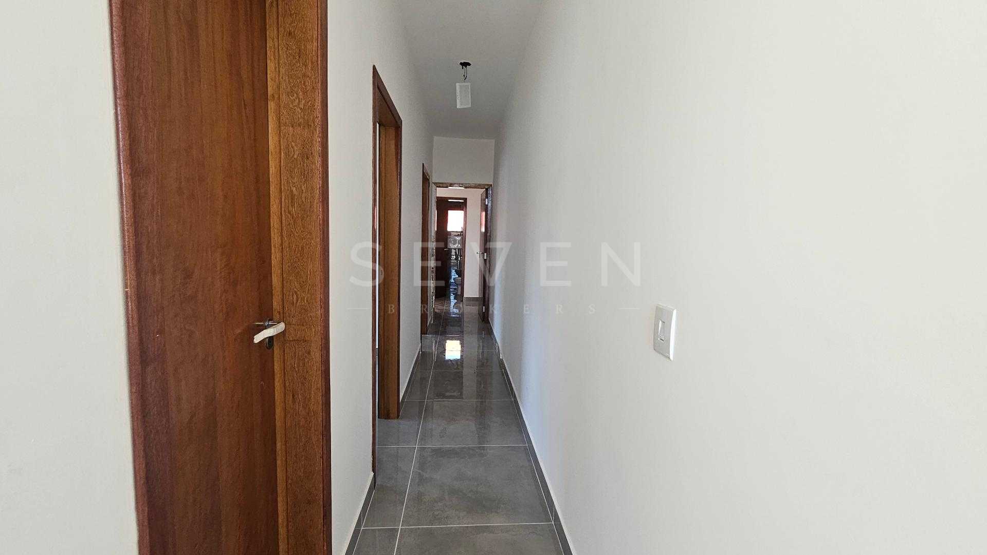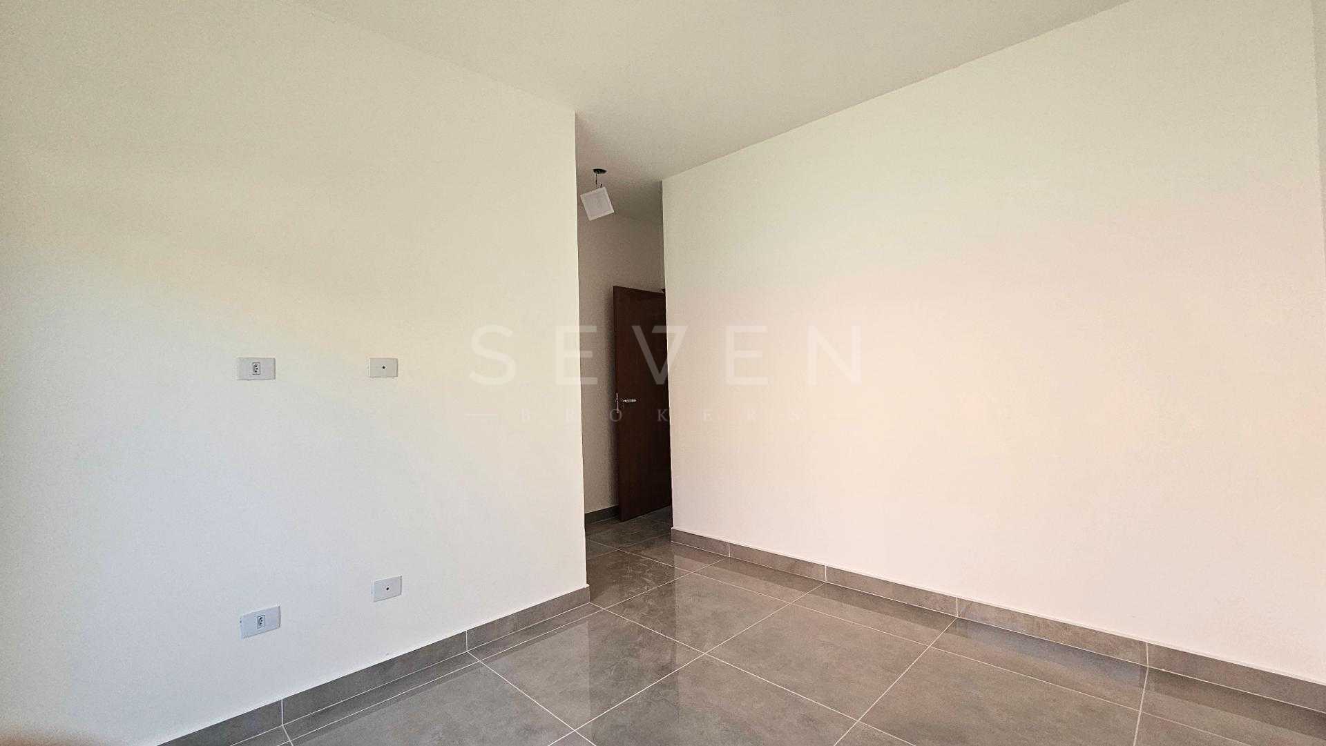 Casa nova com 70m², 3 quartos, sendo 1 suíte, ampla sala para dois ambientes com pé direito alto, cozinha, banheiro social e vaga para 2 carros, além de amplo espaço livre no terreno.