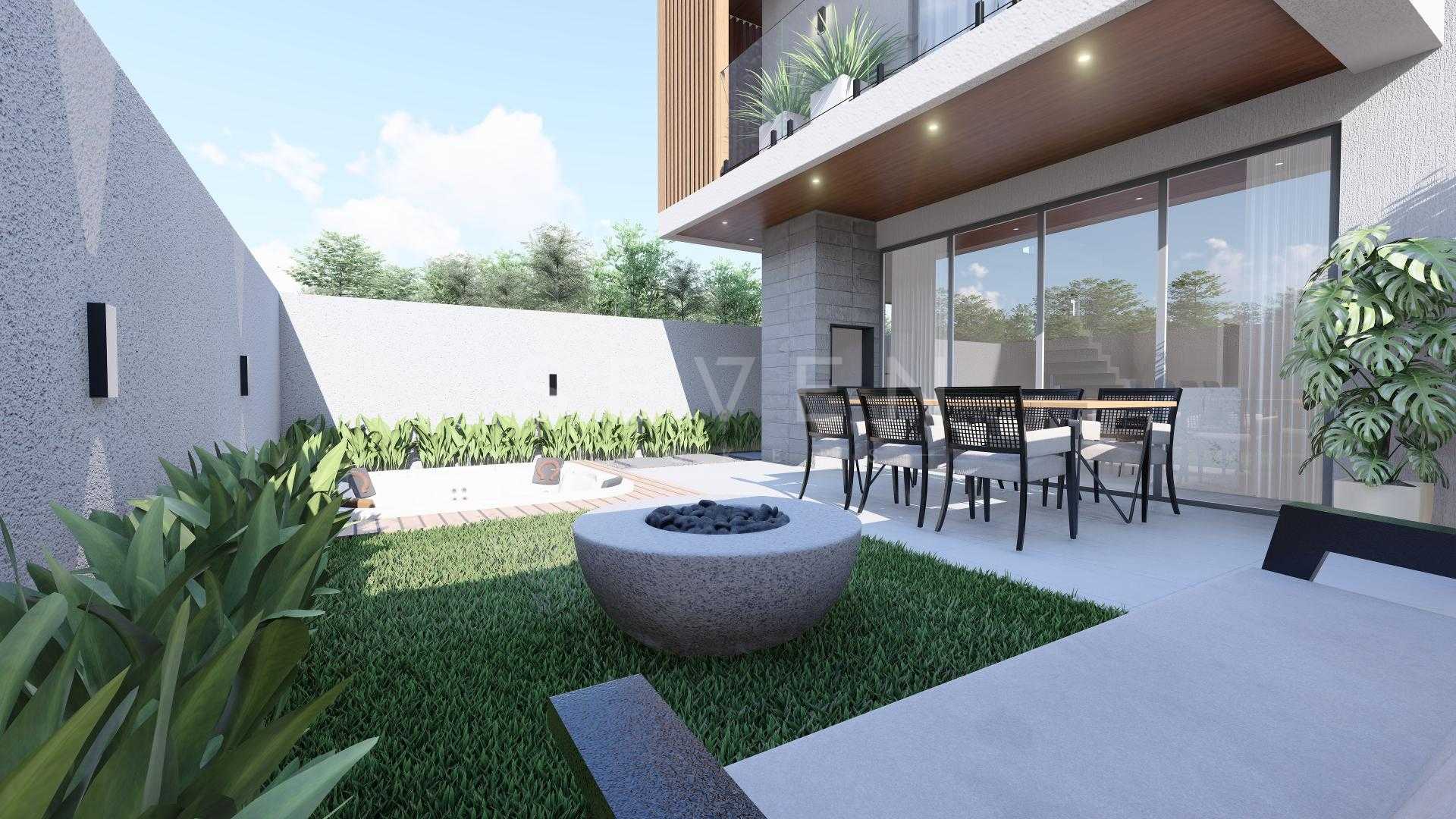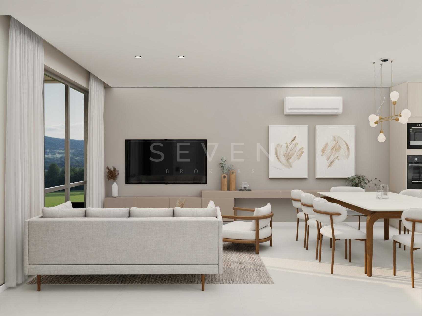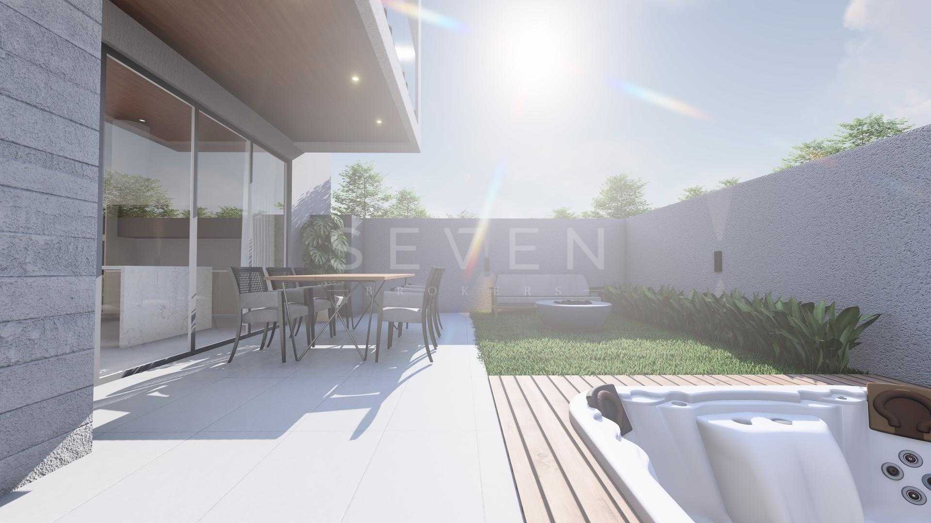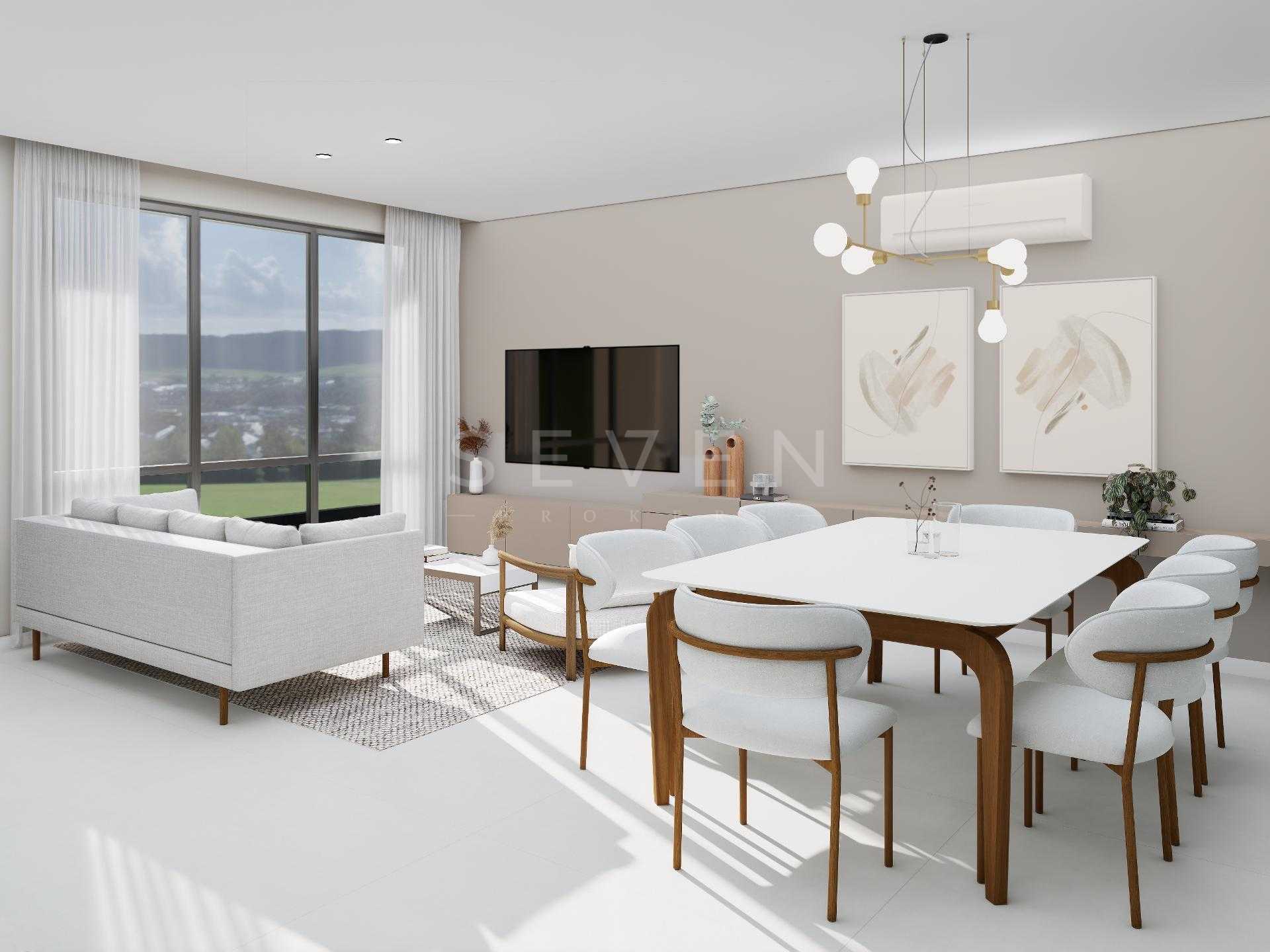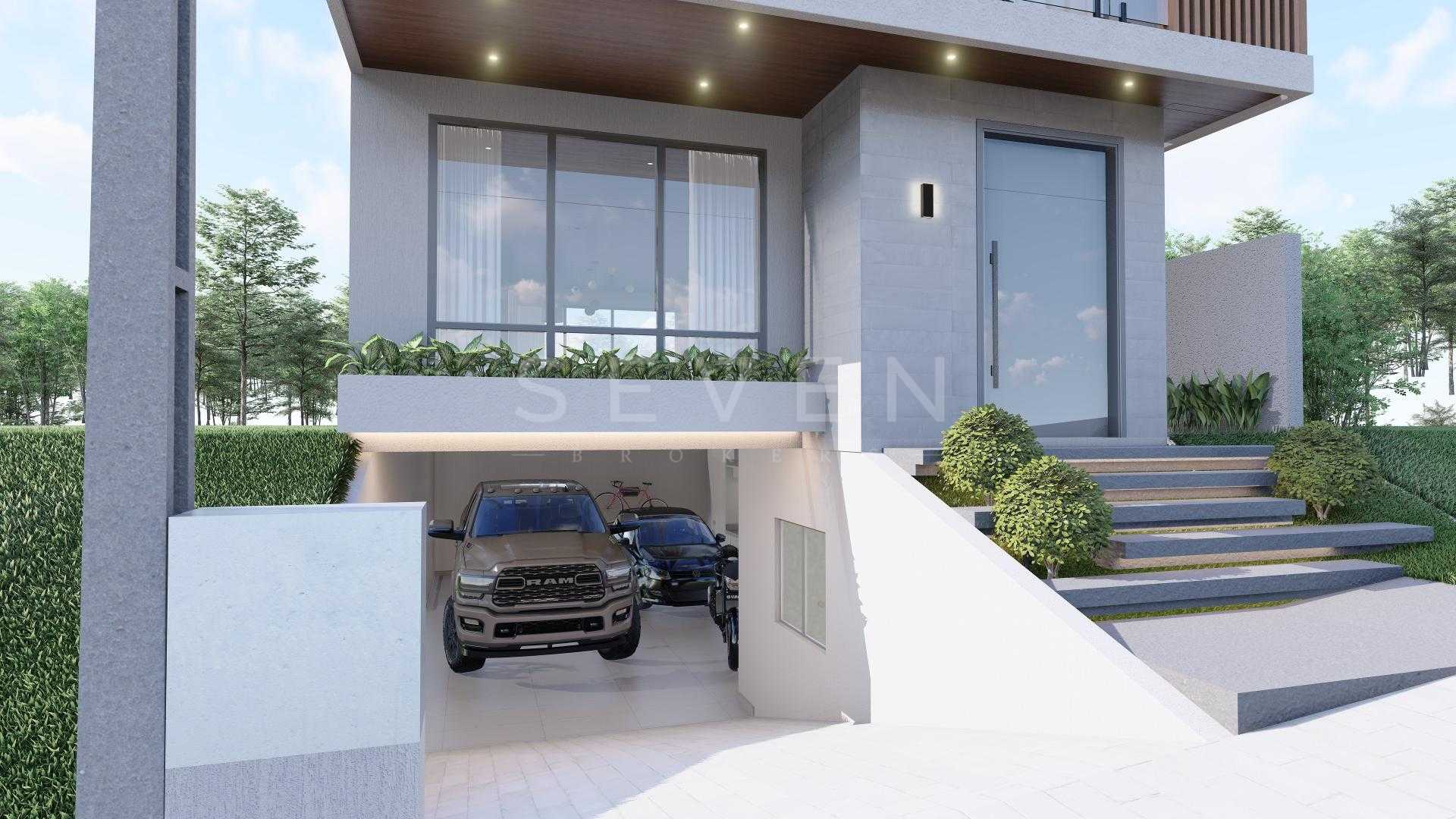 Terreo com sala de estar, integrada com jantar, espaço adega, lavabo e cozinha com varanda gourmet, churrasqueira a carvao, e um amplo quintal com espaço para jacuzzi e grama.
