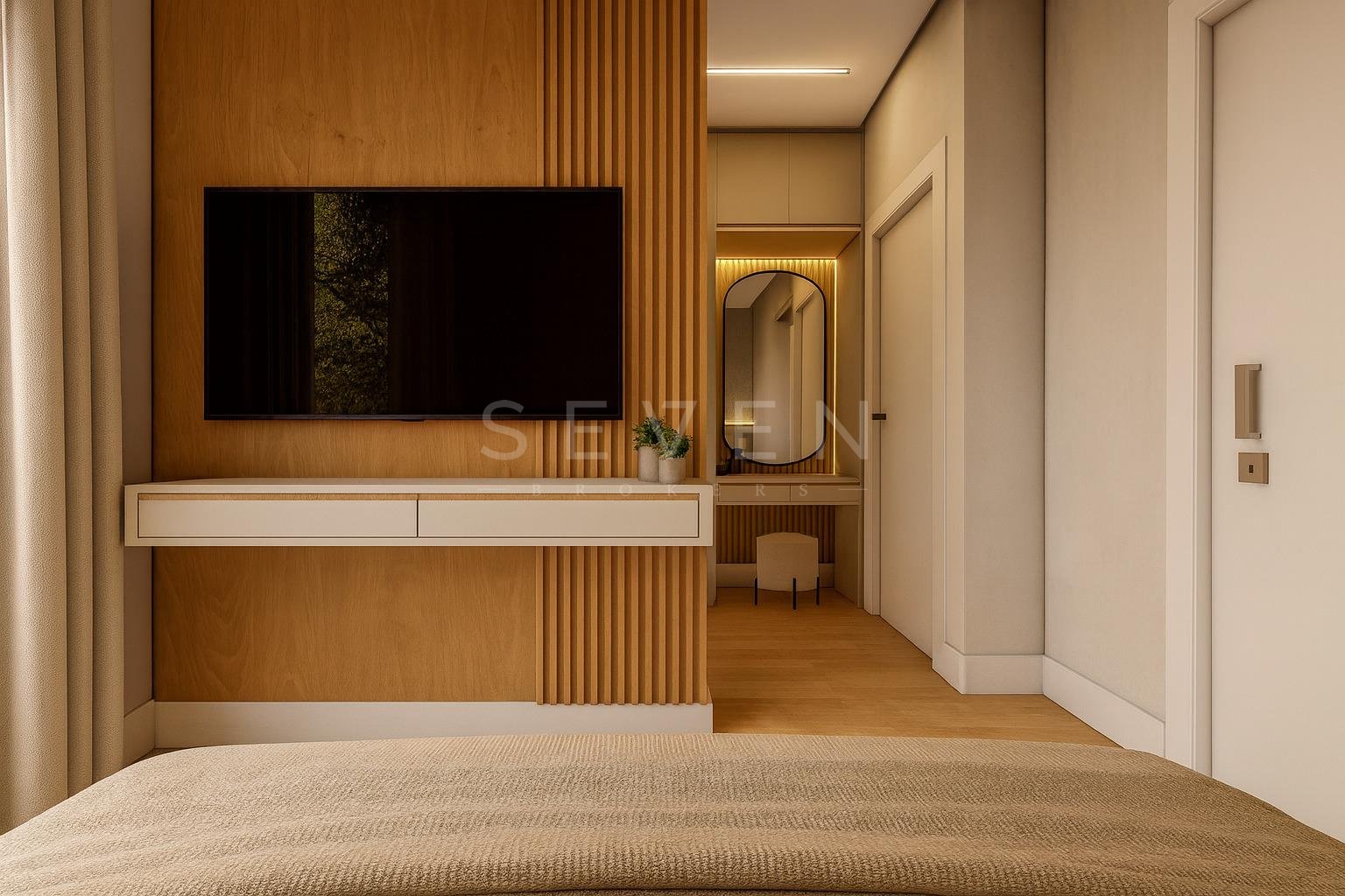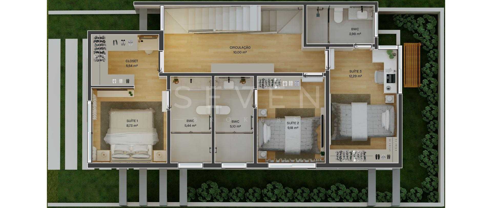Segundo andar com 3 suites, sendo 1 suite master com closet. Todos com infra para ar condicionado, piso aquecido nos banheiros