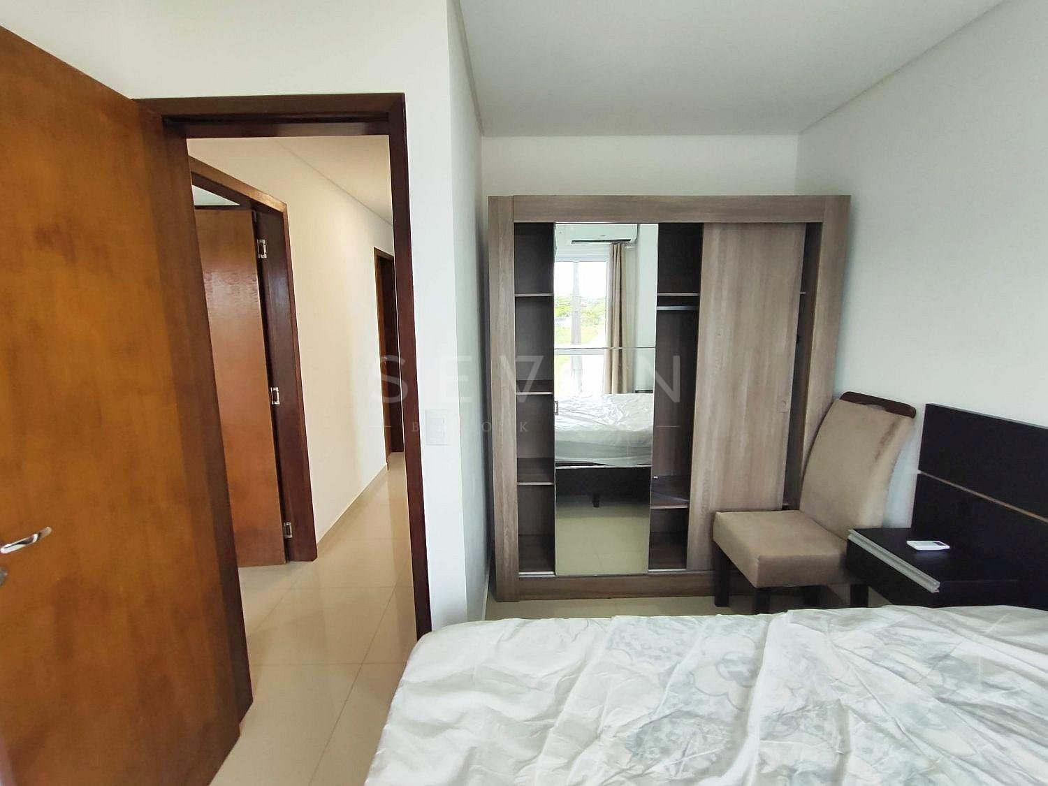 Com área privativa de 42,96m², em terreno de 104,58m² (48,35m² no térreo e 56,23m² no piso superior) + área coberta de churrasqueira e piscina. Mobiliado e equipado, pronto para atender suas necessidades.