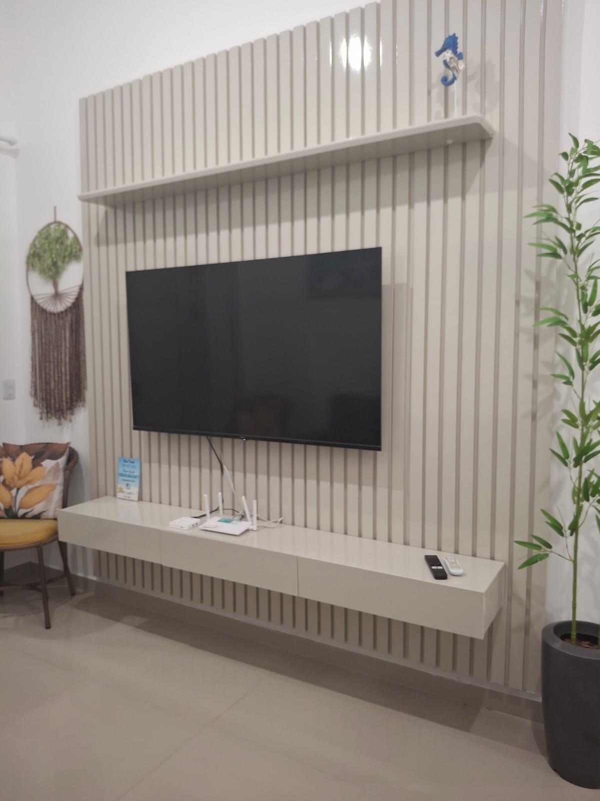 Com 97m² bem distribuídos, o imóvel integra sala e cozinha em um ambiente moderno e funcional. O painel ripado e os móveis sob medida agregam sofisticação, enquanto a cozinha planejada, completa com eletros e bancadas em granito, permite uso imediato - sem necessidade de novos investimentos.