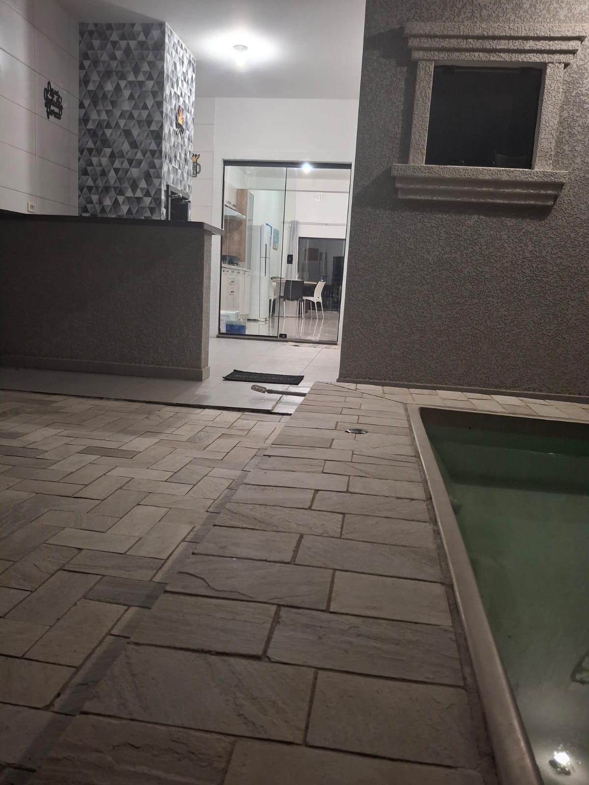 O grande destaque está na área externa. A piscina com iluminação em LED e cascata em inox cria um cenário elegante e convidativo. O revestimento em pedra natural e a iluminação embutida valorizam o ambiente, enquanto a área gourmet com churrasqueira integra o lazer com conforto. O banheiro externo completo traz ainda mais funcionalidade ao espaço.