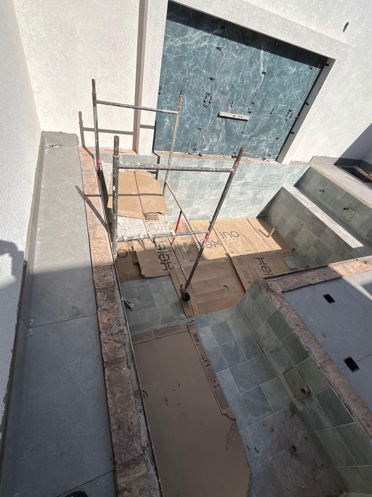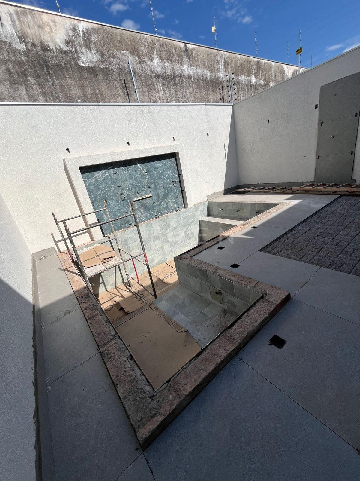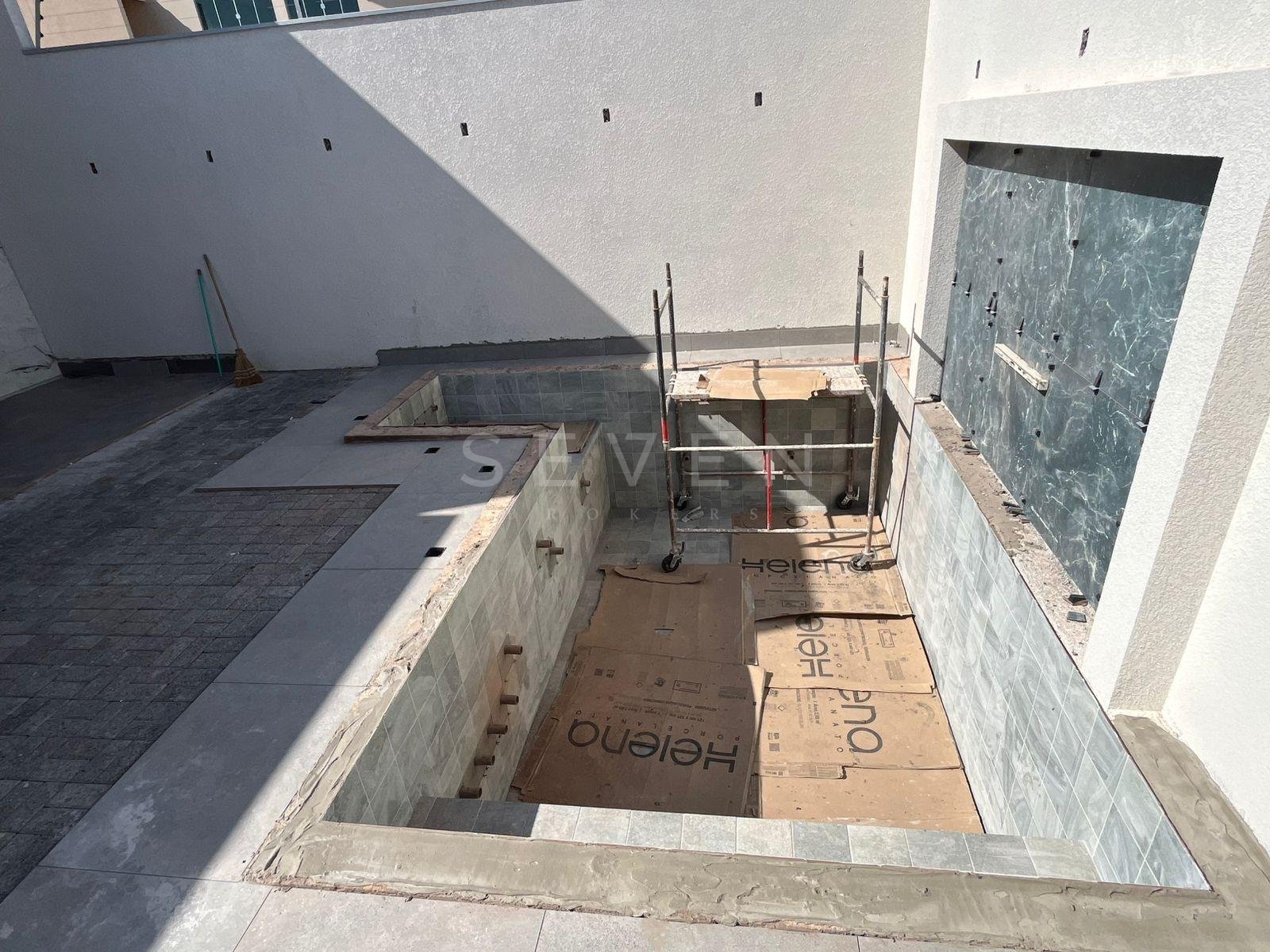 Piscina moderna com LED, cascata e 5 bicos de hidromassagem;