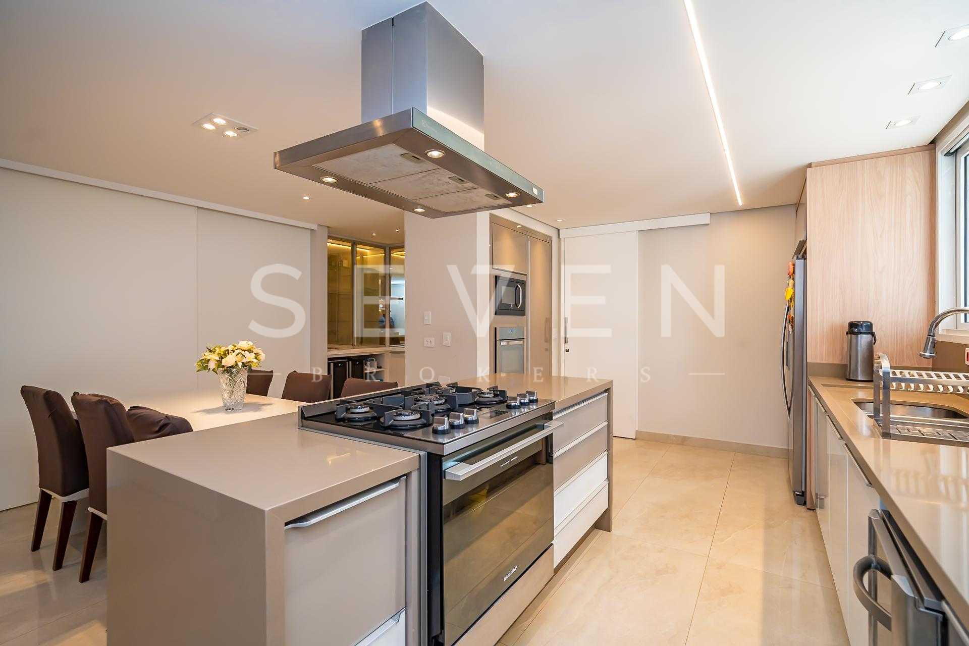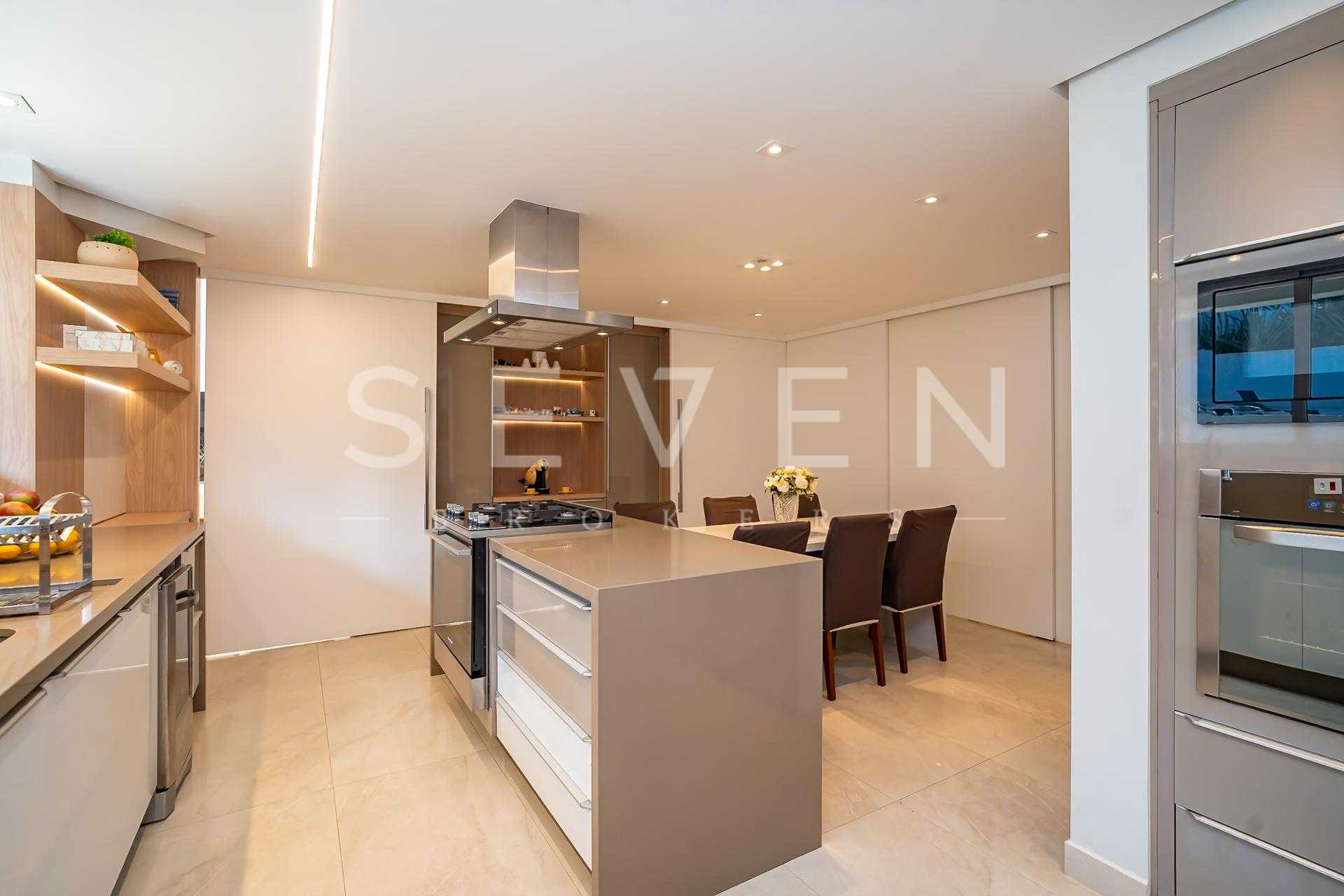 • Cozinha gourmet ampla e funcional, integrada à área externa e equipada com marcenaria sob medida