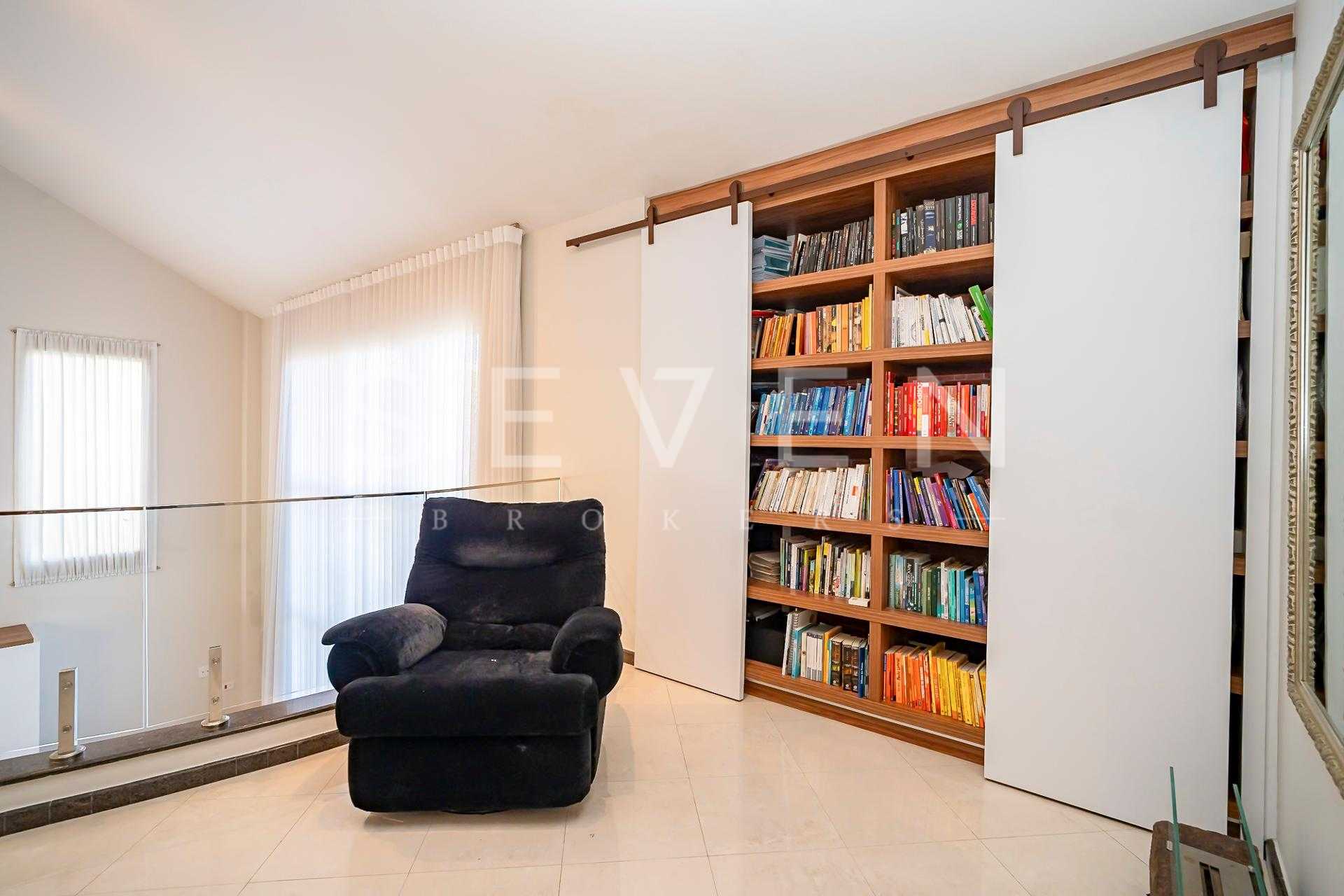 • A quarta suíte da casa está localizada no mesmo nível do mezanino e sua utilização é de um espaçoso home theater.