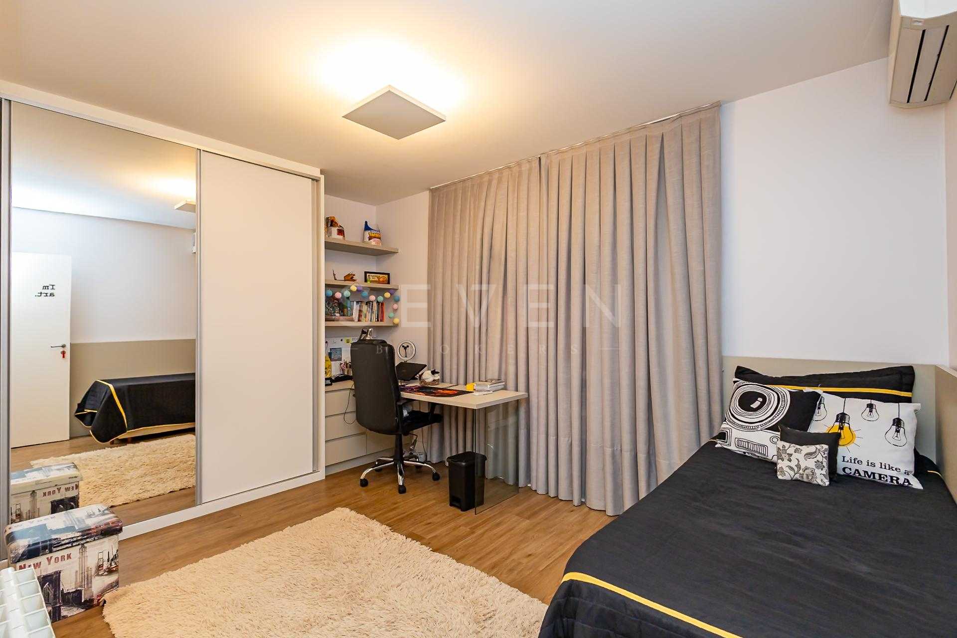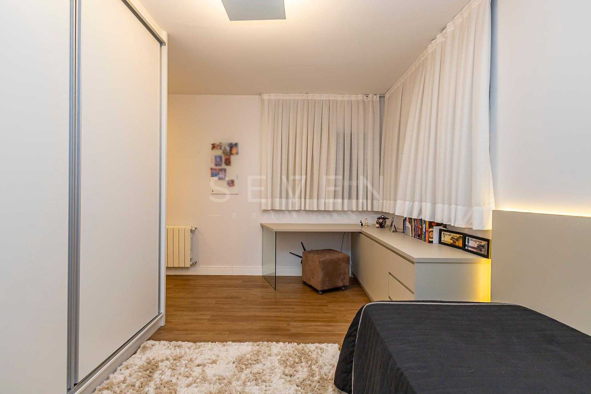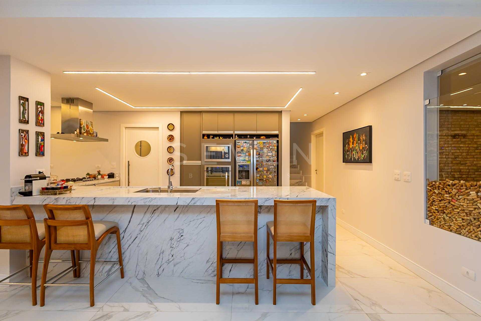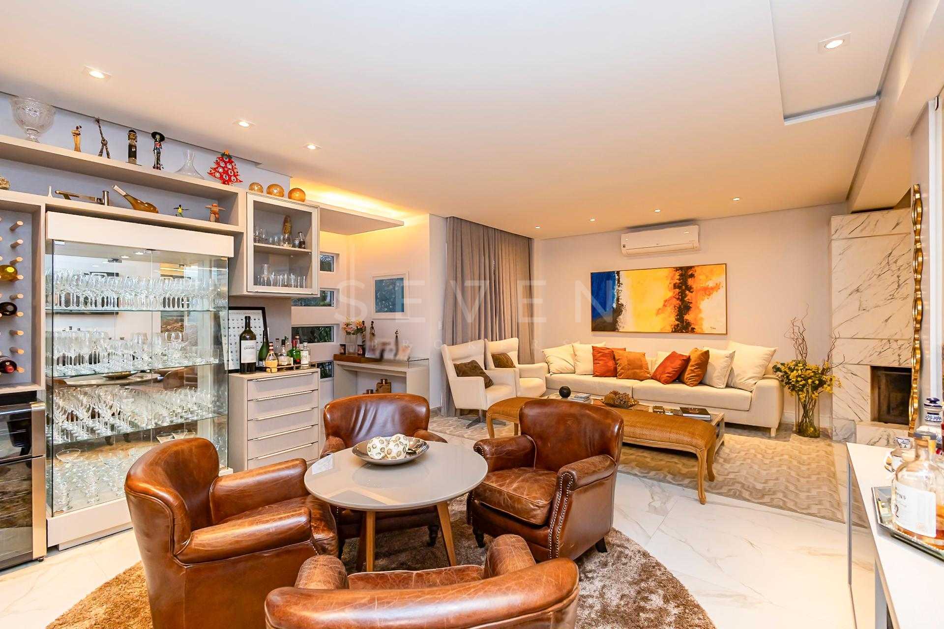 O projeto privilegia a integração dos ambientes e a praticidade do dia a dia. No térreo, destaque para a charmosa sala de estar com lareira, adega e poltronas, que se conecta à sala de jantar e à cozinha americana com móveis planejados de excelente qualidade. Ainda nesse pavimento, uma suíte ideal para hóspedes ou para quem busca acessibilidade, além de lavabo e uma excelente área gourmet com banheiro de apoio, espaço para festas e até mesmo para acomodar uma mesa de sinuca, se desejar.