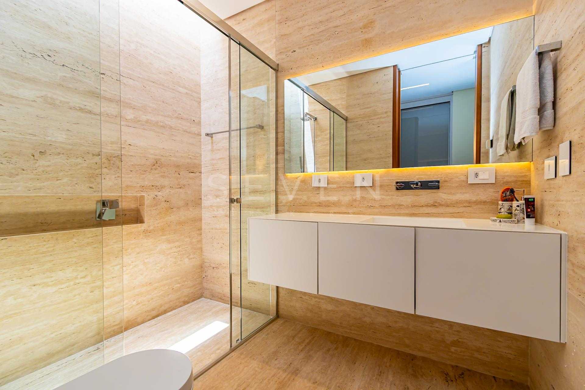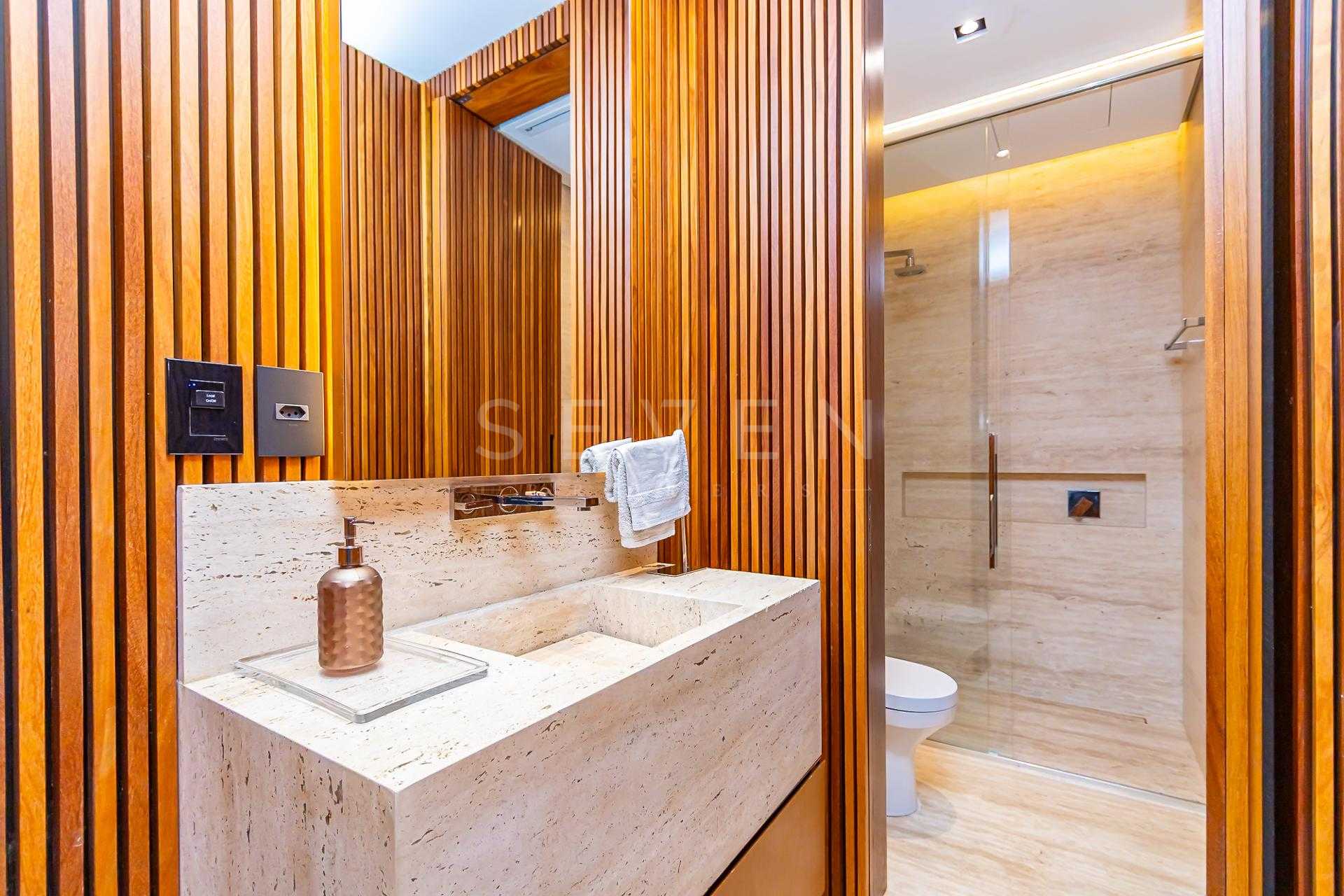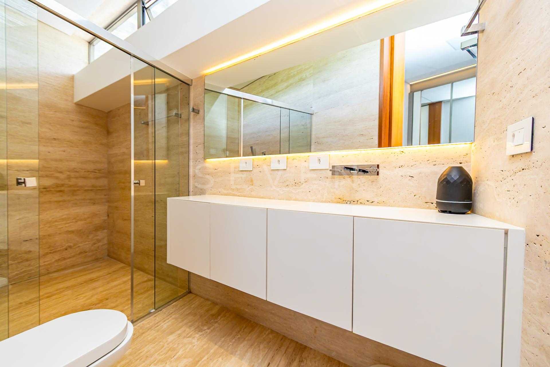 4 suítes, sendo a master com closet e banheiro Sr / Sra separados, com desembaçador nos espelhos.