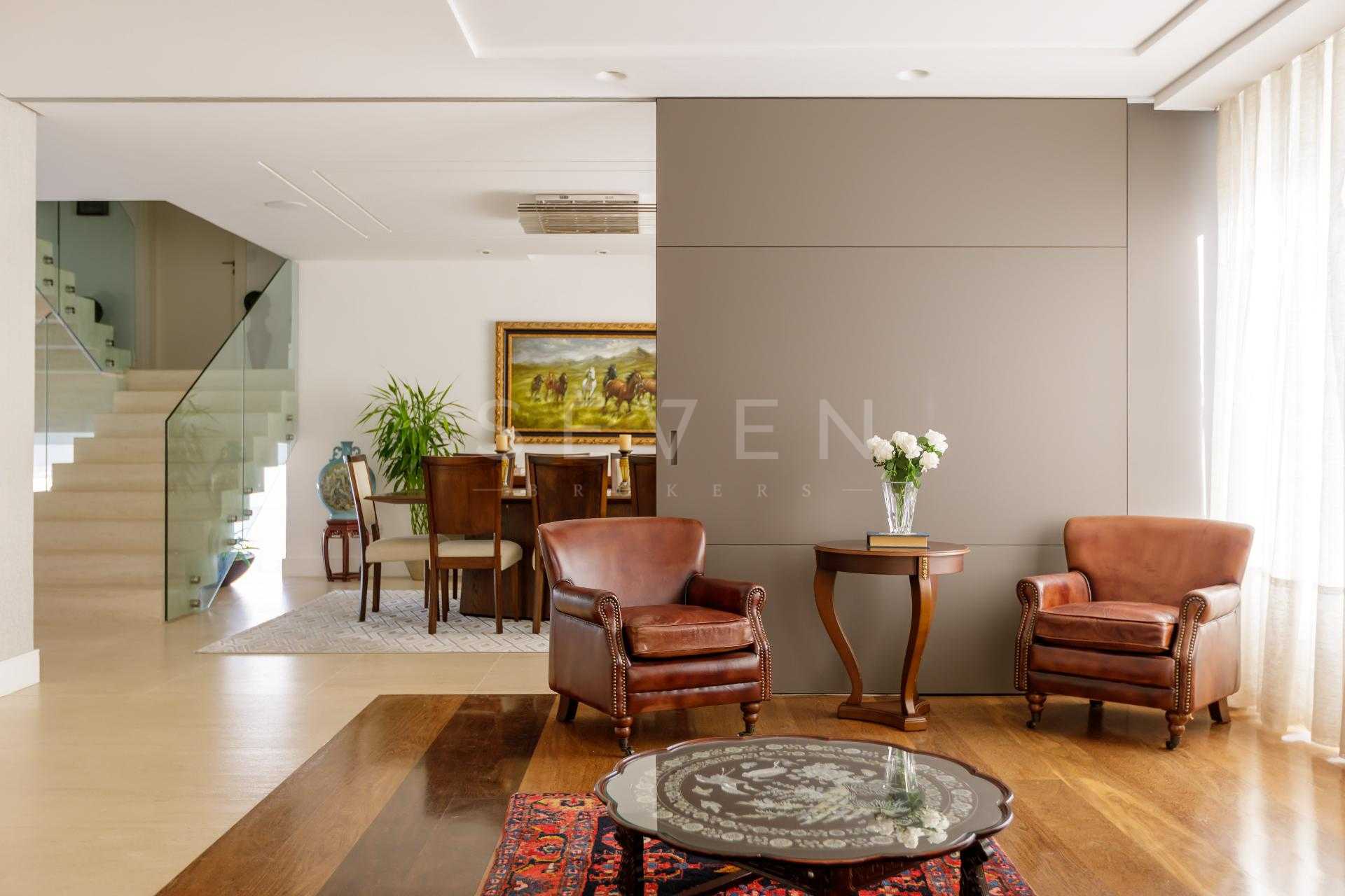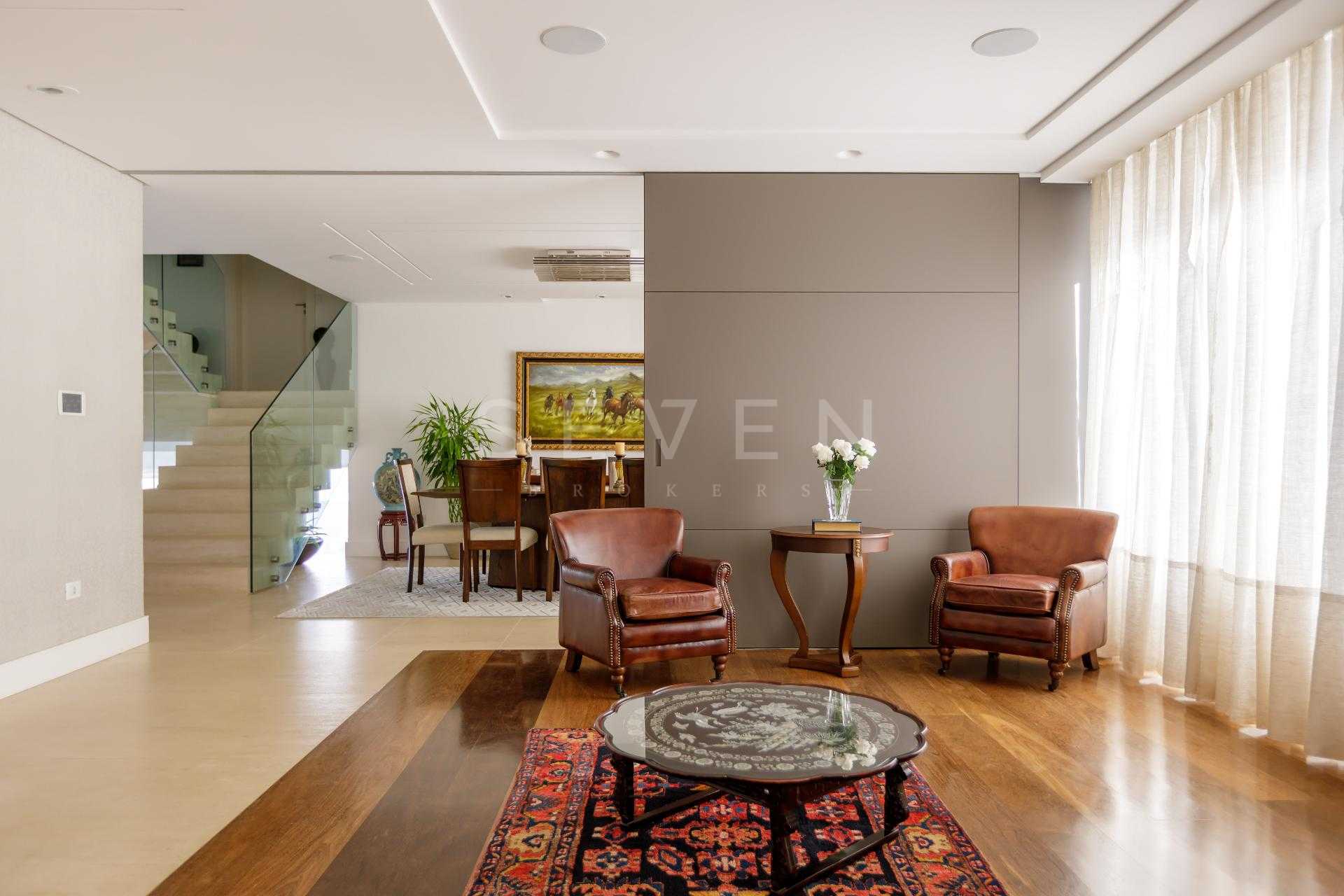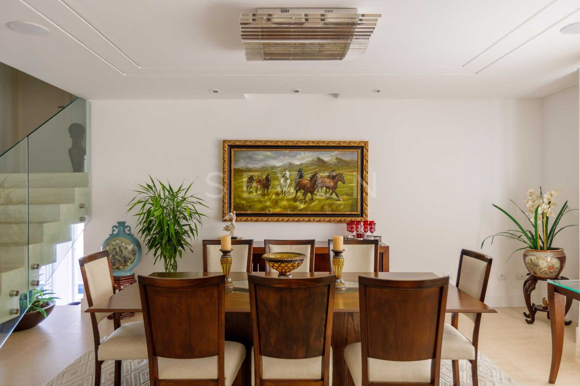 Na área íntima, são 4 suítes generosas, com destaque para a suíte máster, que impressiona pelos acabamentos e marcenaria sob medida. Ao todo, são 6 banheiros, incluindo lavabo e banheiro de serviço, todos distribuídos de forma funcional.