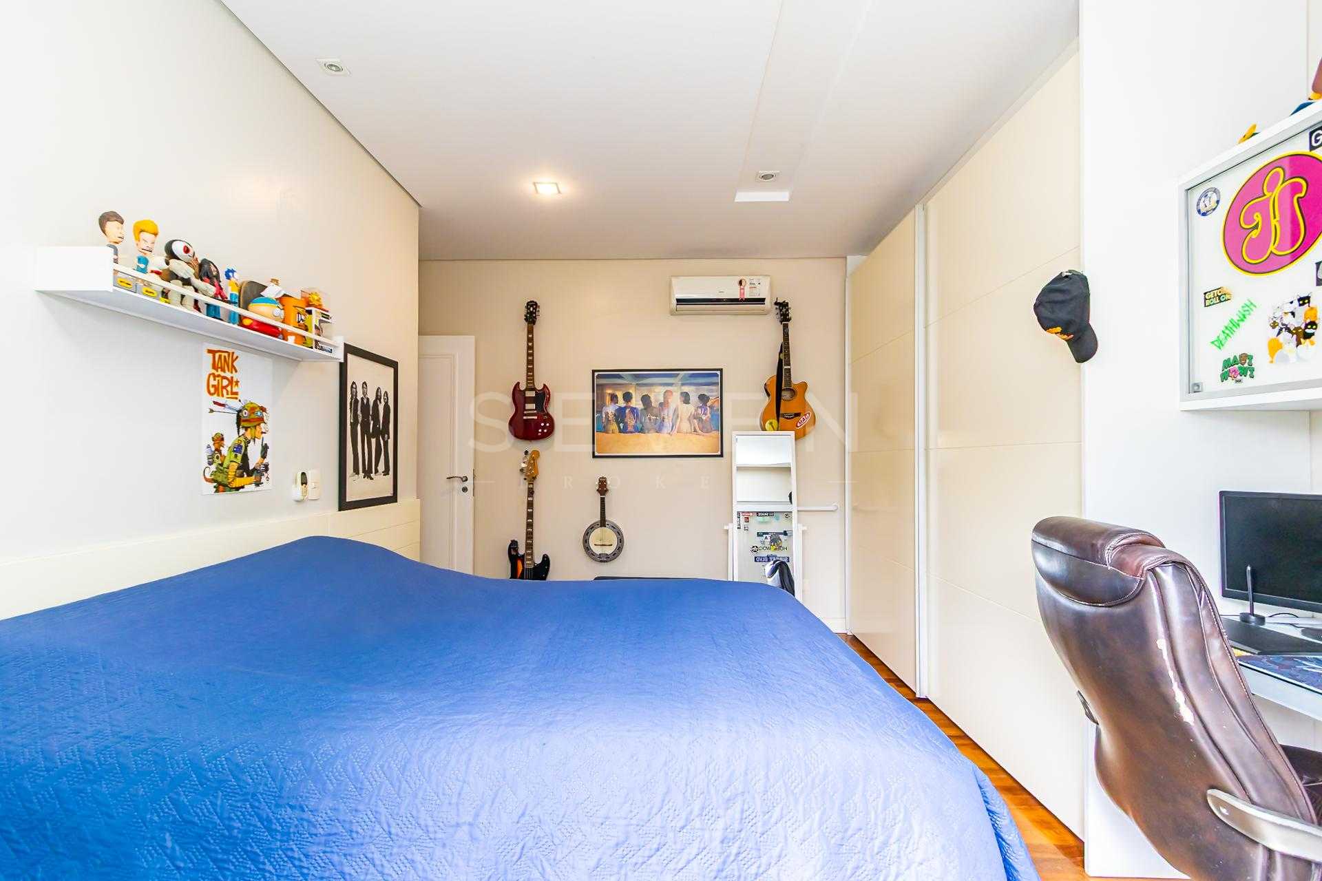 São 5 quartos, sendo 2 suítes e 3 quartos em um espaço reservado para os filhos, onde um destes