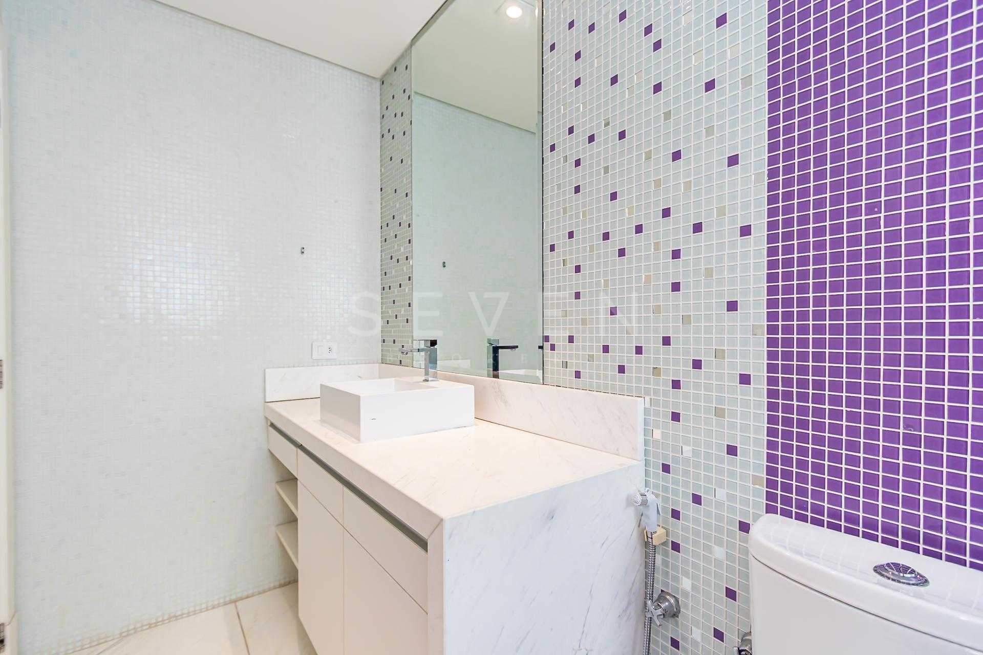 São 4 suítes generosas, todas acompanhadas por banheiros revestidos em mármore grego branco Carrara, traduzindo atemporalidade e requinte. O living social impressiona pelo pé-direito de 7 metros, lareira e integração entre estar e jantar, com acabamento nobre em mármore Crema Marfil espanhol, presente também na escada.