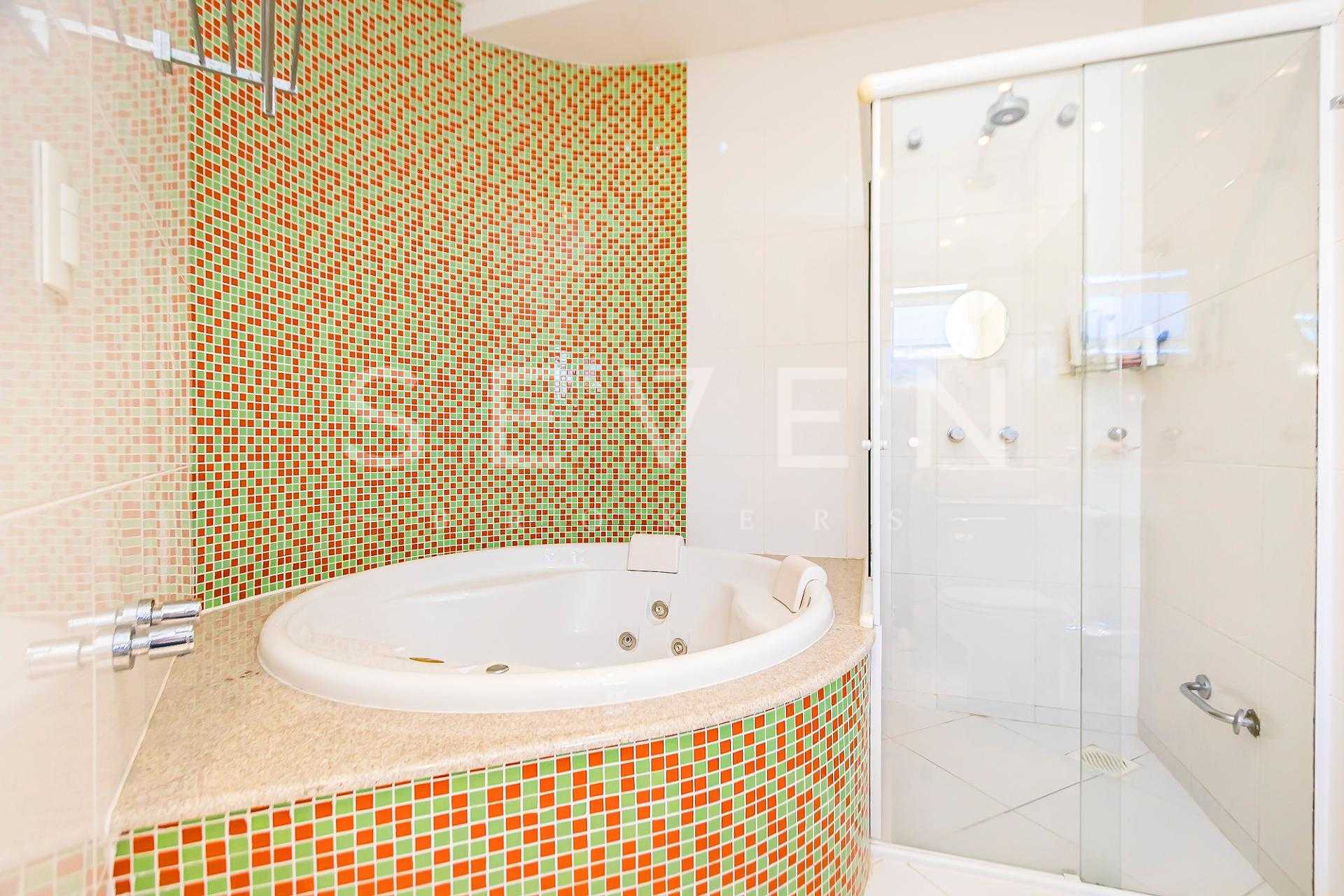 - 4 suítes mobiliadas, sendo 3 com closet e a suíte master com closet, hidromassagem e vista deslumbrante para área de preservação;