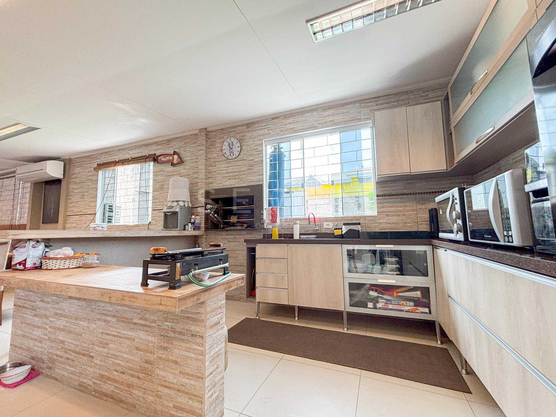 Casa à venda no Centro de Pinhais com 3 quartos, área gourmet e energia solar.