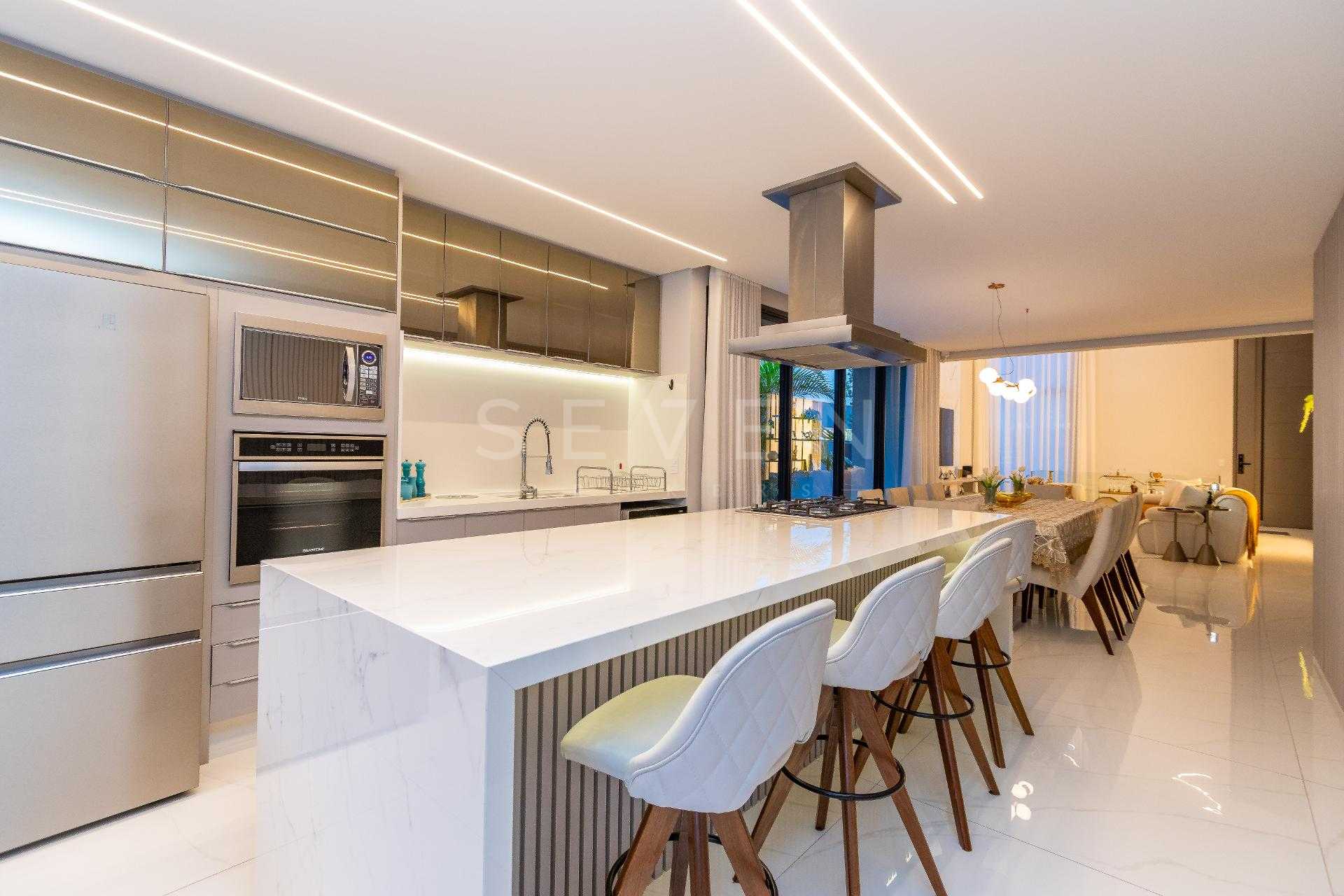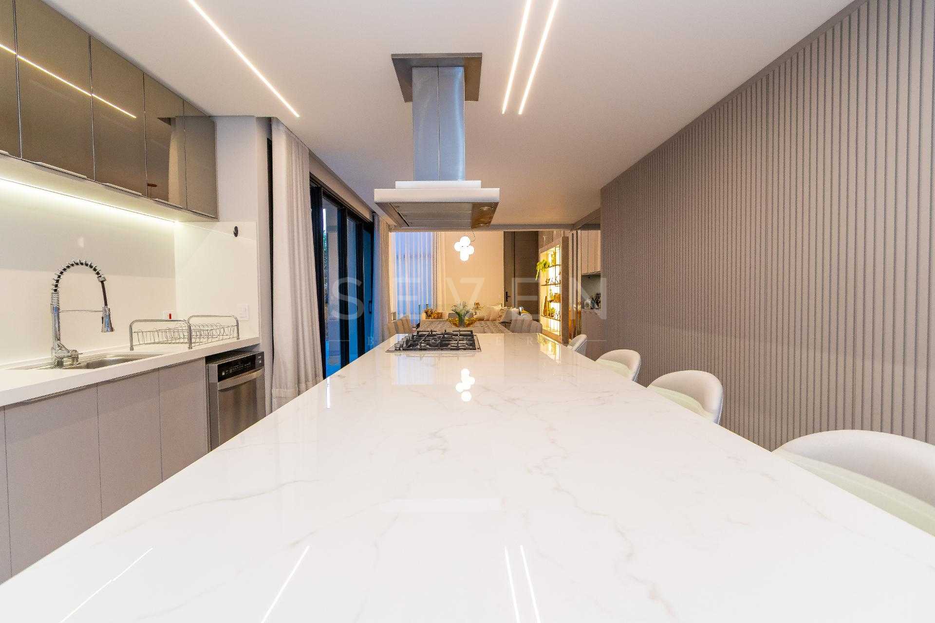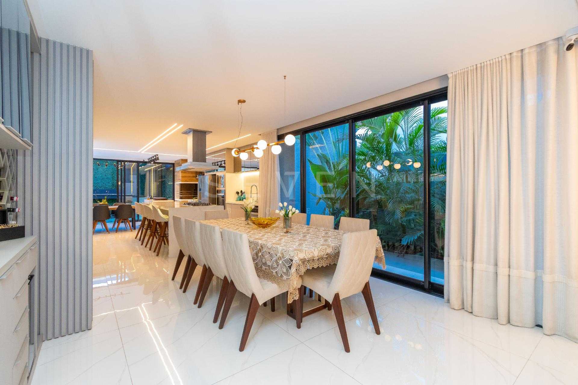 Esta residência de alto padrão no Condomínio Pineland possui 350 m² de área privativa em um terreno de 449 m² e 3 anos de construção.