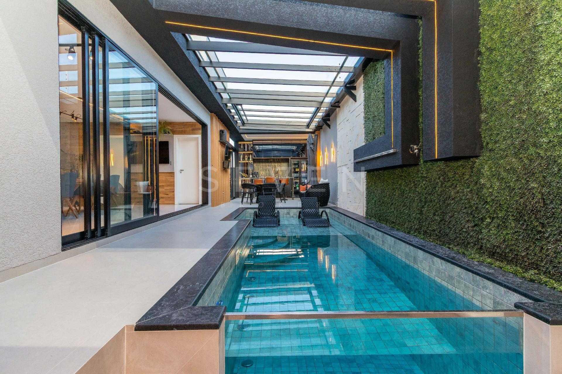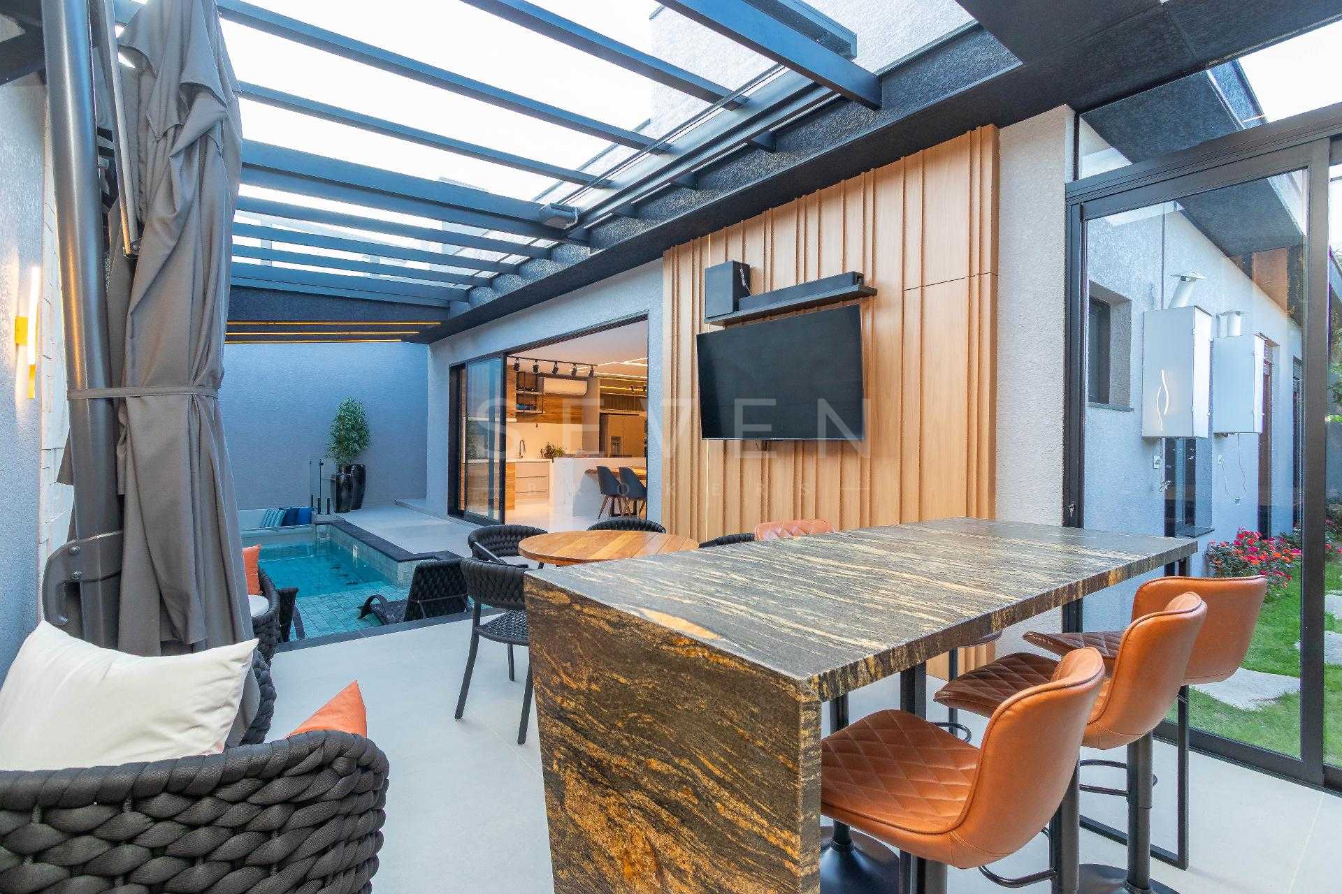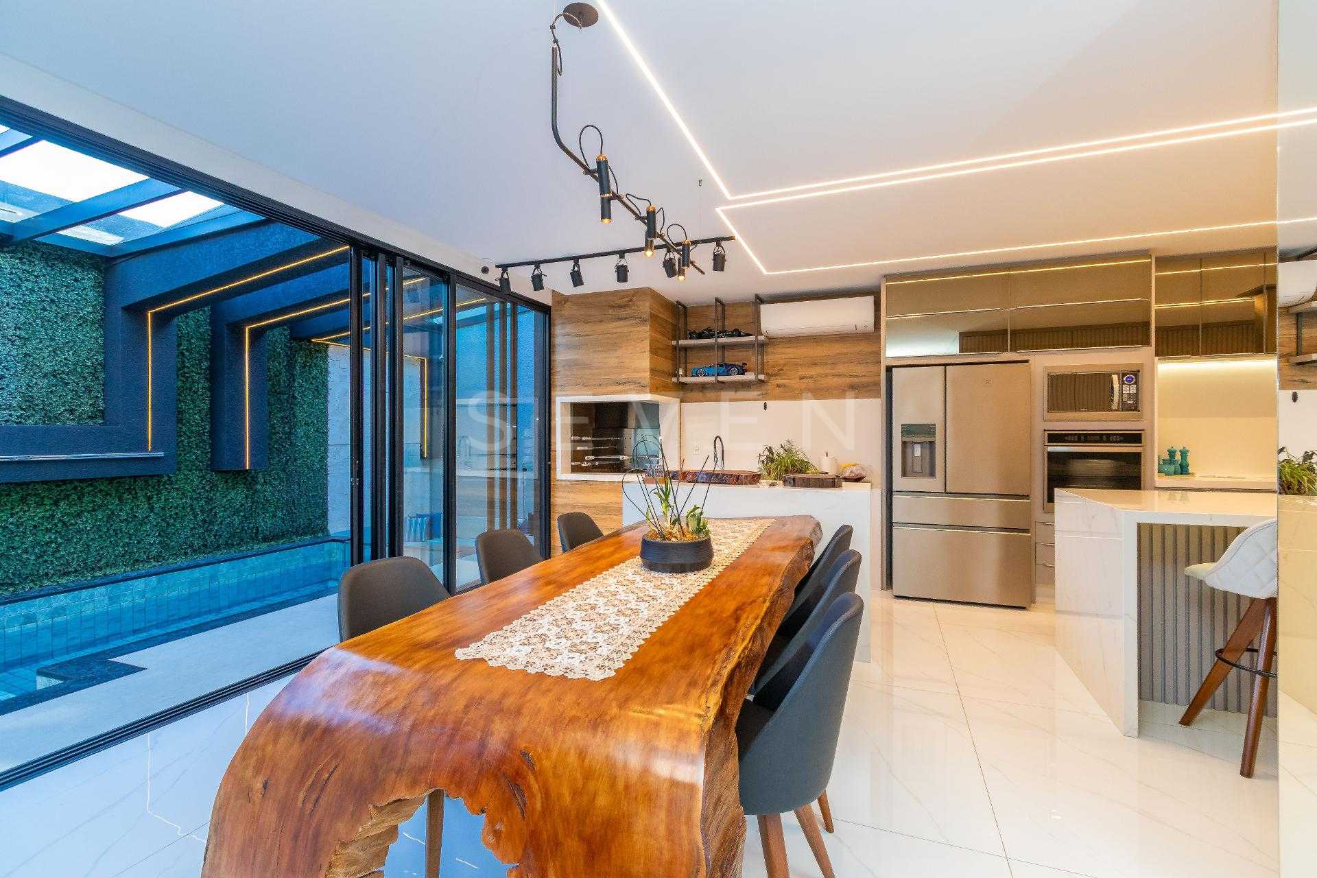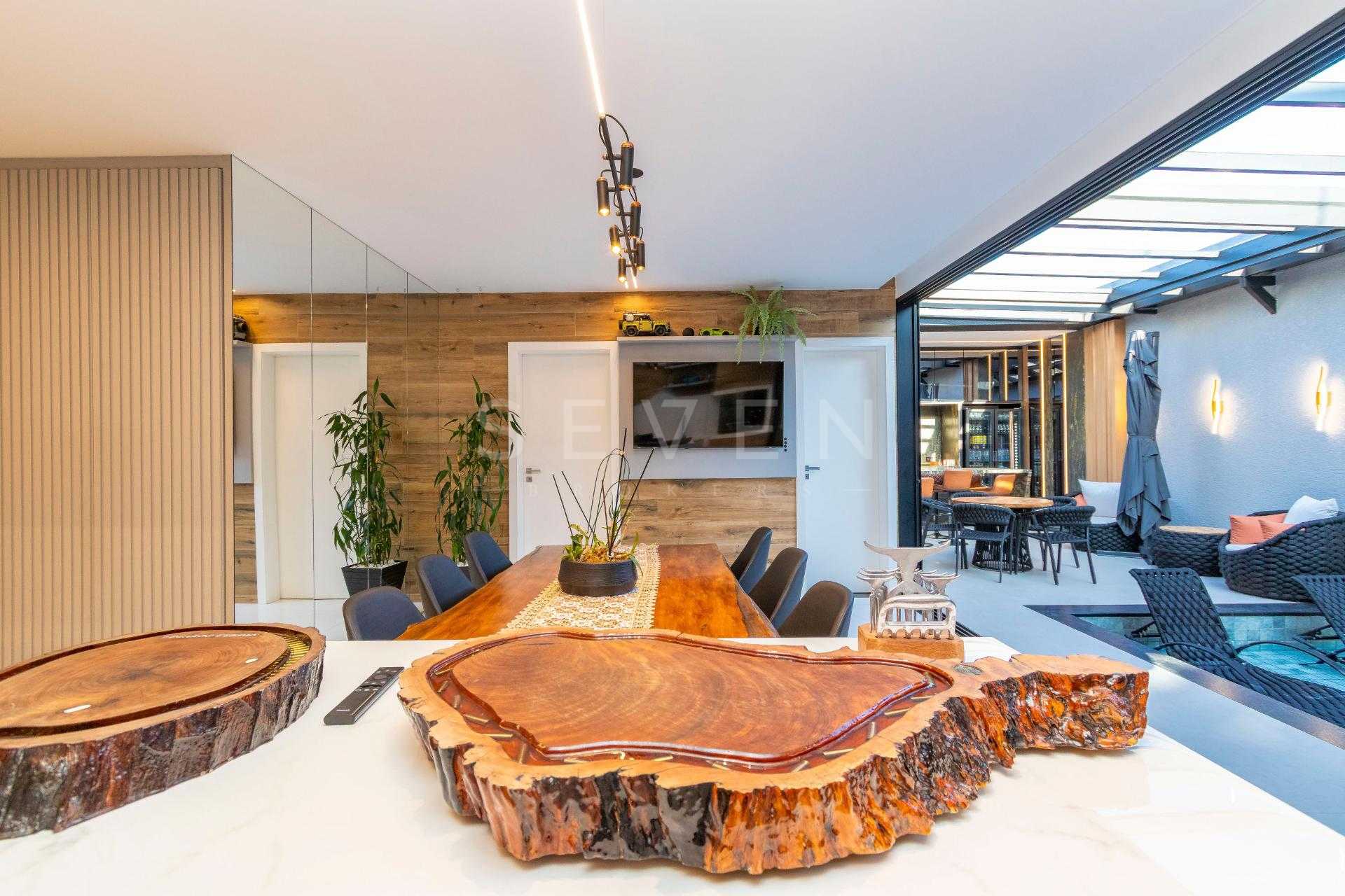 Esta residência de alto padrão no Condomínio Pineland possui 350 m² de área privativa em um terreno de 449 m² e 3 anos de construção.