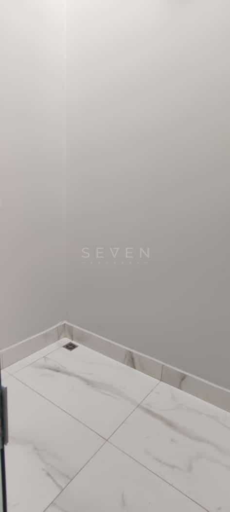 Banheiro social bem acabado;