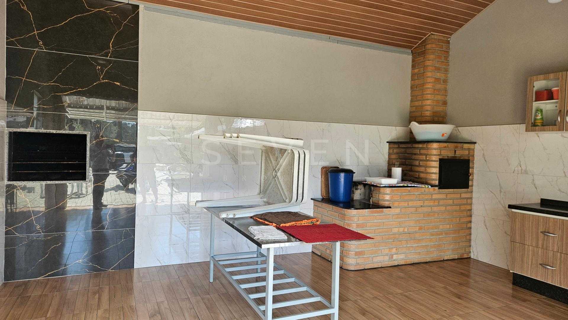 Cozinha caipira equipada com churrasqueira, fogão a lenha e forno