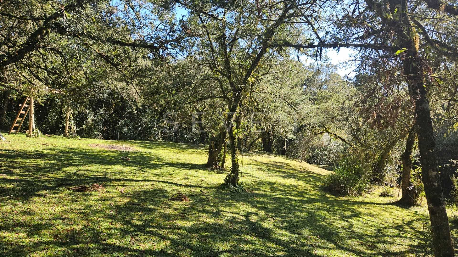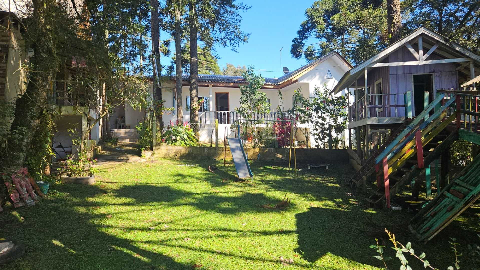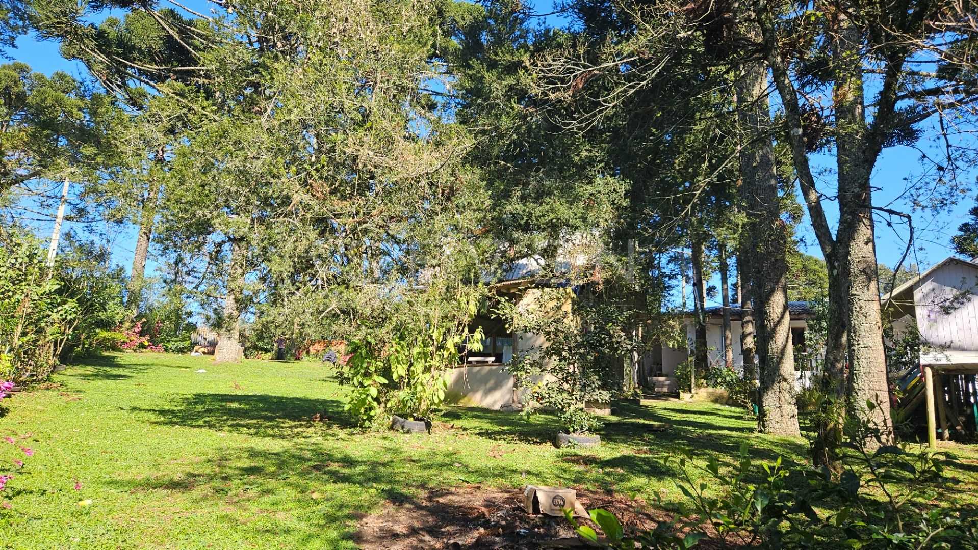 Natureza abundante: várias araucárias em plena produção e árvores frutíferas, como mexerica, limão e pitanga