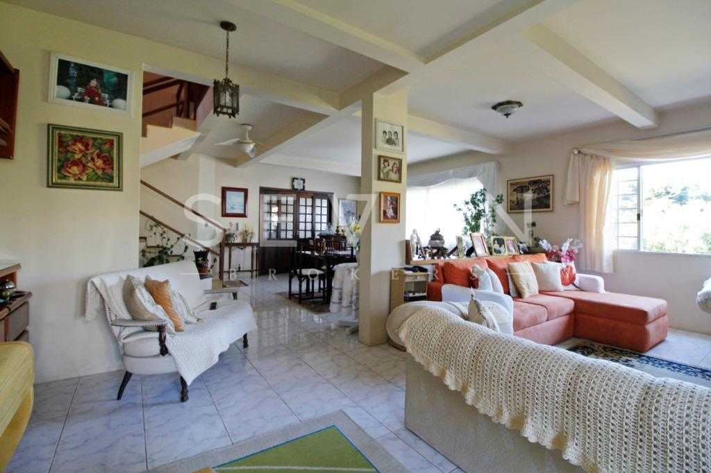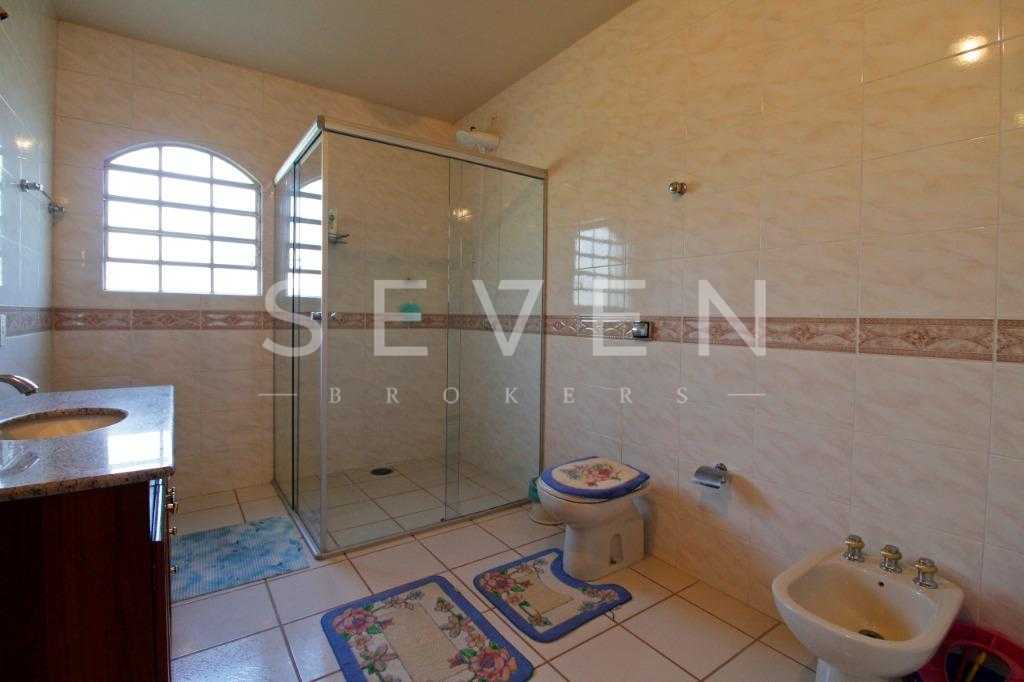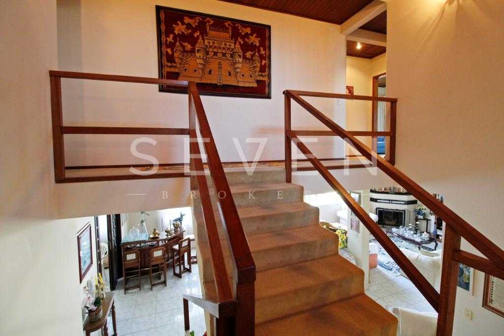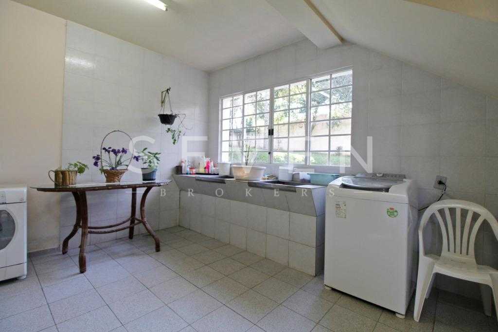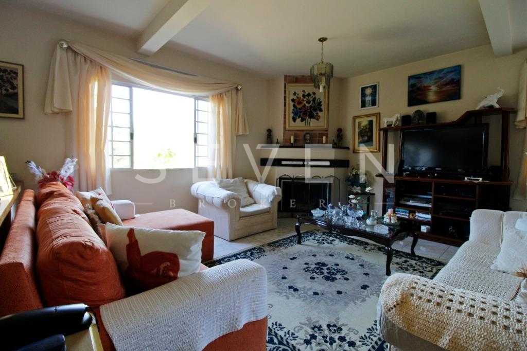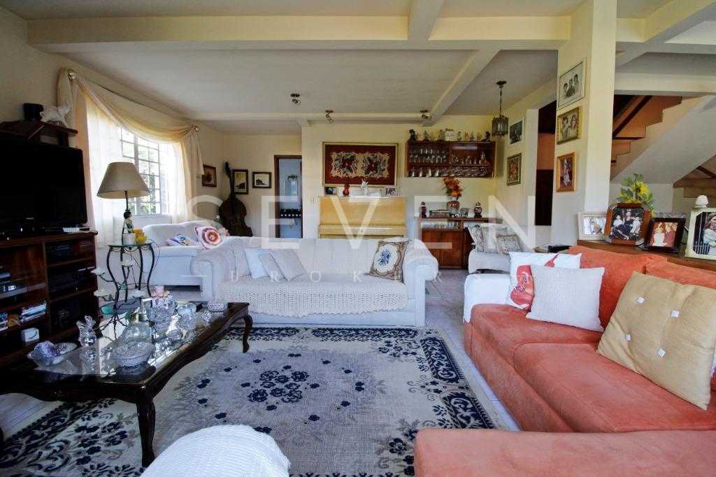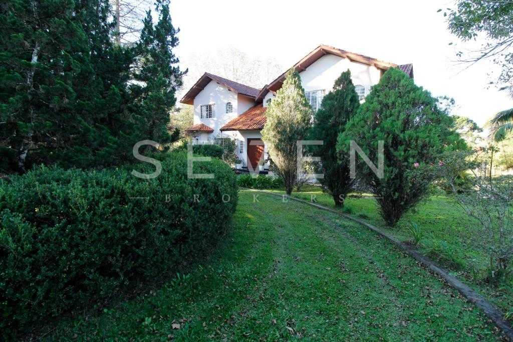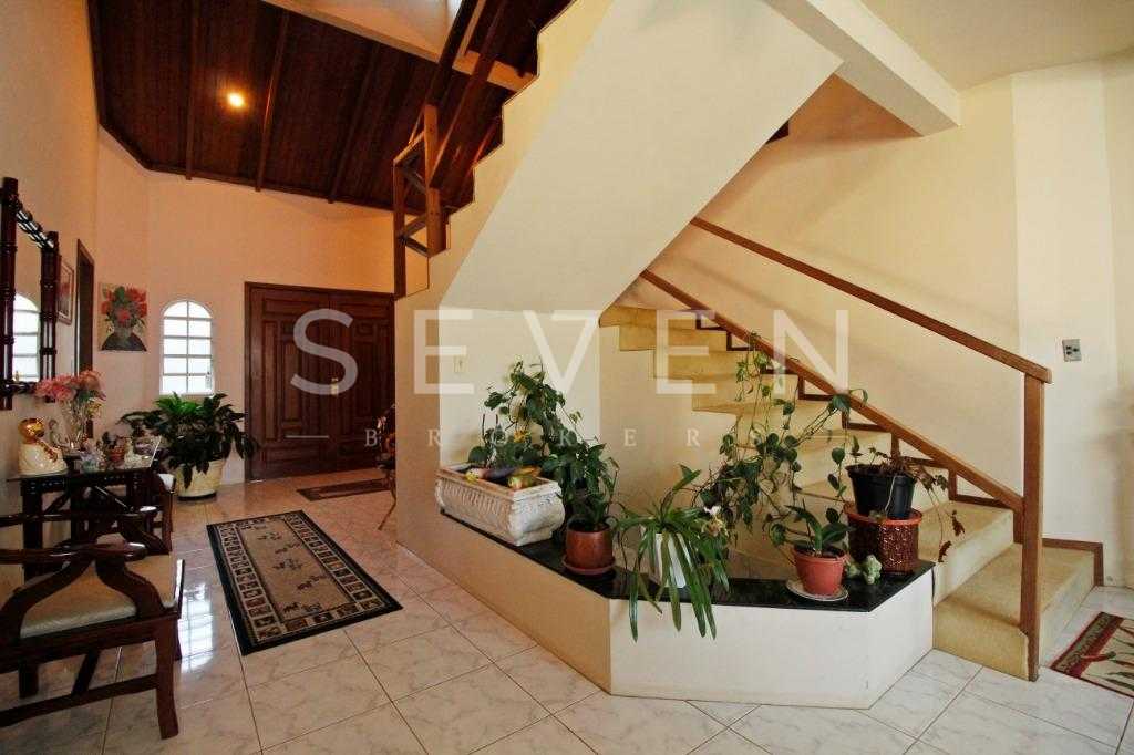 A casa tem aproximadamente 400 m2 e a construção tem 15 anos, sendo distribuída conforme segue.Piso térreo:- 1 Sala de jantar- 1 Sala de estar com lareira em granito- 1 sala de música- Hall de entrada- Escritório- Copa- Cozinha com armários embutidos- Despensa com armários- Lavabo com pia de granitoPiso superior:- 1 Suíte master com closet com armários embutidos,banheiro com box blindex,gabinete e banheira de hidromassagem - 1 Suíte com banheiro com box blindex e gabinete - 2 Quartos com closet com armários embutidos- Corredor com armário embutido- Banheiro social com gabinete e box blindexPiso inferior:- Lavanderia com aquecimento central a gás - Garagem- Quarto de emprega- Banheiro de empregadaTerreno:- 6000m2 todo murado, com portão de entrada eletrônico e interfone- Campo de futebol com iluminação- Mini quadra de basquete- Piscina 11X 4 X 1,5m , com iluminação interna e externaCanil- Bosque com árvores frutíferas e nativas de aprox.2000m2- Belo jardim frontal de aprox.1000m2- Poço com eletrificação para a casa- Porão para utensílios de jardim