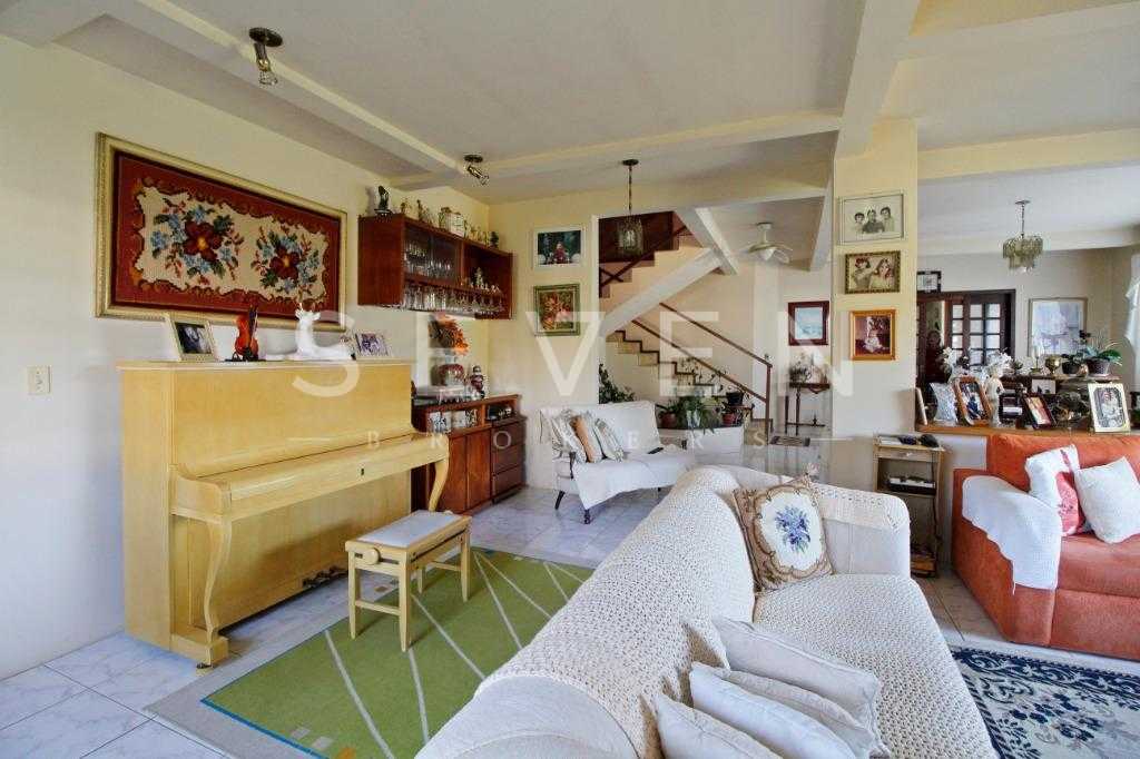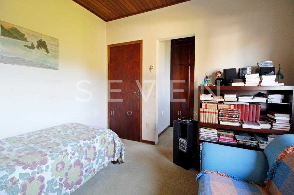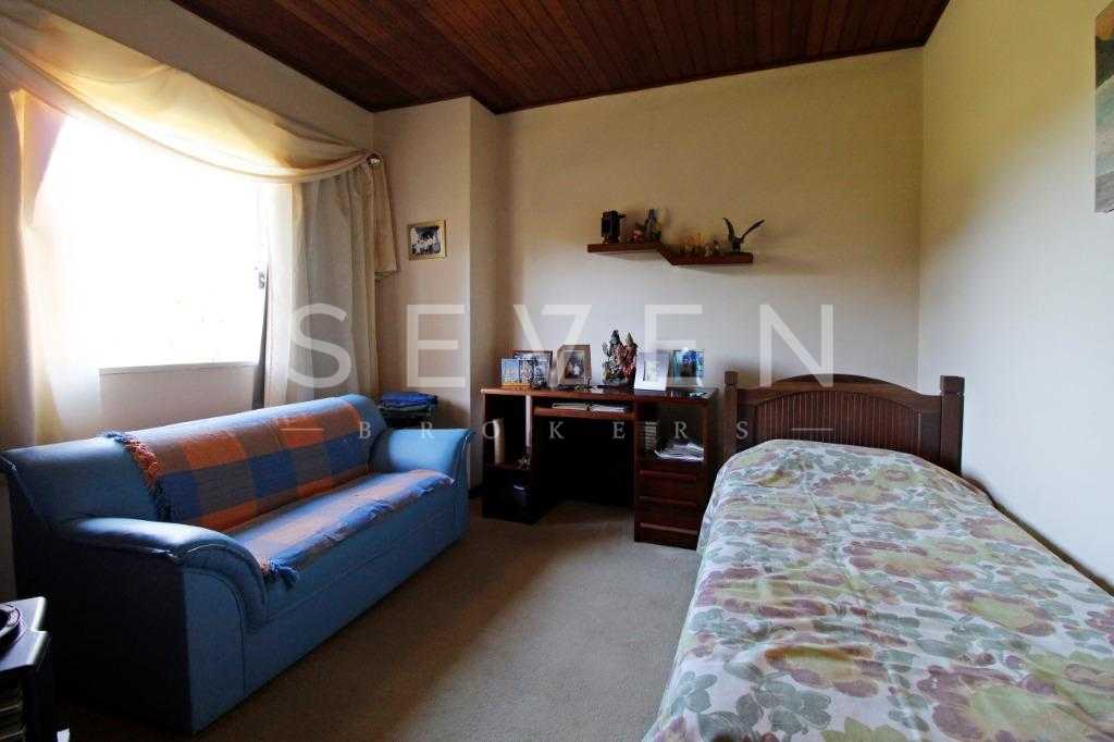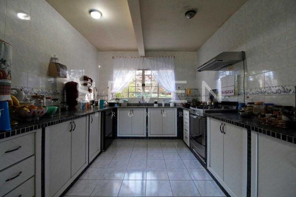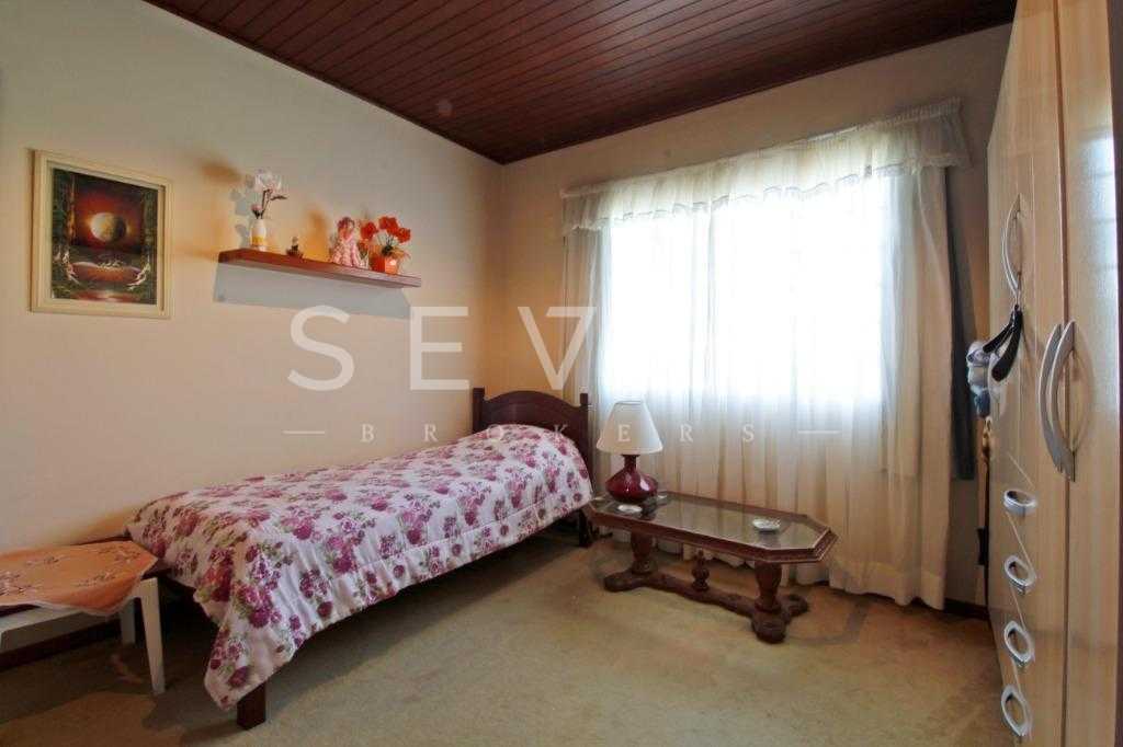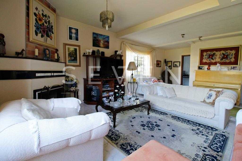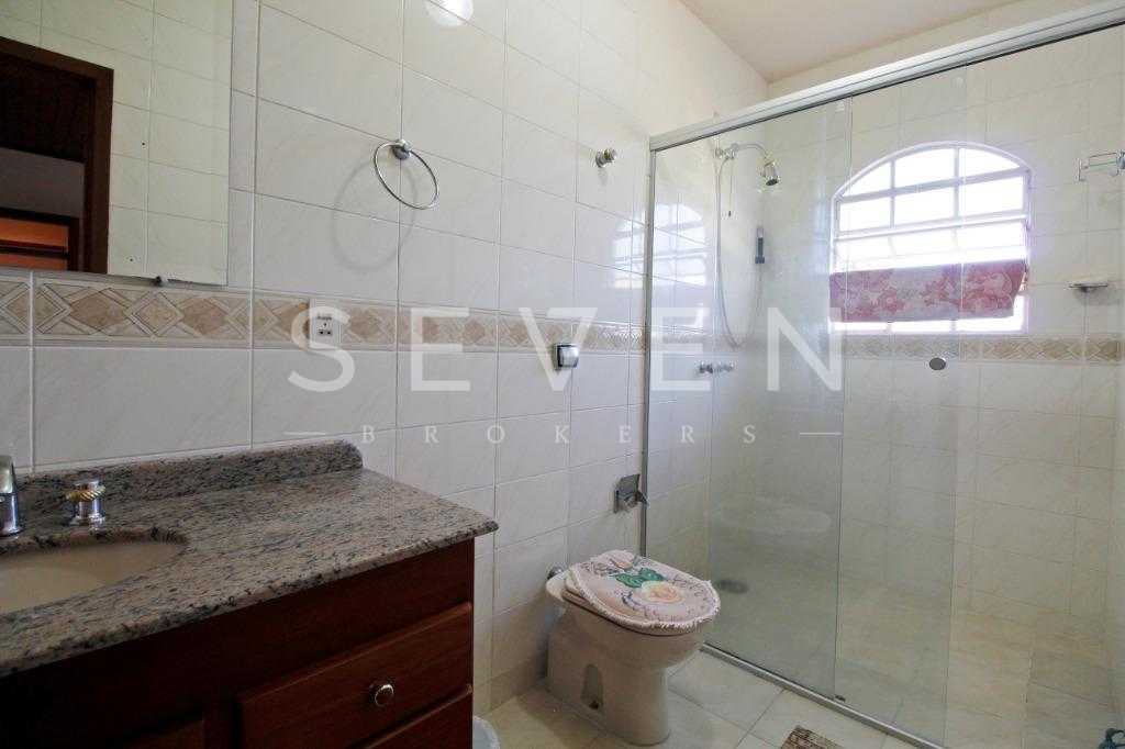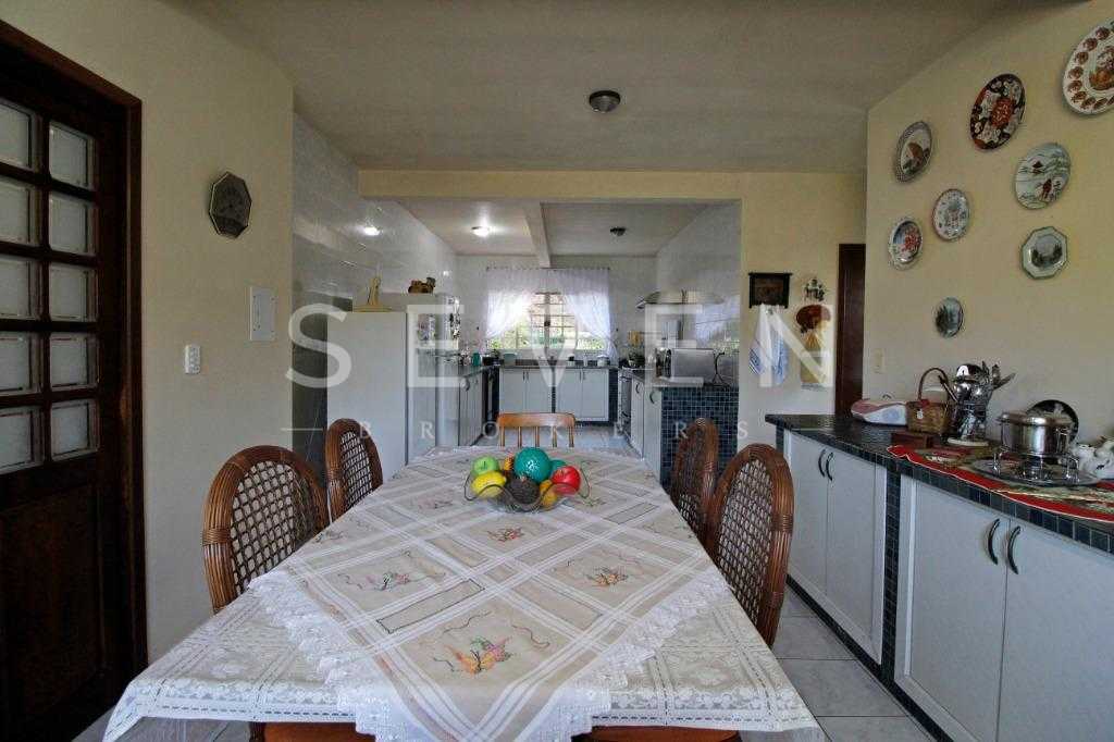 A casa tem aproximadamente 400 m2 e a construção tem 15 anos, sendo distribuída conforme segue.Piso térreo:- 1 Sala de jantar- 1 Sala de estar com lareira em granito- 1 sala de música- Hall de entrada- Escritório- Copa- Cozinha com armários embutidos- Despensa com armários- Lavabo com pia de granitoPiso superior:- 1 Suíte master com closet com armários embutidos,banheiro com box blindex,gabinete e banheira de hidromassagem - 1 Suíte com banheiro com box blindex e gabinete - 2 Quartos com closet com armários embutidos- Corredor com armário embutido- Banheiro social com gabinete e box blindexPiso inferior:- Lavanderia com aquecimento central a gás - Garagem- Quarto de emprega- Banheiro de empregadaTerreno:- 6000m2 todo murado, com portão de entrada eletrônico e interfone- Campo de futebol com iluminação- Mini quadra de basquete- Piscina 11X 4 X 1,5m , com iluminação interna e externaCanil- Bosque com árvores frutíferas e nativas de aprox.2000m2- Belo jardim frontal de aprox.1000m2- Poço com eletrificação para a casa- Porão para utensílios de jardim