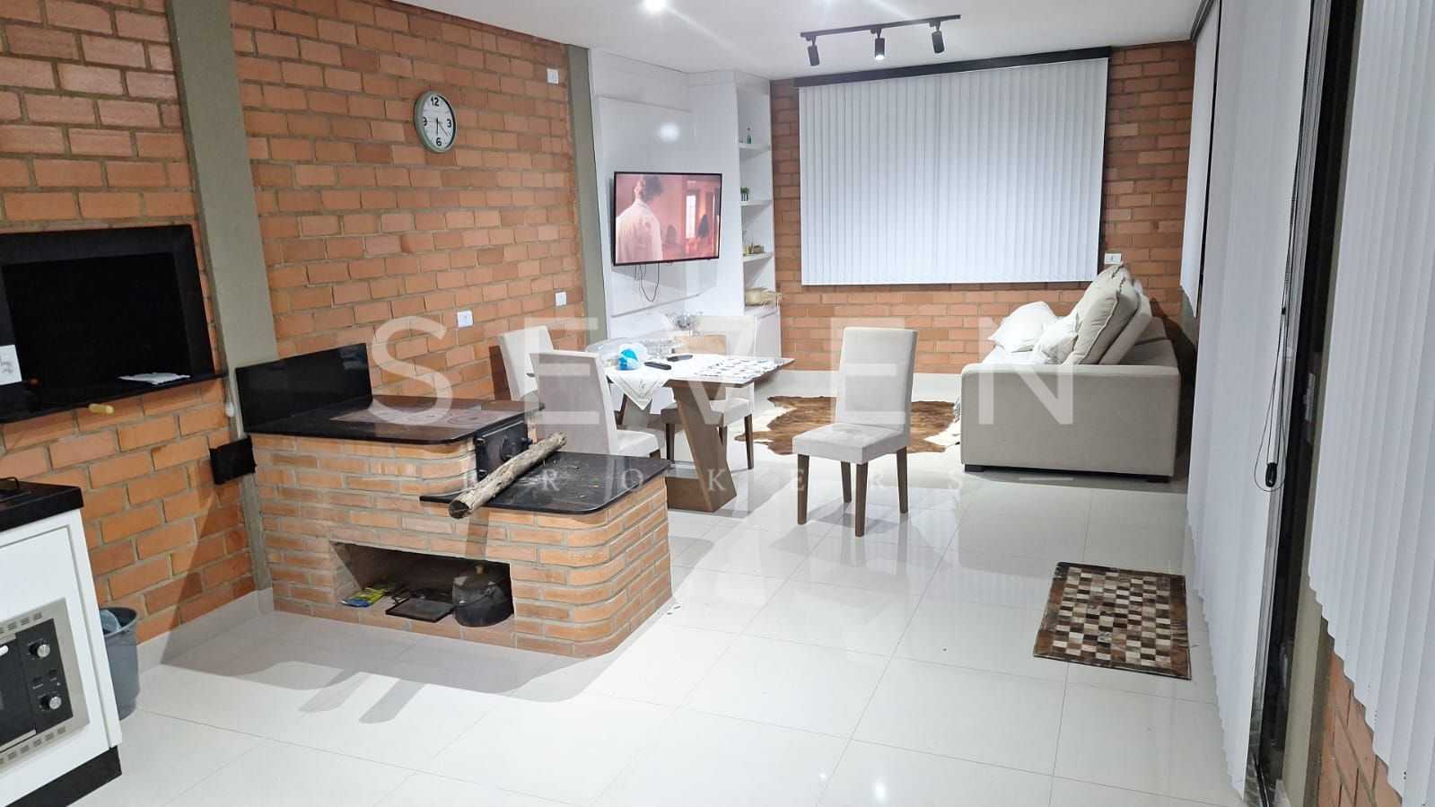 A área construída é de aproximadamente 600 m², ideal para moradia, com sala e cozinha integradas em conceito aberto, cozinha planejada com fogão a lenha e banheiro social no piso térreo. No piso superior, acessível por uma escada em mármore, encontram-se 03 quartos espaçosos, sendo 01 suíte.