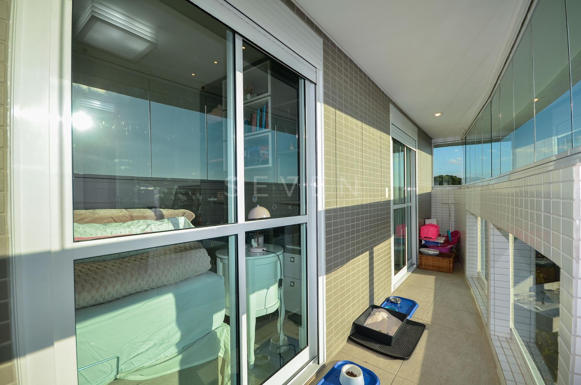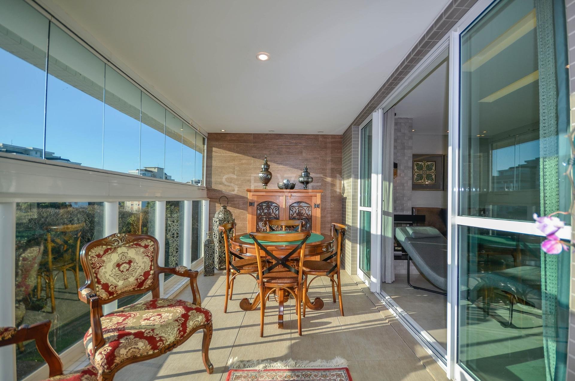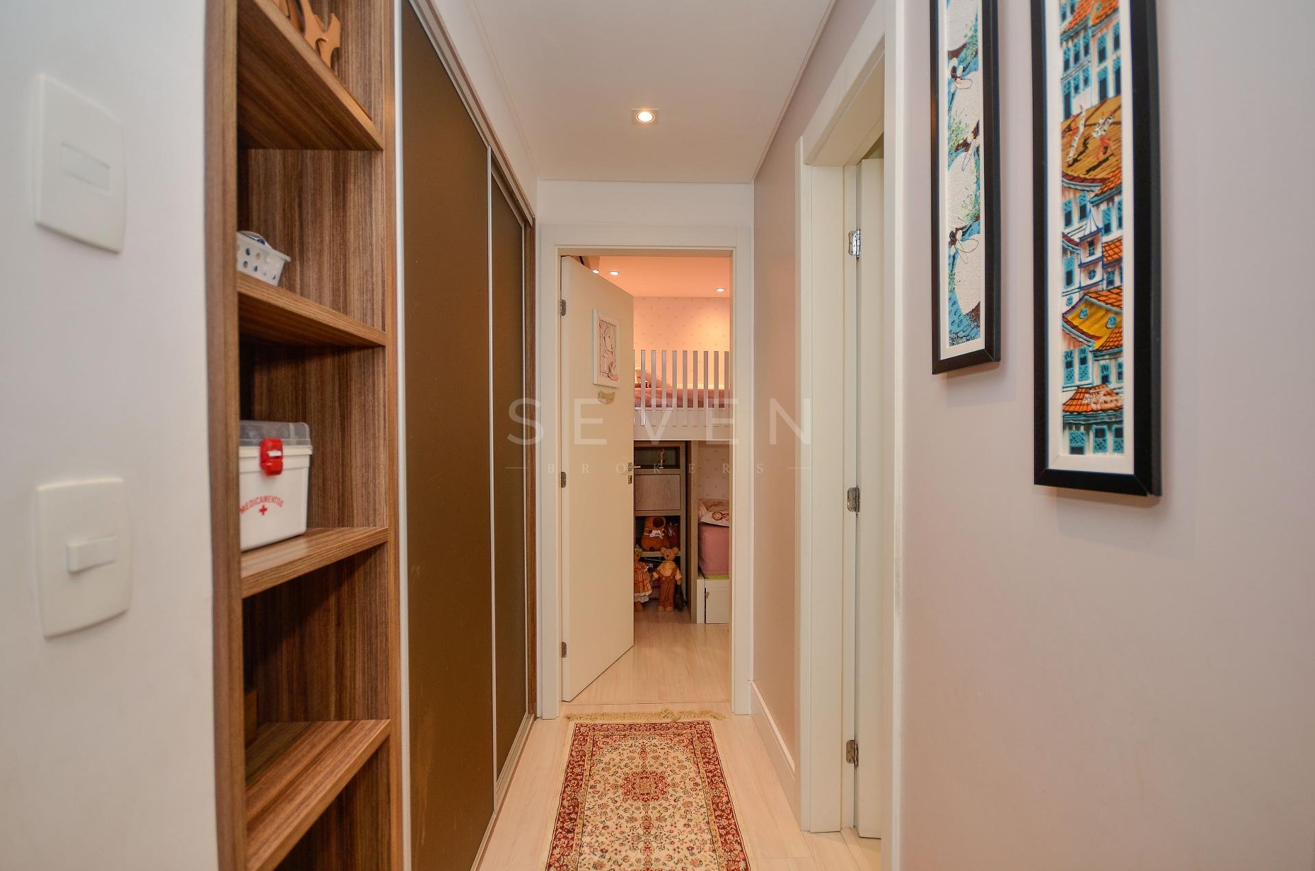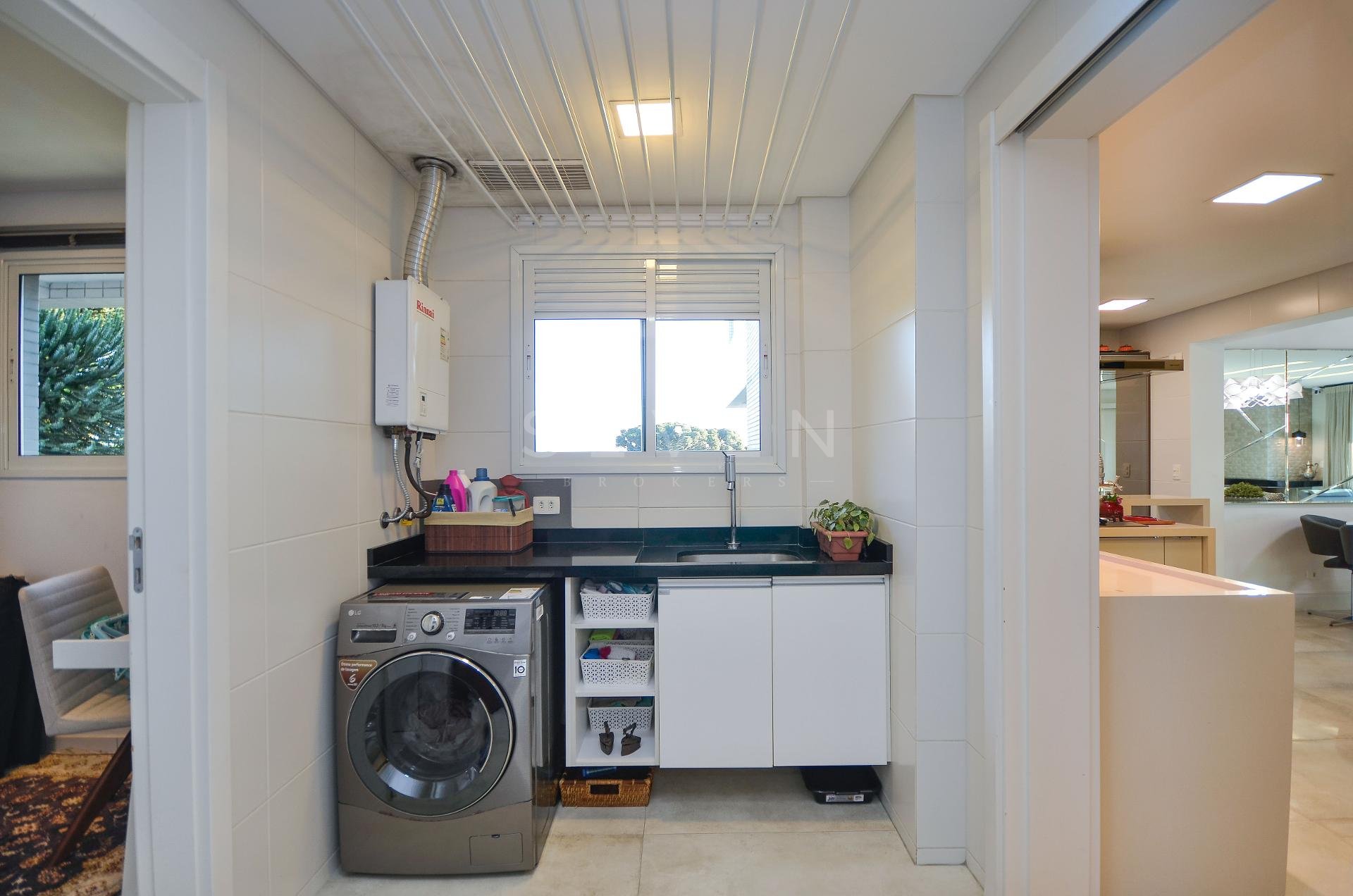 Sala de estar e jantar, lavabo, 3 quartos, sendo 1 suíte, guarda roupa com prateleiras de led, banheiro social, cozinha planejada, fogão à gás, churrasqueira, fica microondas e forno elétrico da Cata, área de serviço, escritório com banheiro, ar condicionado inverter em todos os quartos, fica cortinas, lustres e luminárias, todo o piso em porcelanato.