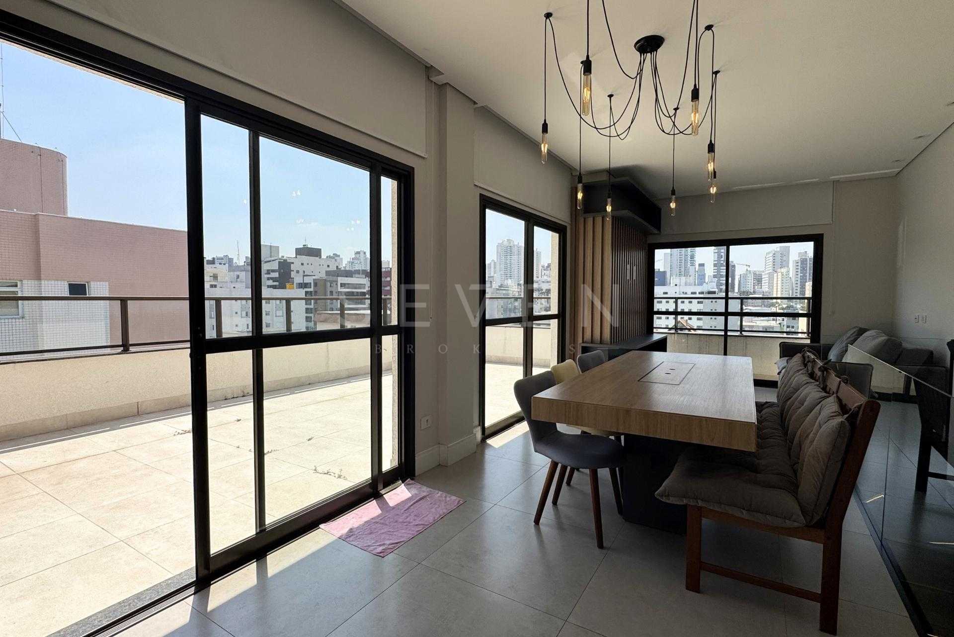 A cobertura é semimobiliada, com armários planejados em diversos ambientes, o que agrega praticidade e otimiza os espaços. O imóvel também conta com vagas de garagem e está localizado em região com fácil acesso a serviços, comércios e vias importantes da cidade.