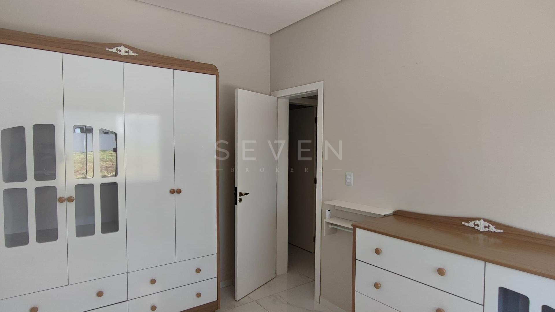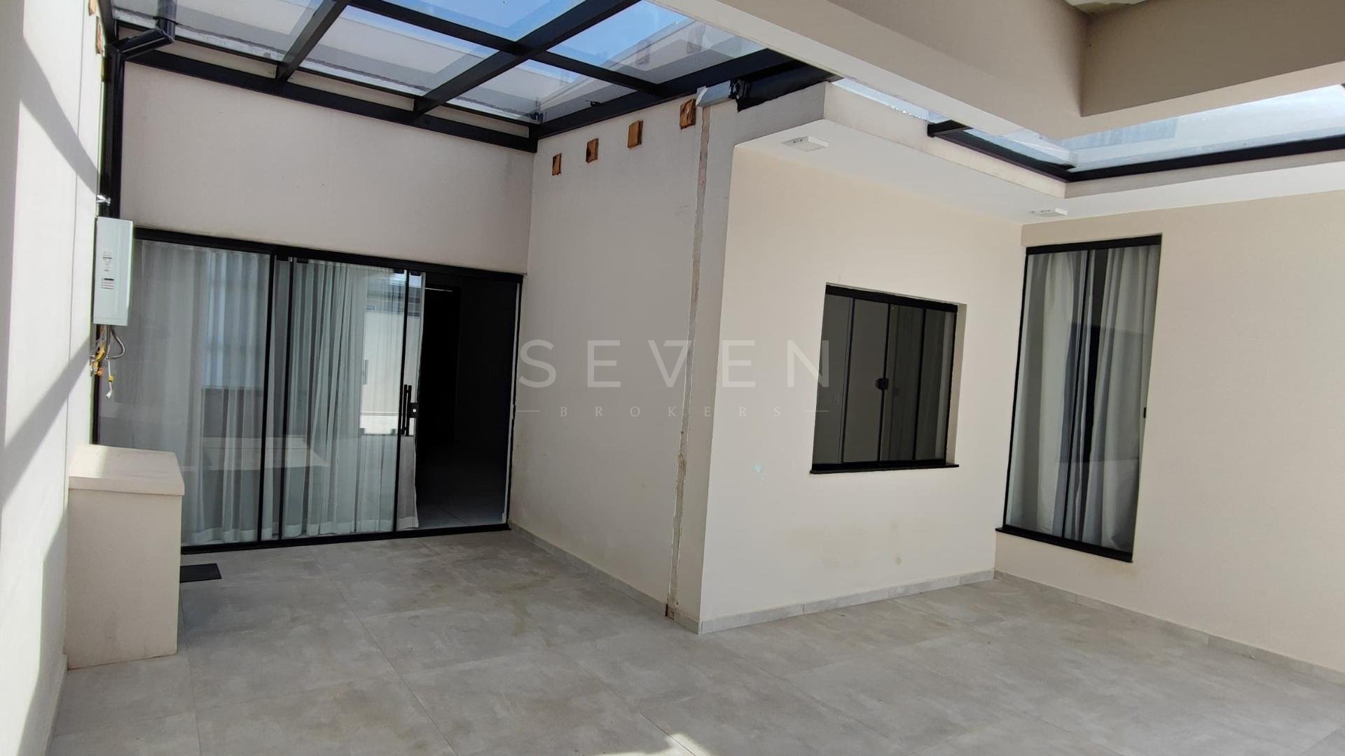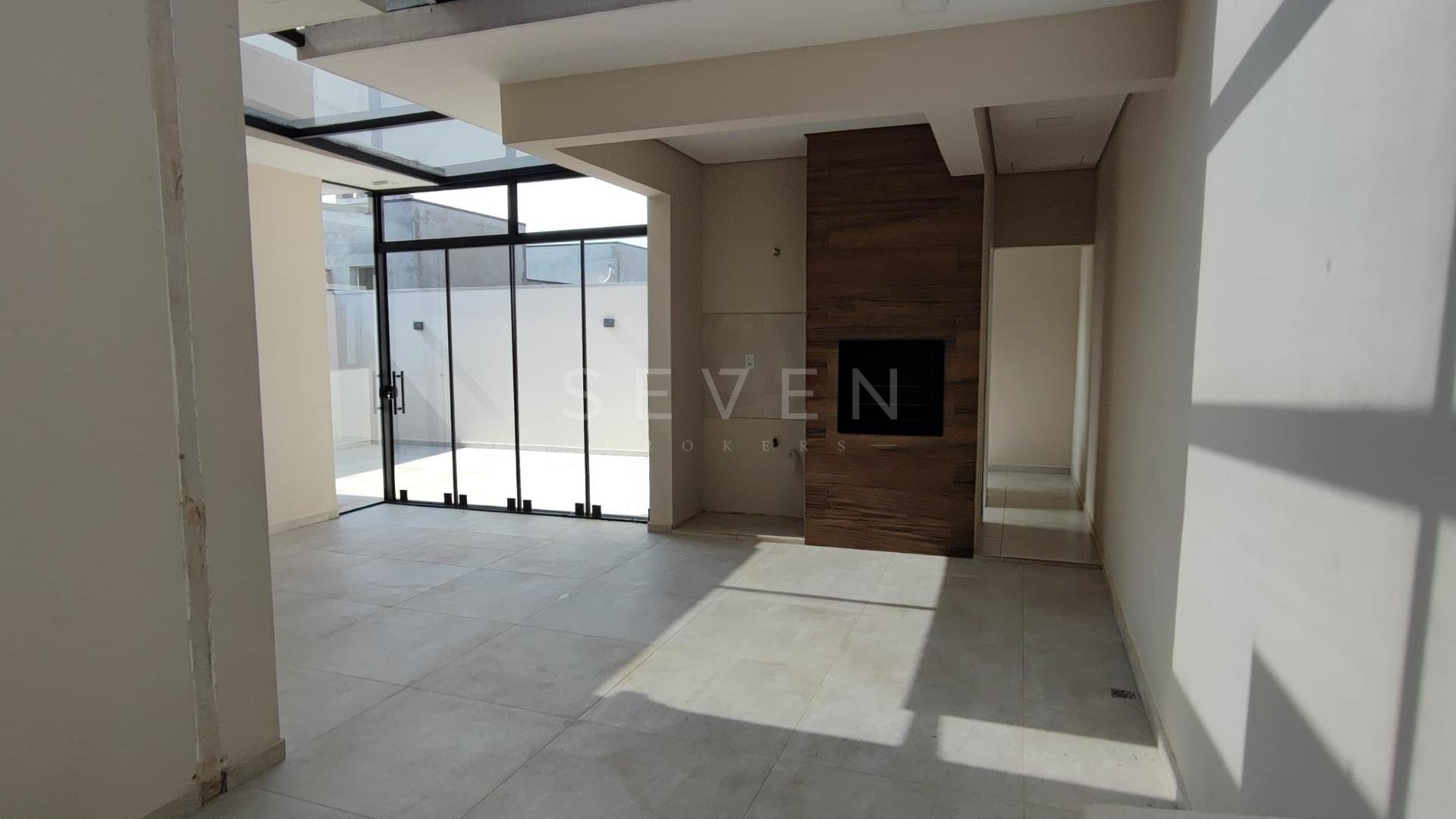 Possui 3 dormitórios (1 suíte com closet e 2 com ar-condicionado), sala de estar, cozinha americana planejada equipada, área gourmet com churrasqueira, lavabo, lavanderia, espaço privativo com possibilidade de piscina e garagem coberta para 2 carros.