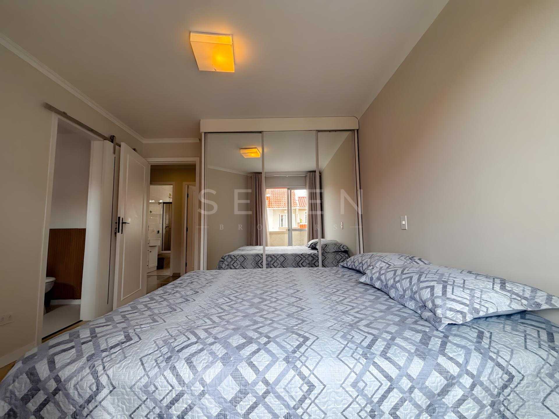 A residência conta com 3 amplos dormitórios, todos equipados com armários planejados. A suíte master impressiona com sacada privativa e mobília de qualidade, proporcionando um verdadeiro refúgio pessoal. Os demais quartos já incluem camas, garantindo praticidade imediata.