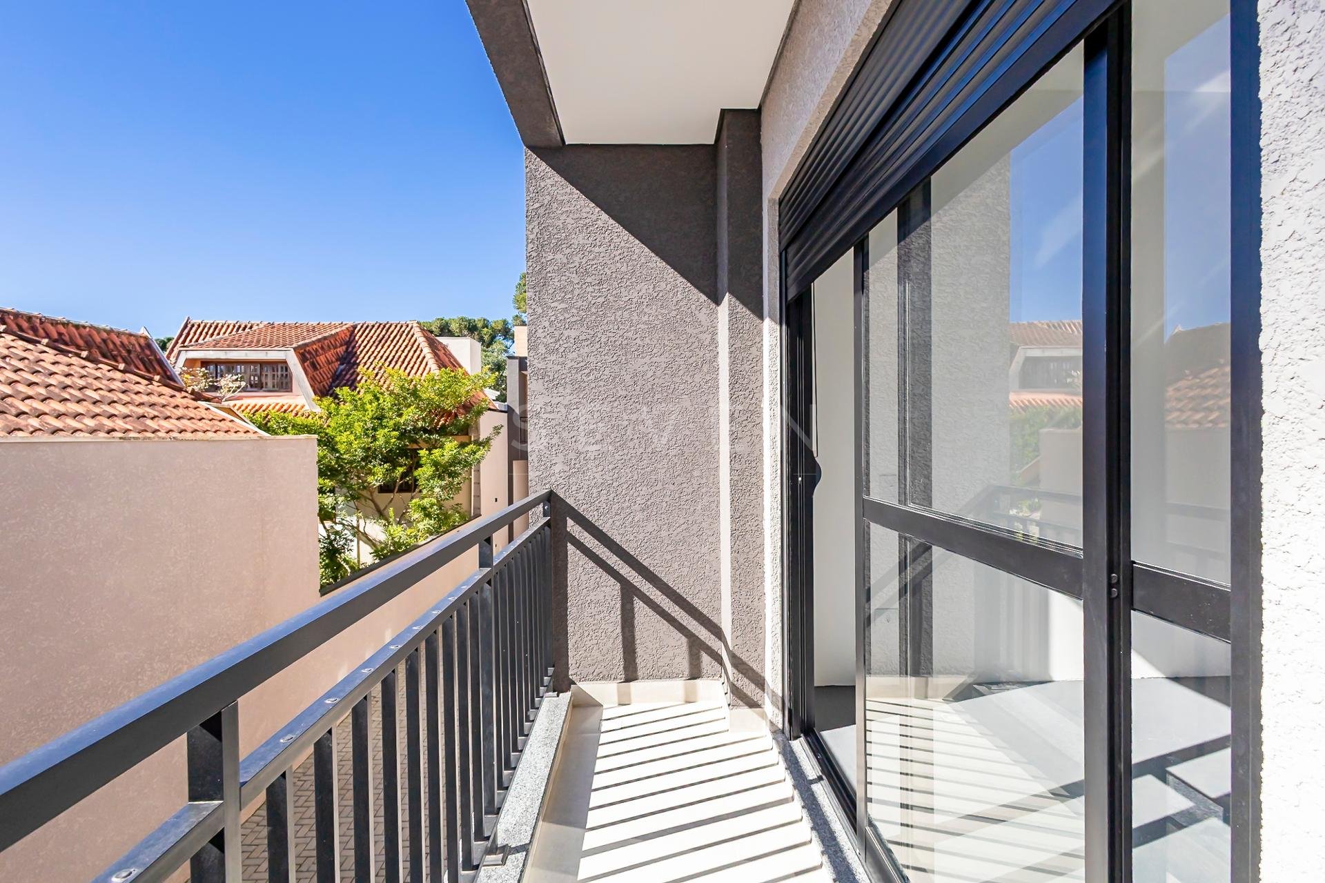 Sobrado novo à venda no Santa Cândida com projeto moderno, excelente iluminação natural e acabamentos de alto padrão. São 148,34m² construídos muito bem distribuídos, com 3 suítes amplas (todas com sacada, persiana integrada, pé-direito alto e infraestrutura para ar-condicionado), sendo duas delas com closet.