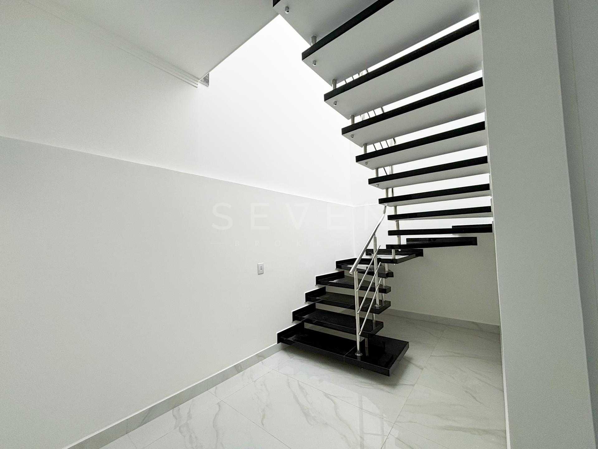 O imóvel dispõe de 2 quartos + amplo ático (ideal para suíte ou espaço de lazer), lindo gramado lateral que valoriza a entrada da cozinha, salão de acabamento de alto padrão. Banheiro impecável em porcelanato e escada imponente completam o conjunto.