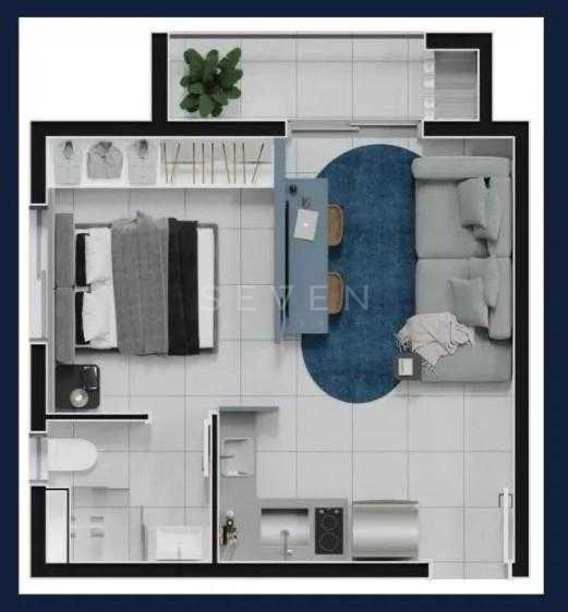 Stúdio 29,38 m com sacada, churrasqueira e vista panorâmica no Água Verde
